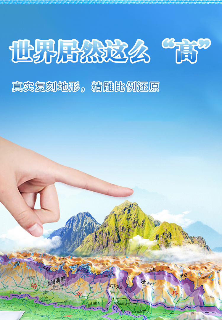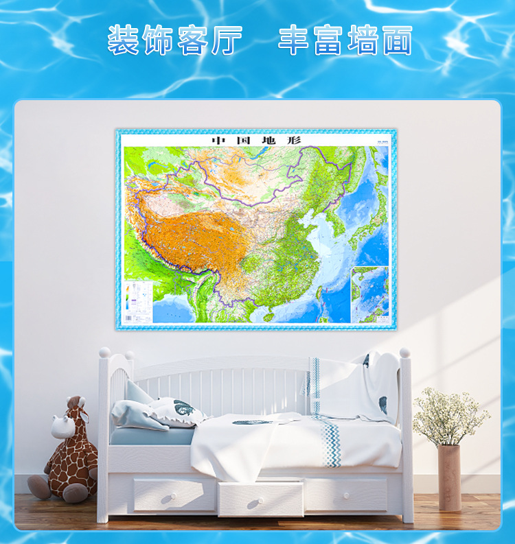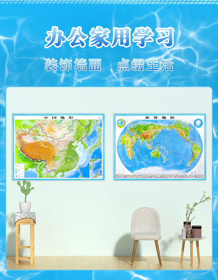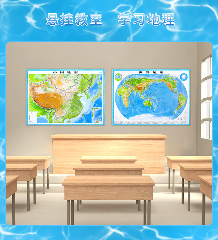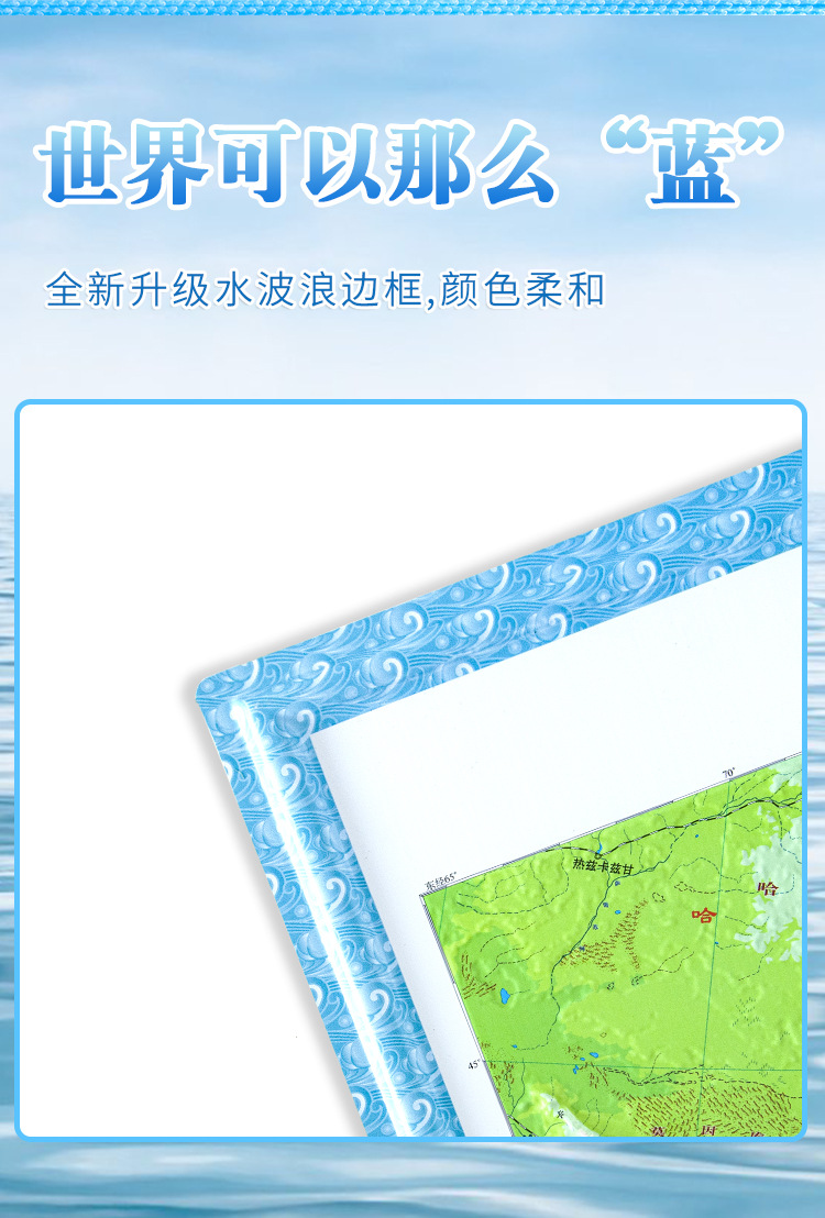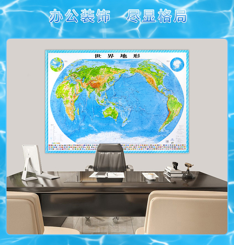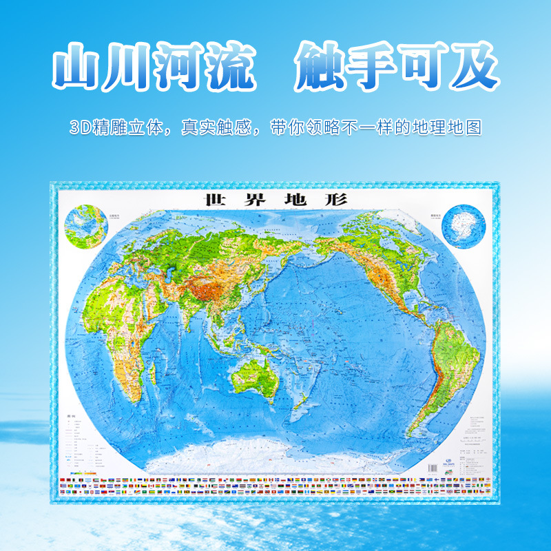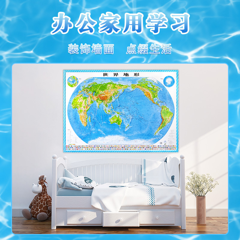 (特)世界地图3D立体地图1.26*0.9米 地形图升级波浪边框 教学地理地图