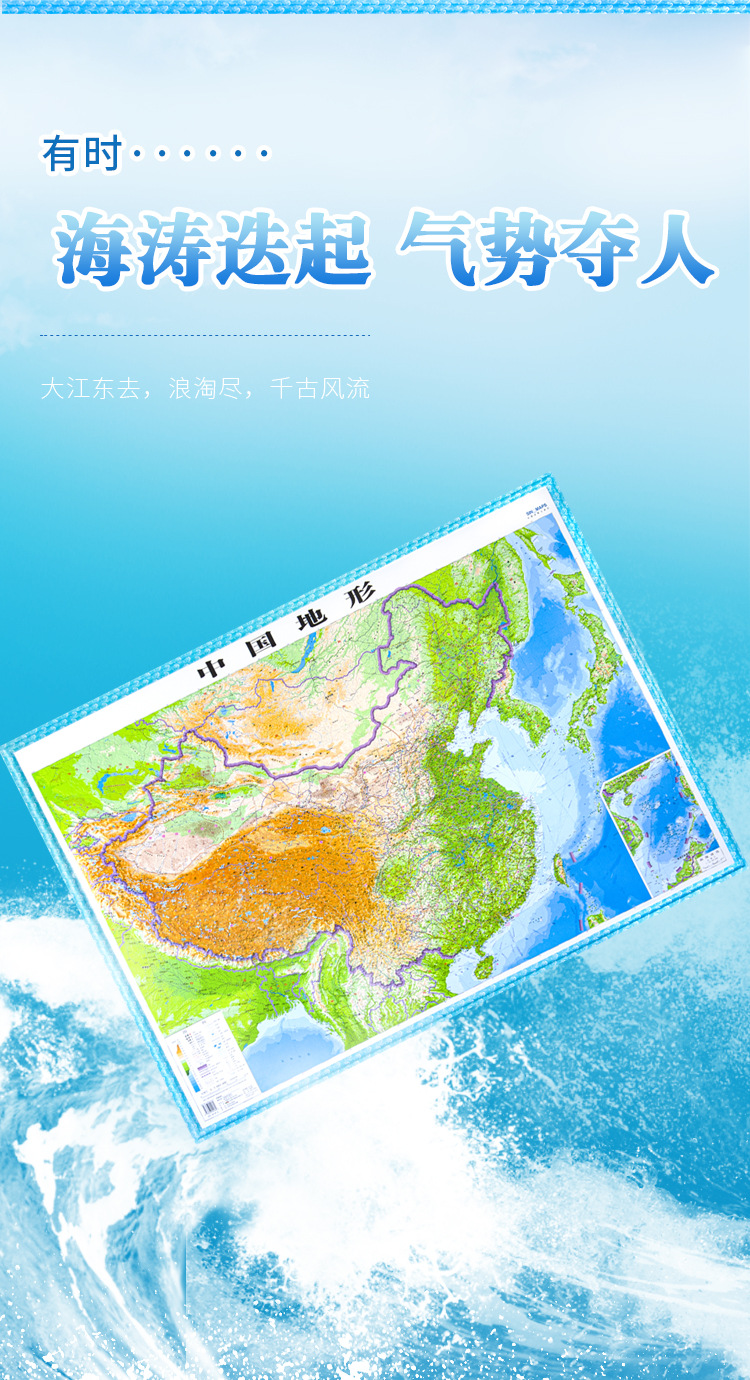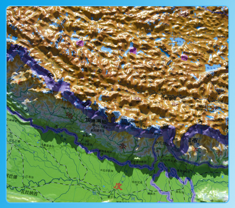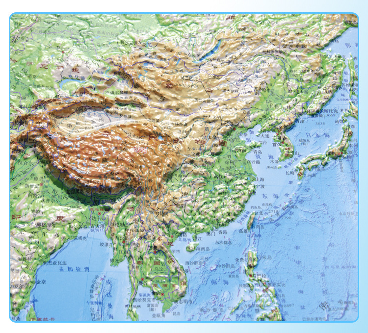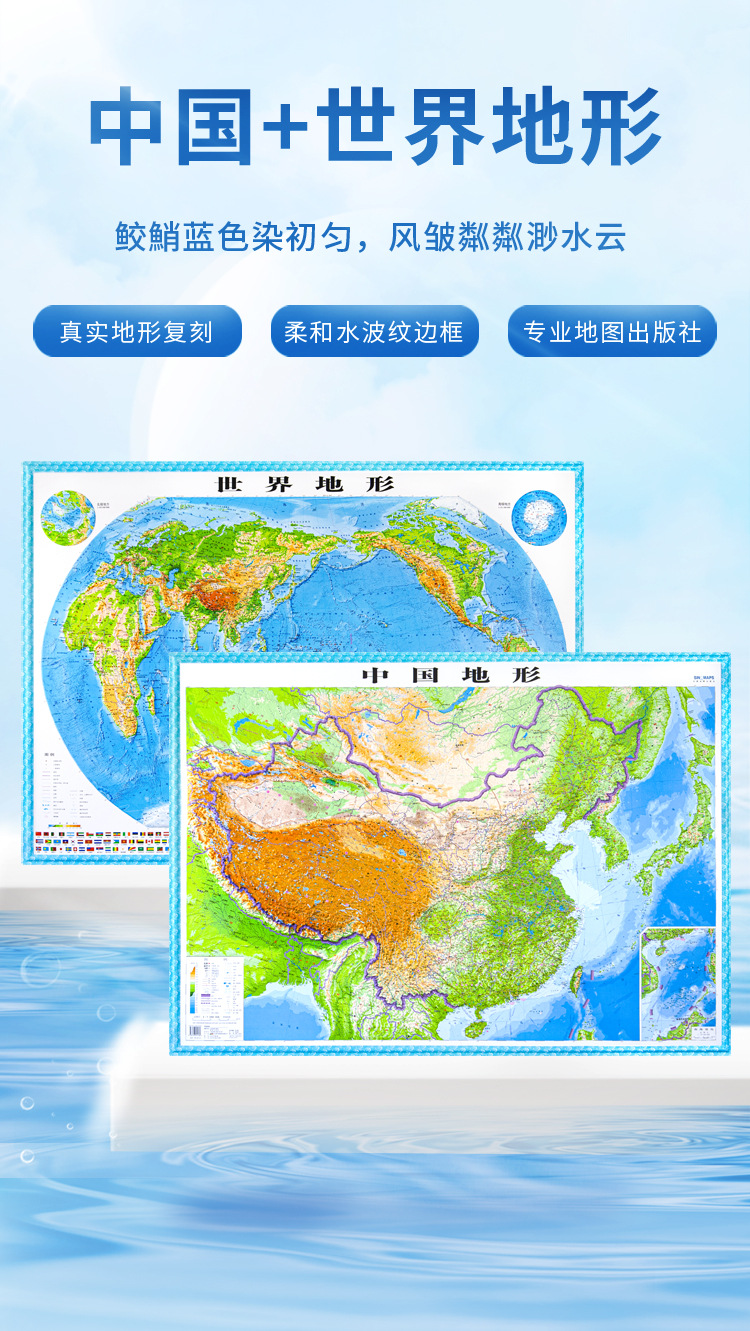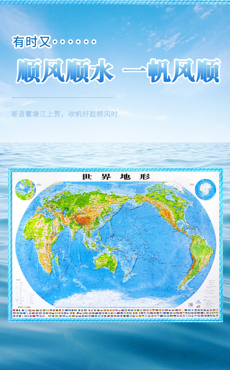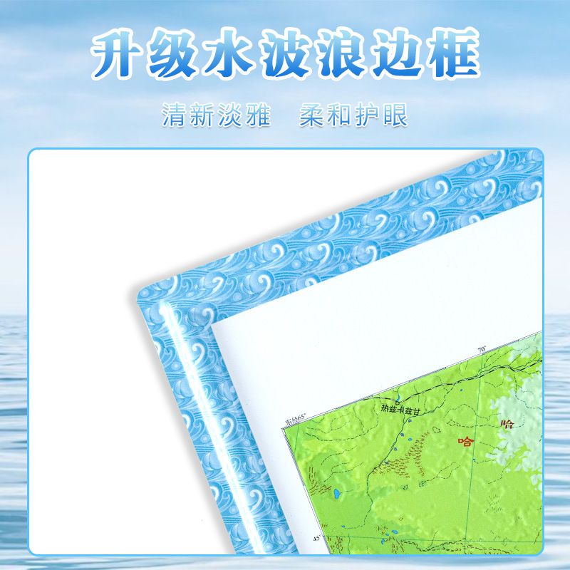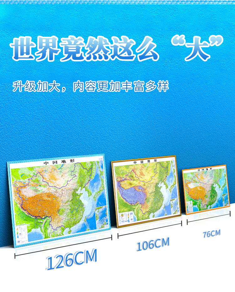 (特)世界地图3D立体地图1.26*0.9米 地形图升级波浪边框 教学地理地图