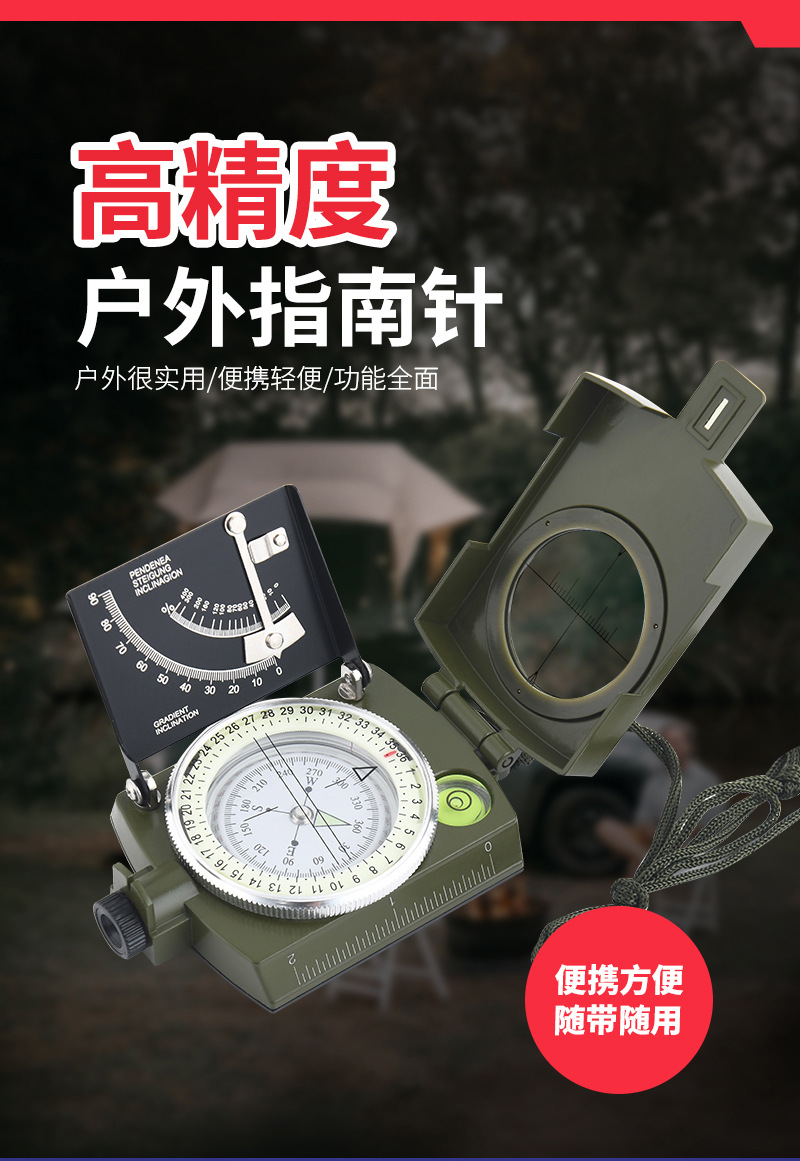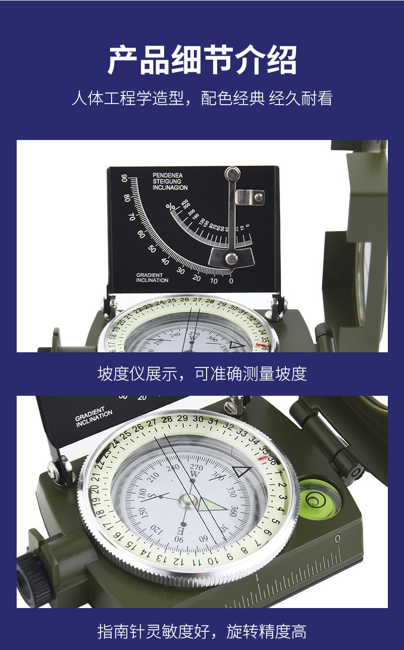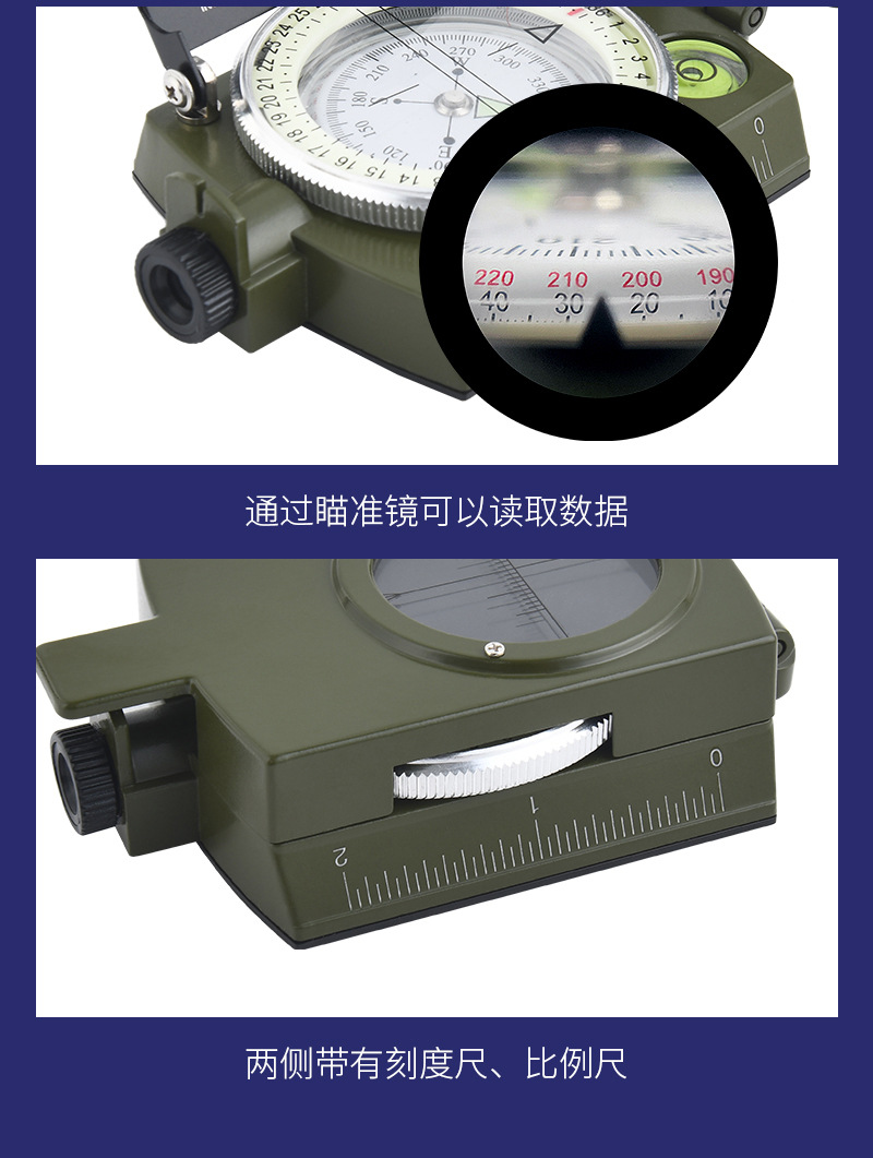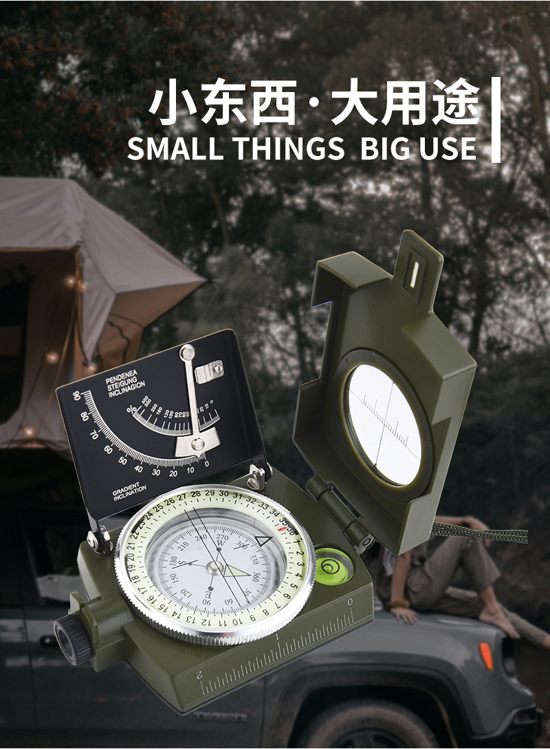 多功能美式户外指北针刻度尺水平仪垂直度盘坡度计夜光指南针 3个装