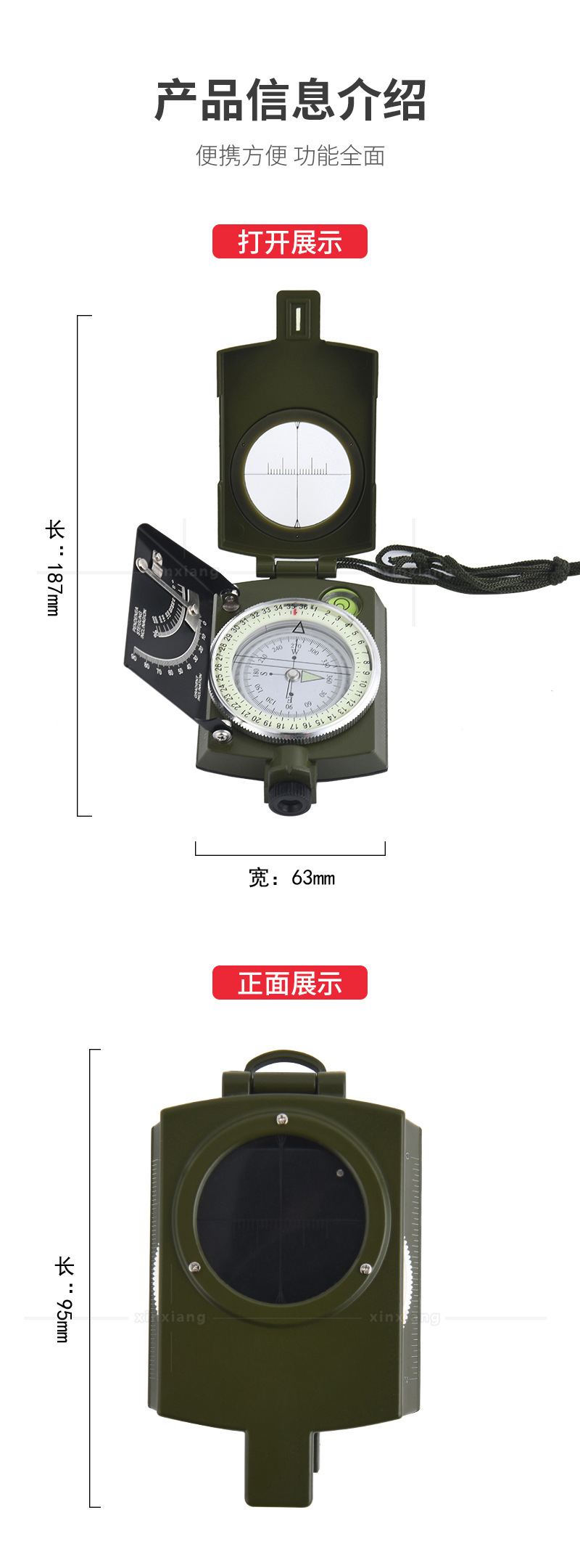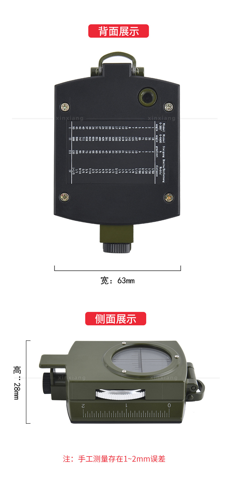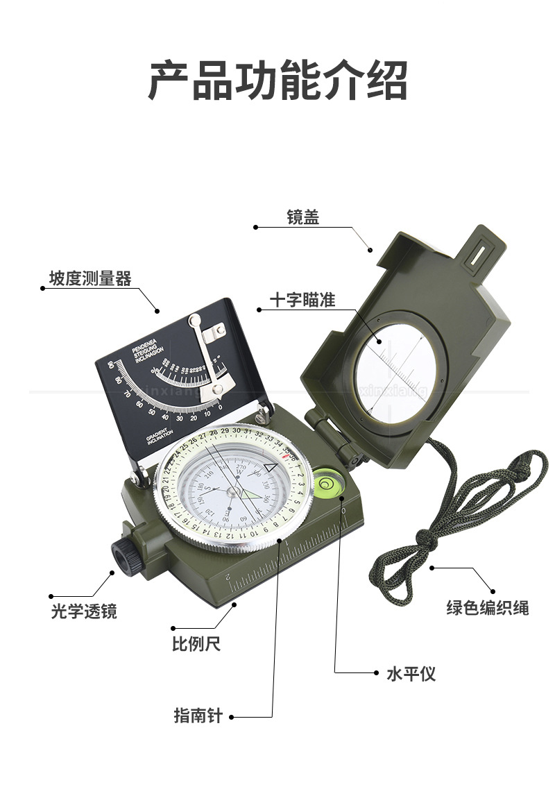 多功能美式户外指北针刻度尺水平仪垂直度盘坡度计夜光指南针 3个装