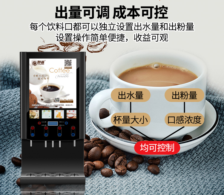 (特)妙雀全自动饮料机商用速溶咖啡奶茶一体机冷热自助果汁豆浆热饮机