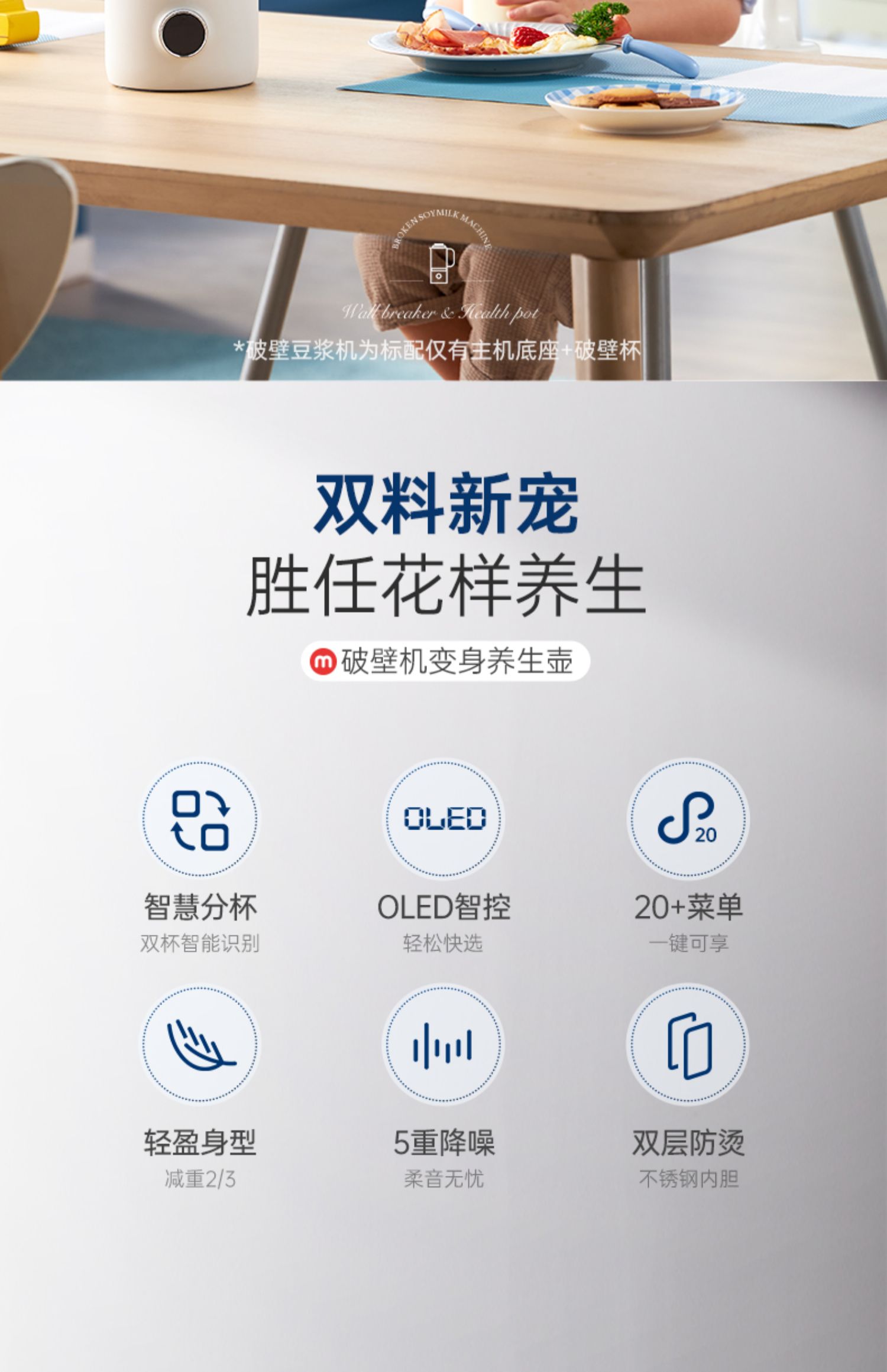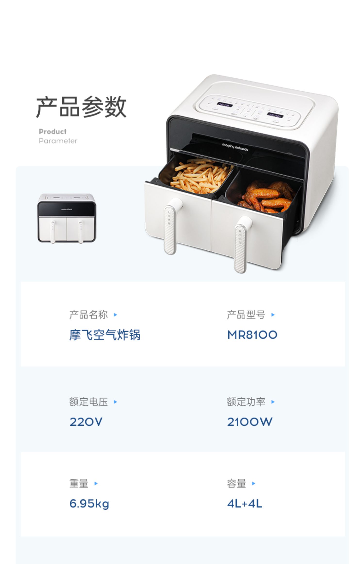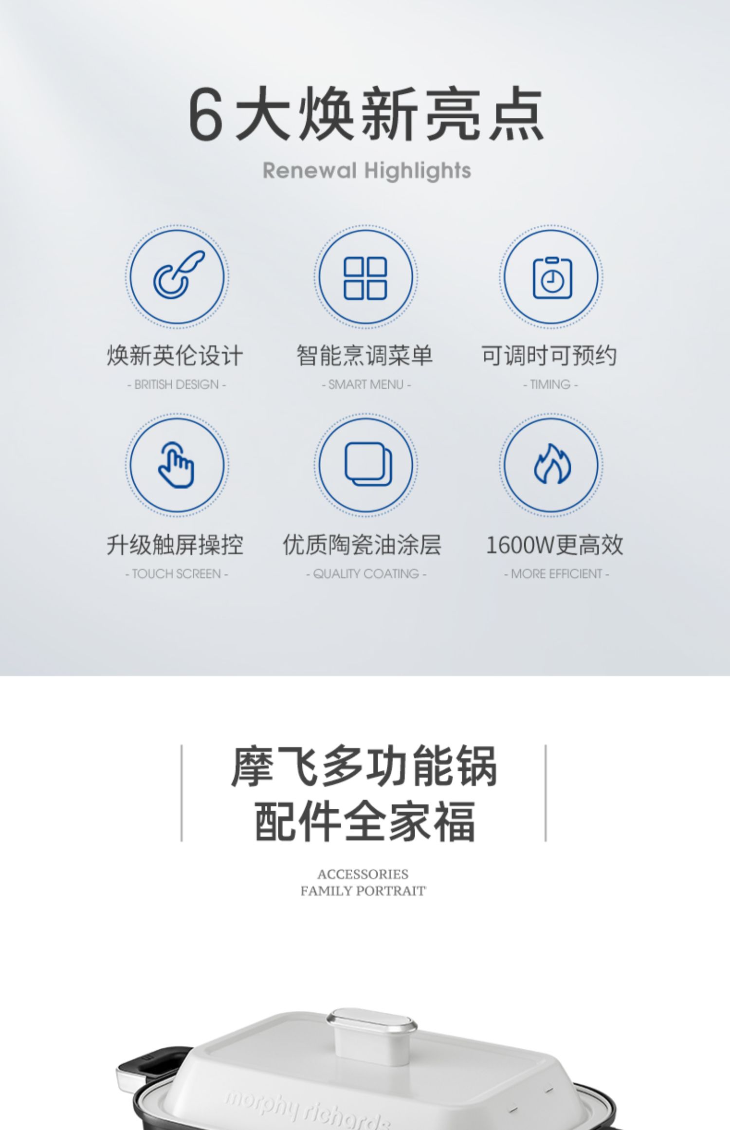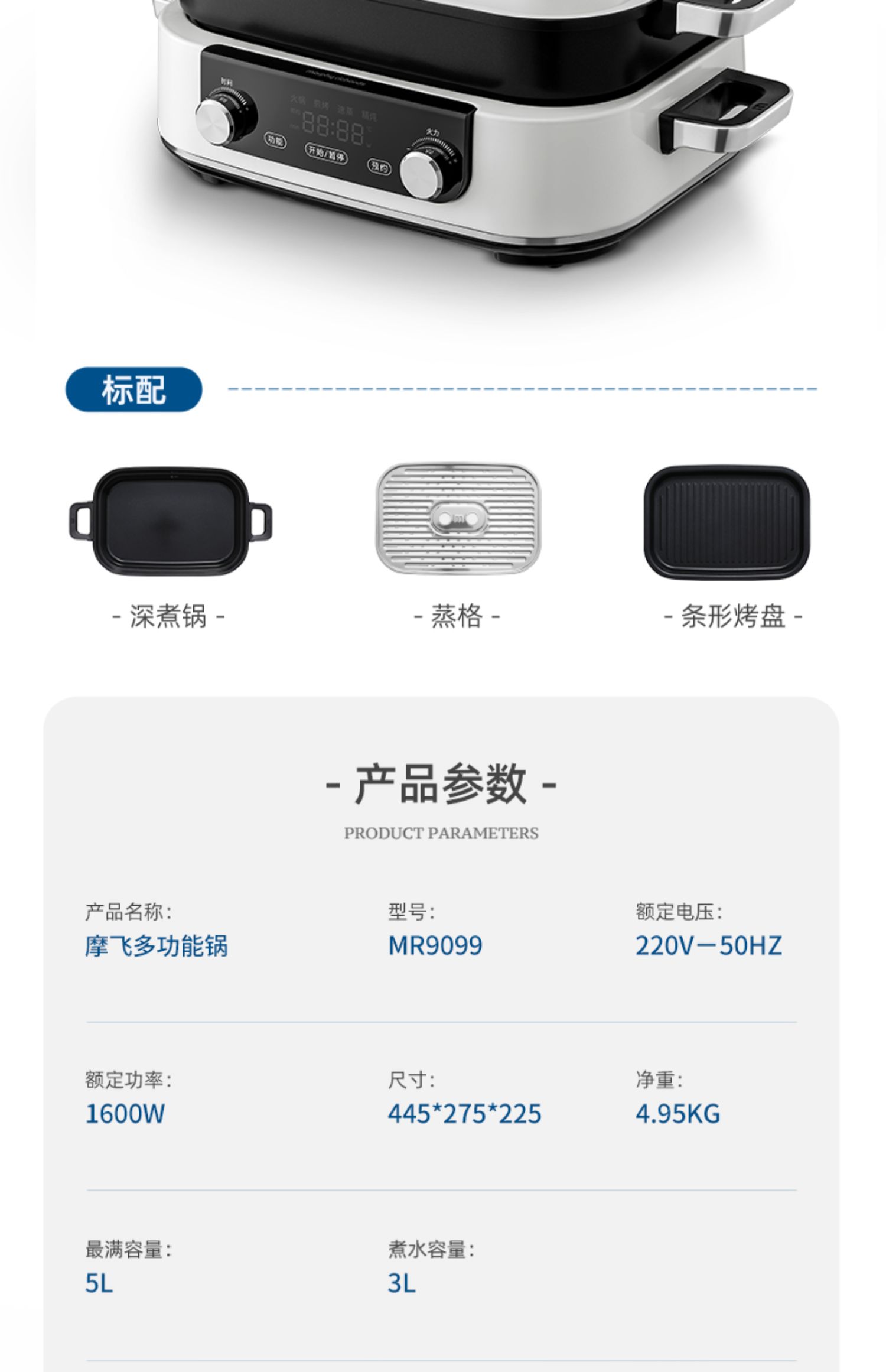 摩飞多功能锅9099标配白+空气炸锅8100白+破壁豆浆机8200搅拌杯白