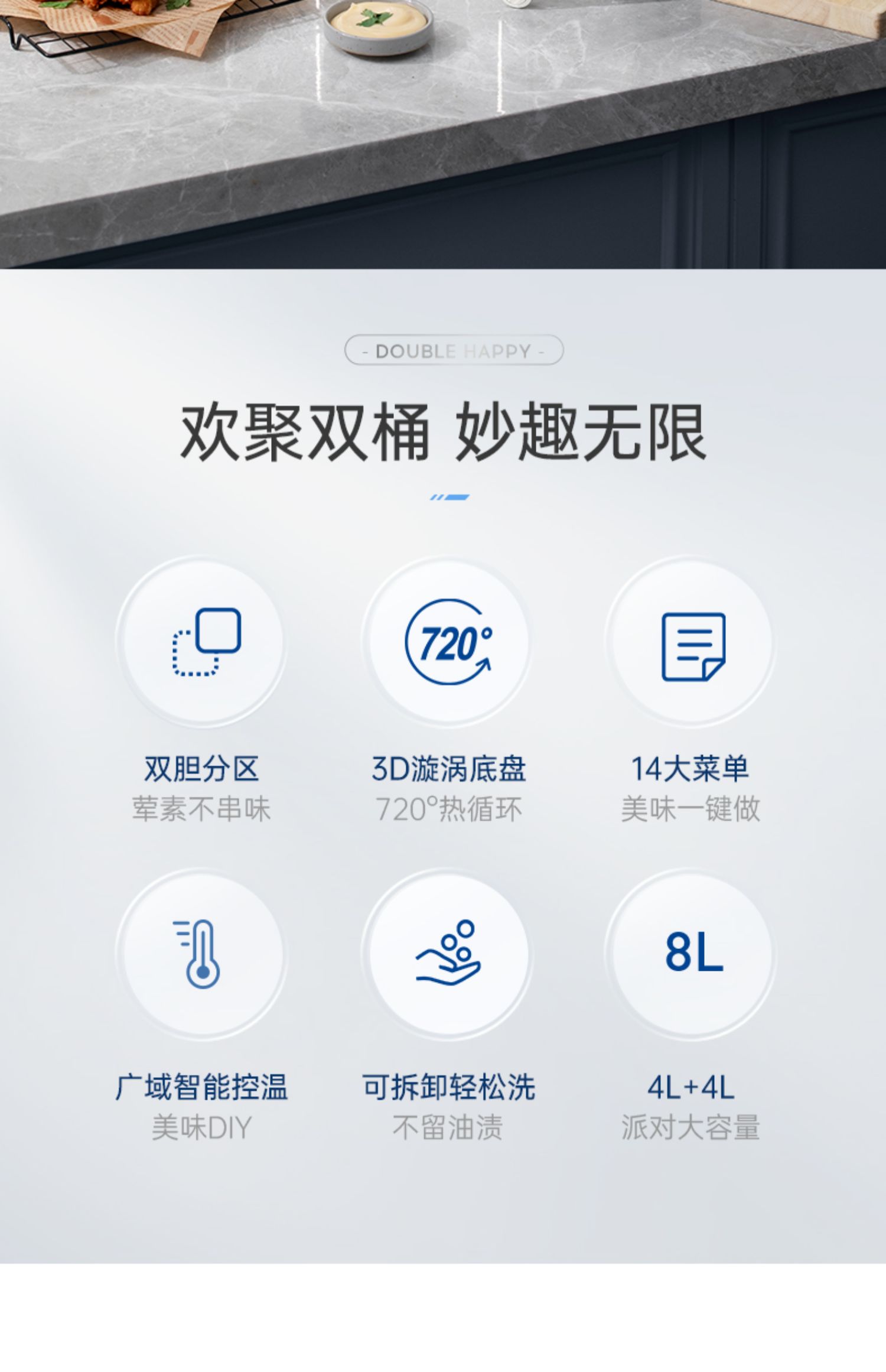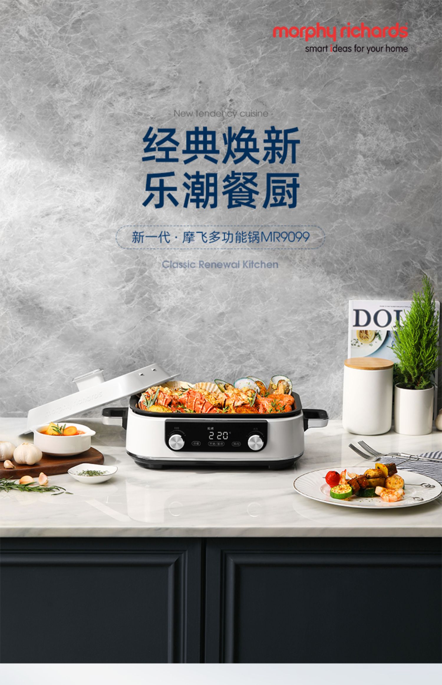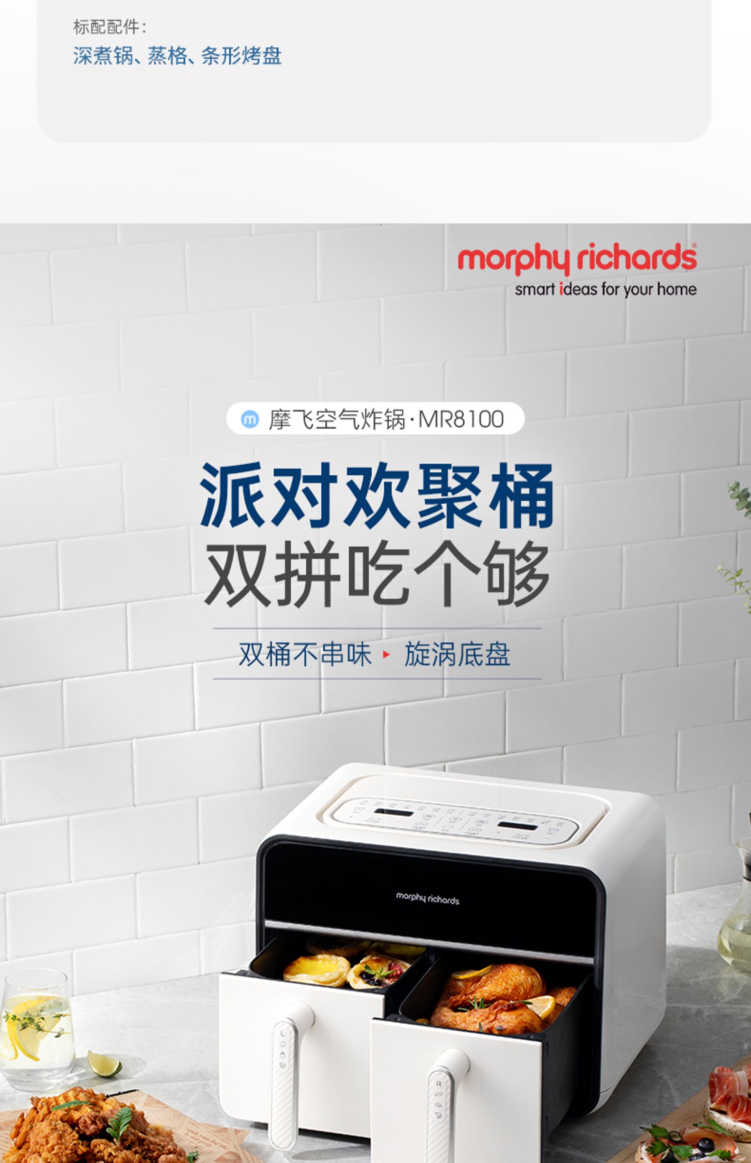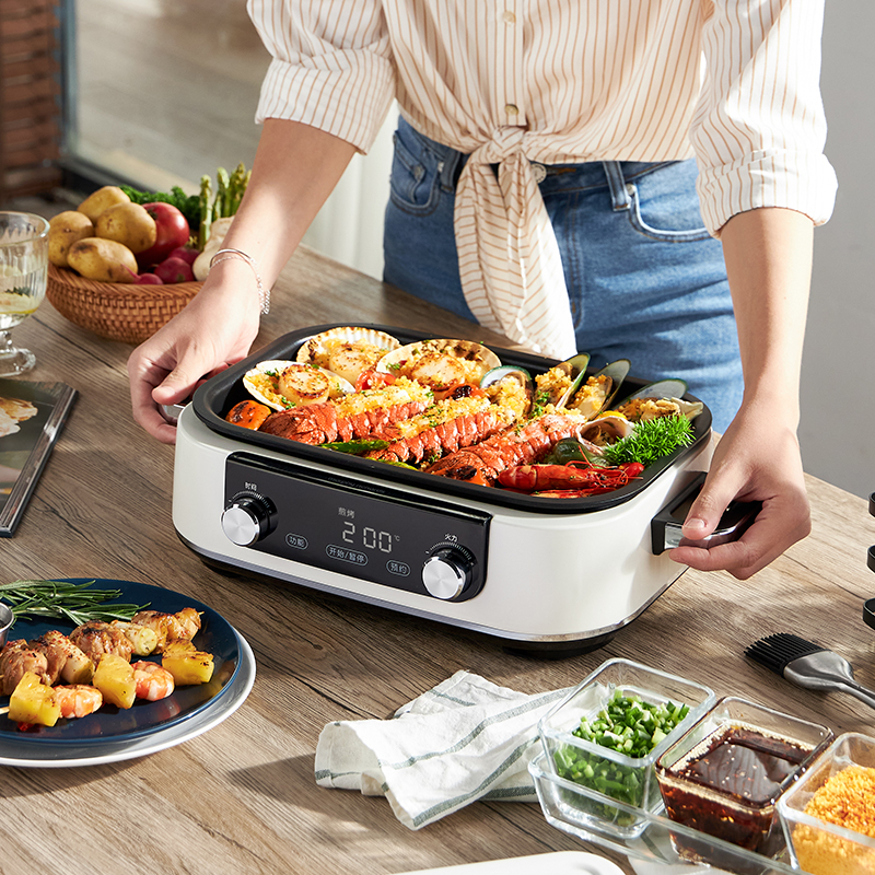 摩飞多功能锅9099标配白+空气炸锅8100白+破壁豆浆机8200搅拌杯白