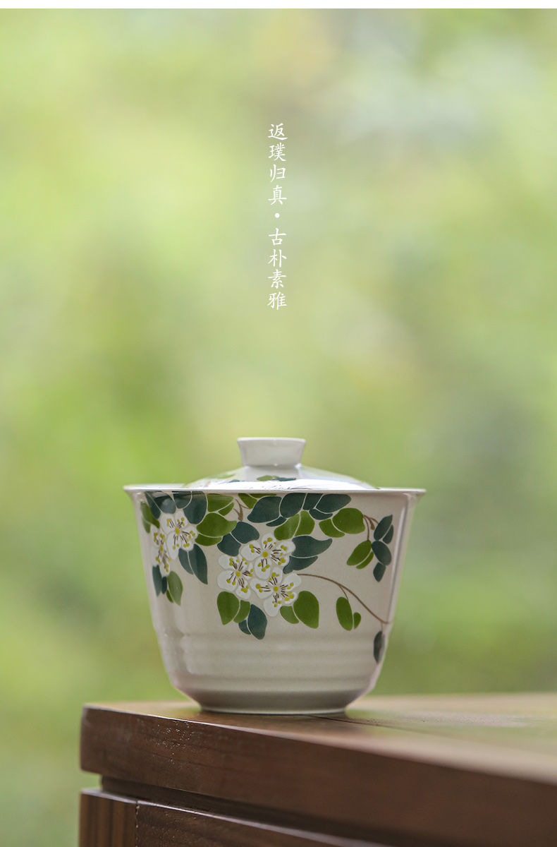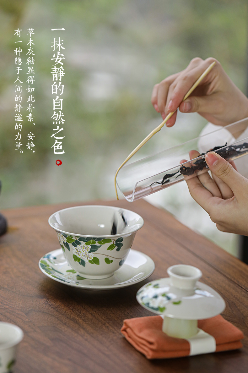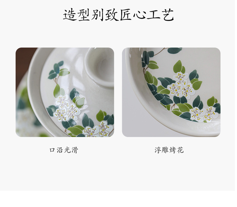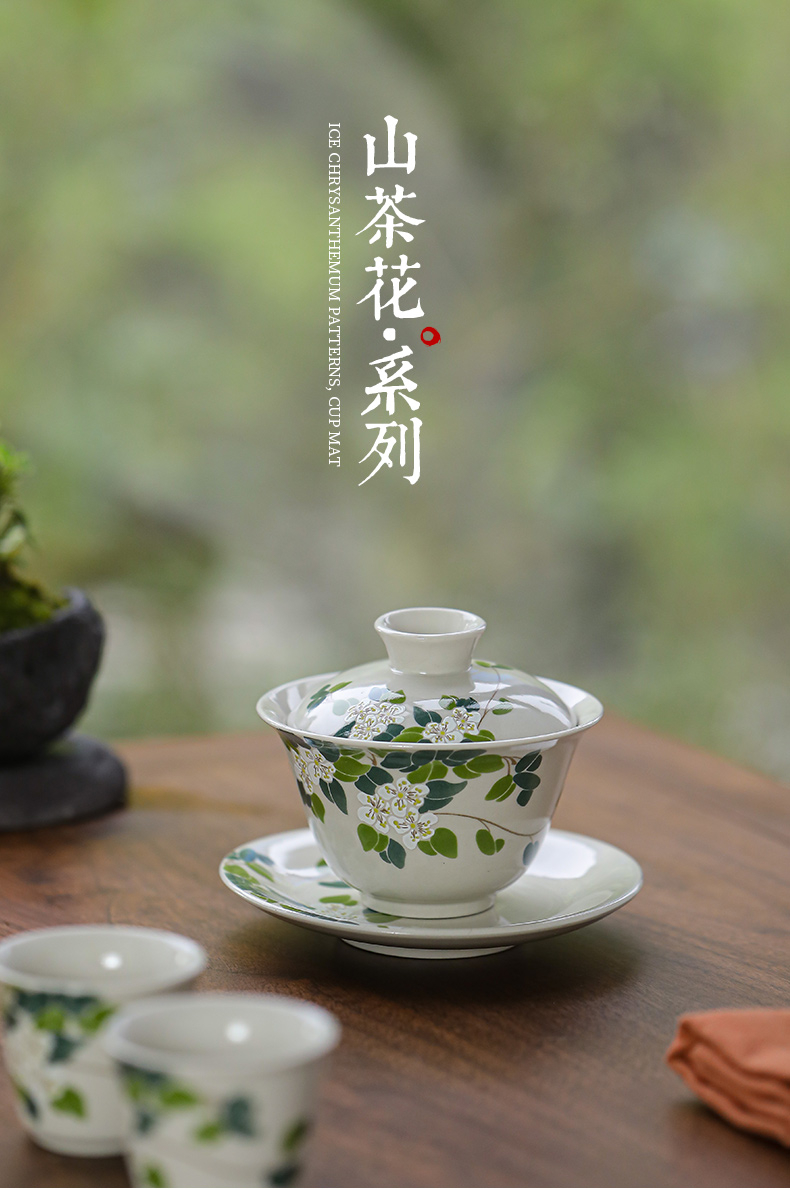 (特)造物山茶花草木灰三才盖碗陶瓷茶杯家用简约功夫茶具单人泡茶碗