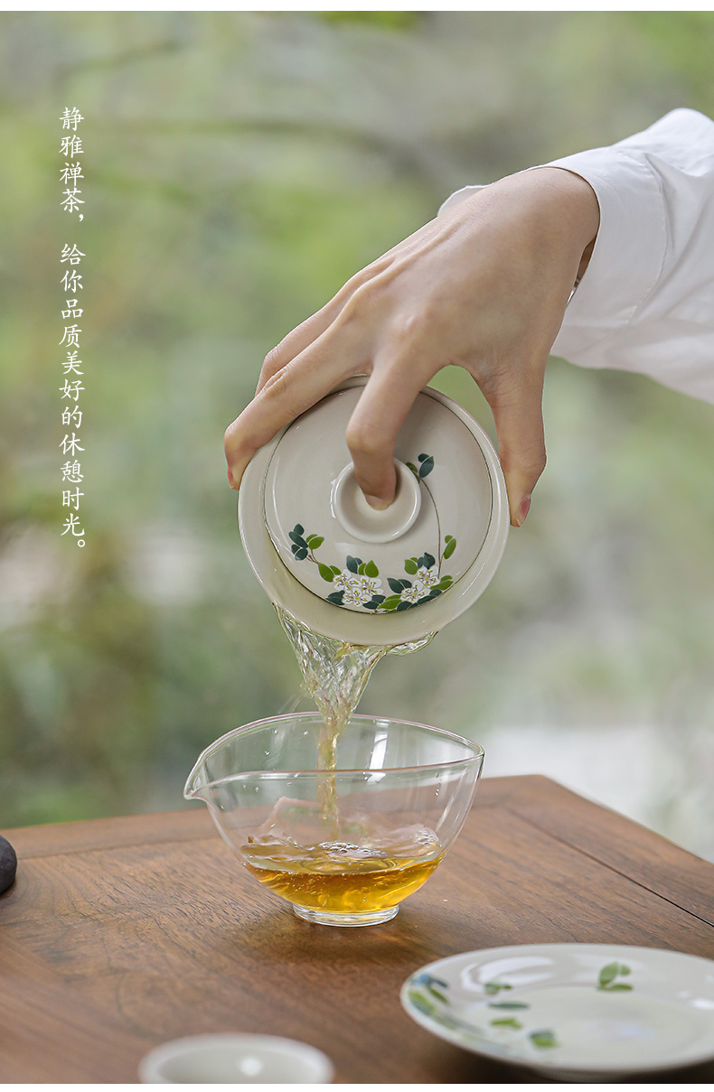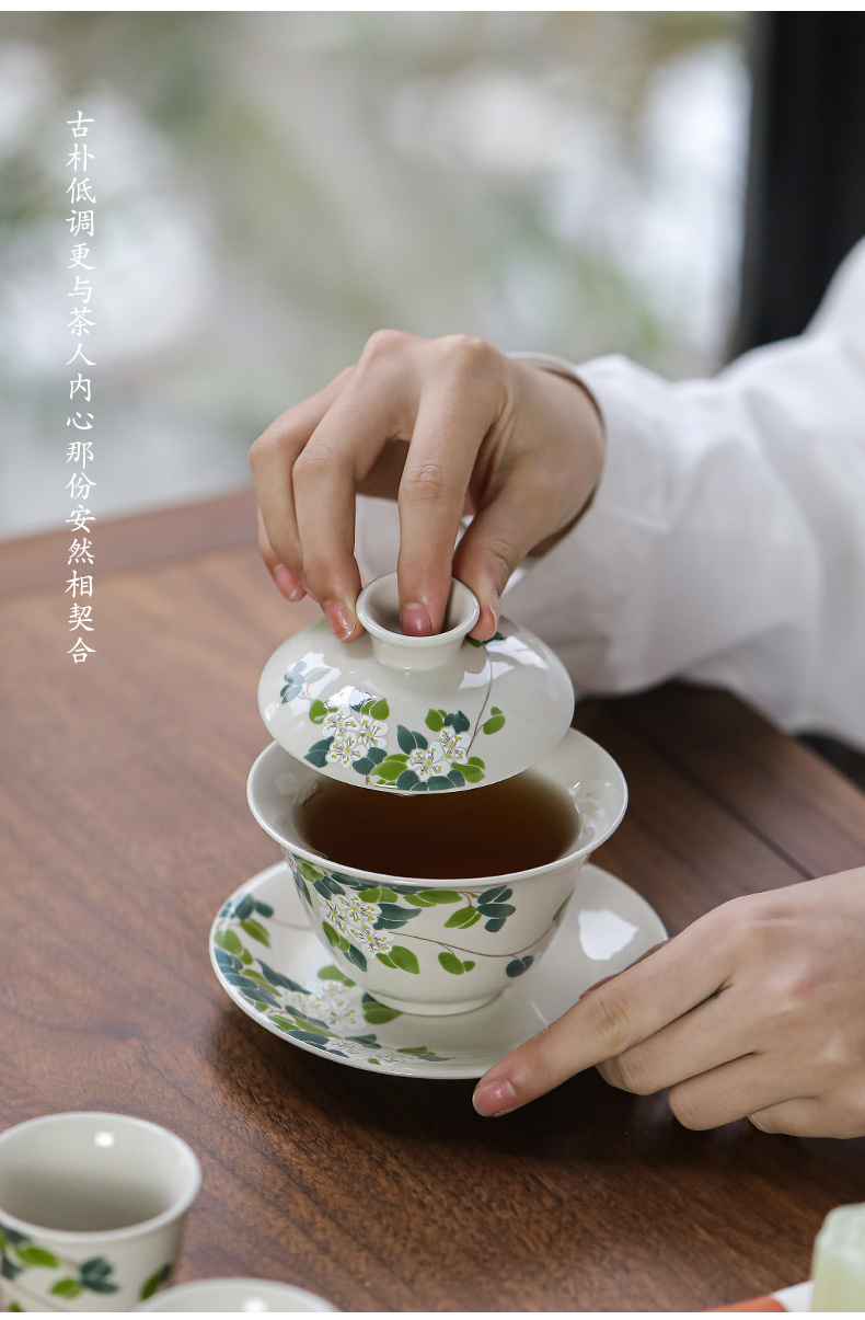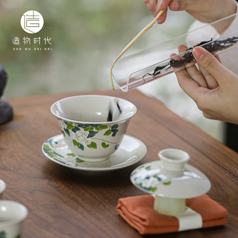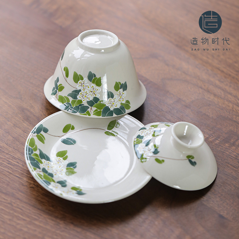 (特)造物山茶花草木灰三才盖碗陶瓷茶杯家用简约功夫茶具单人泡茶碗