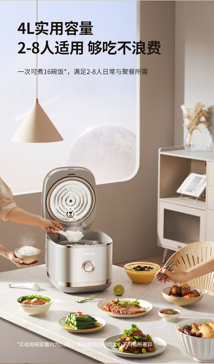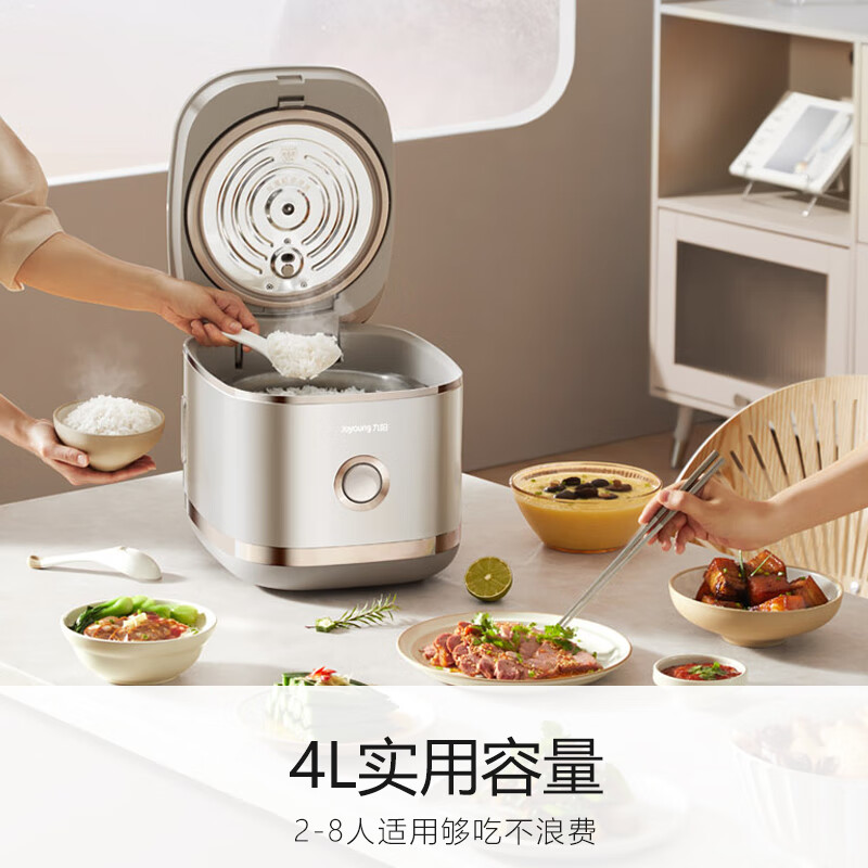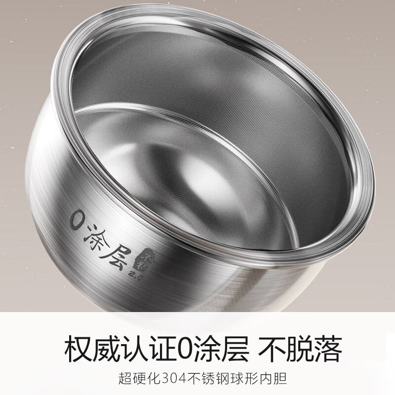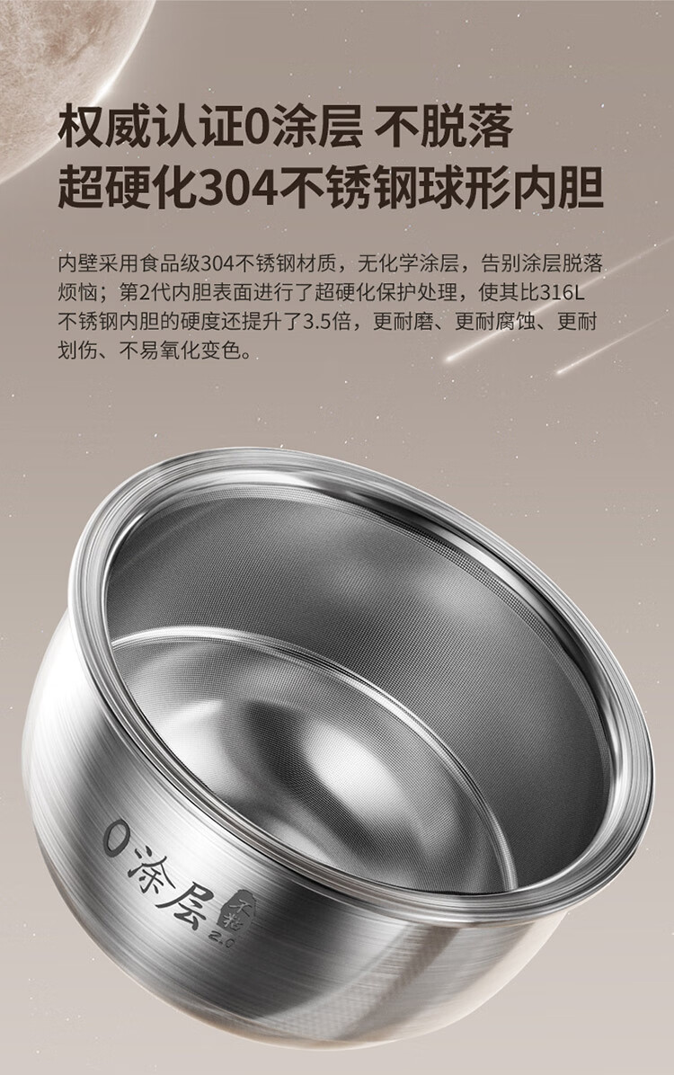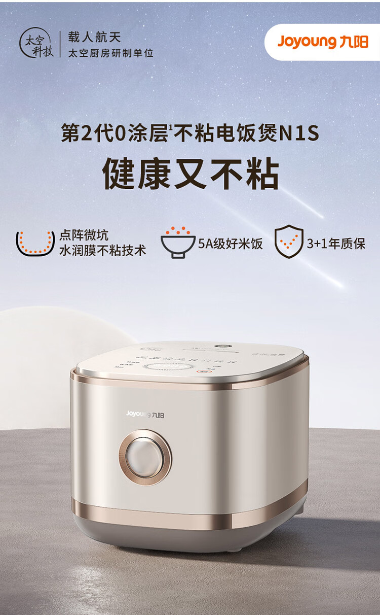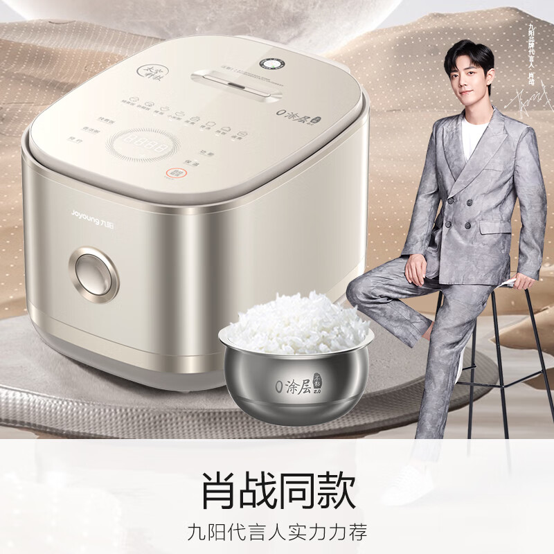 (特) 九阳(Joyoung)【2代0涂层】肖战同款4升3-8人无涂层不粘电饭煲电饭锅1200W电磁IH加热4L不锈钢内胆40N1S太空系列