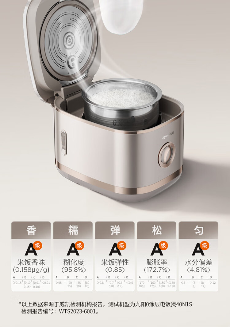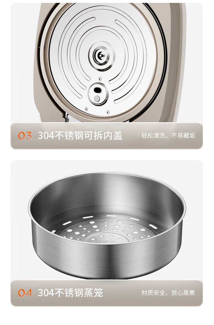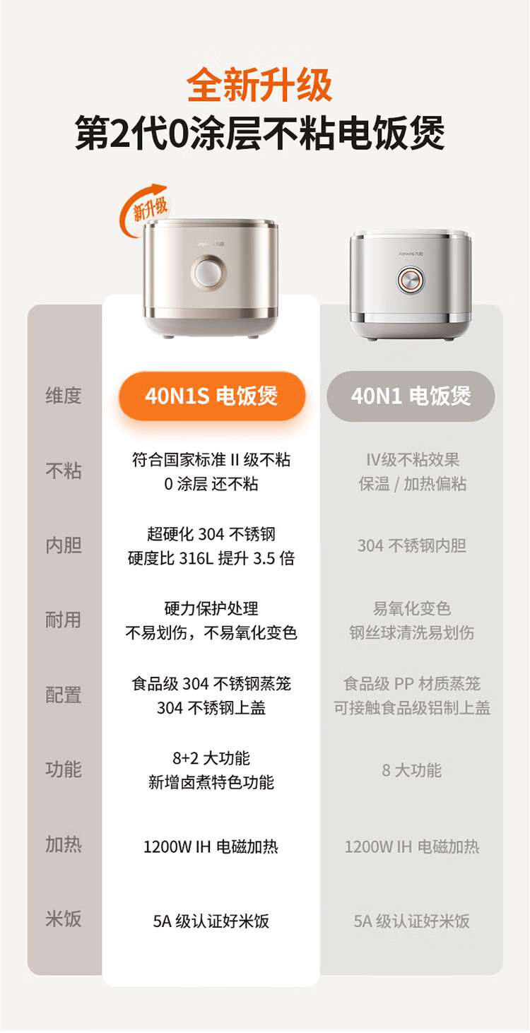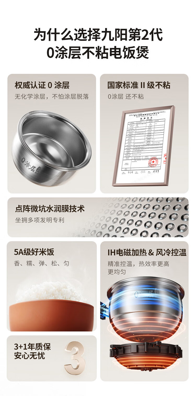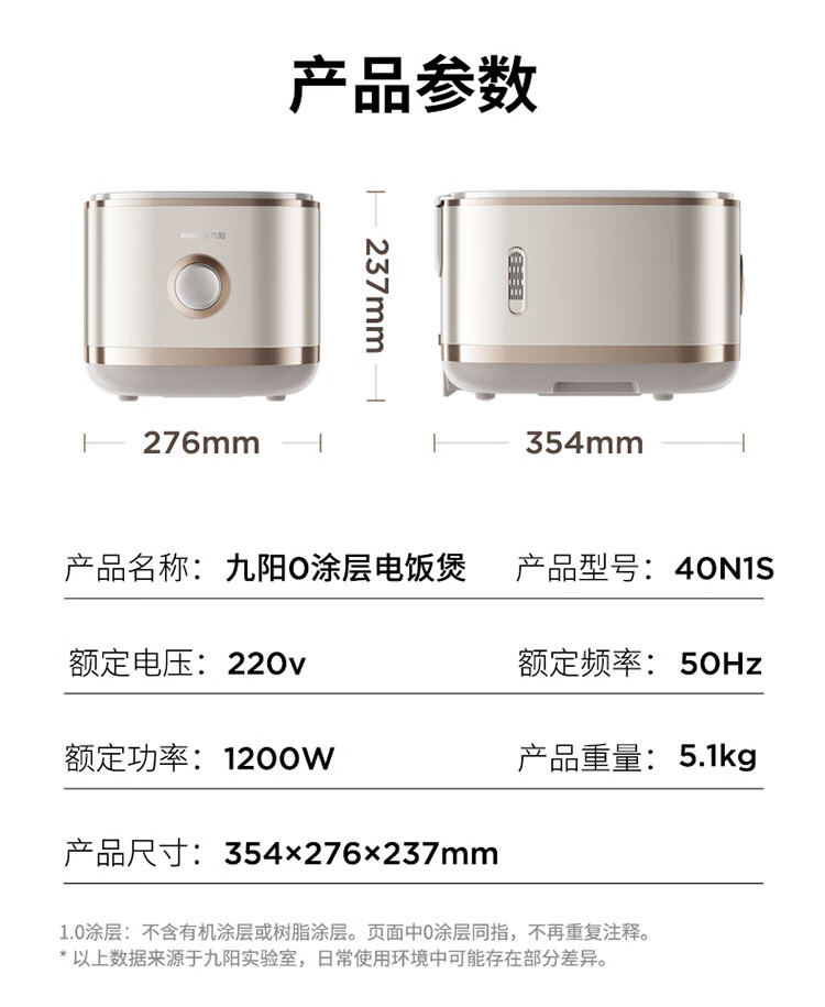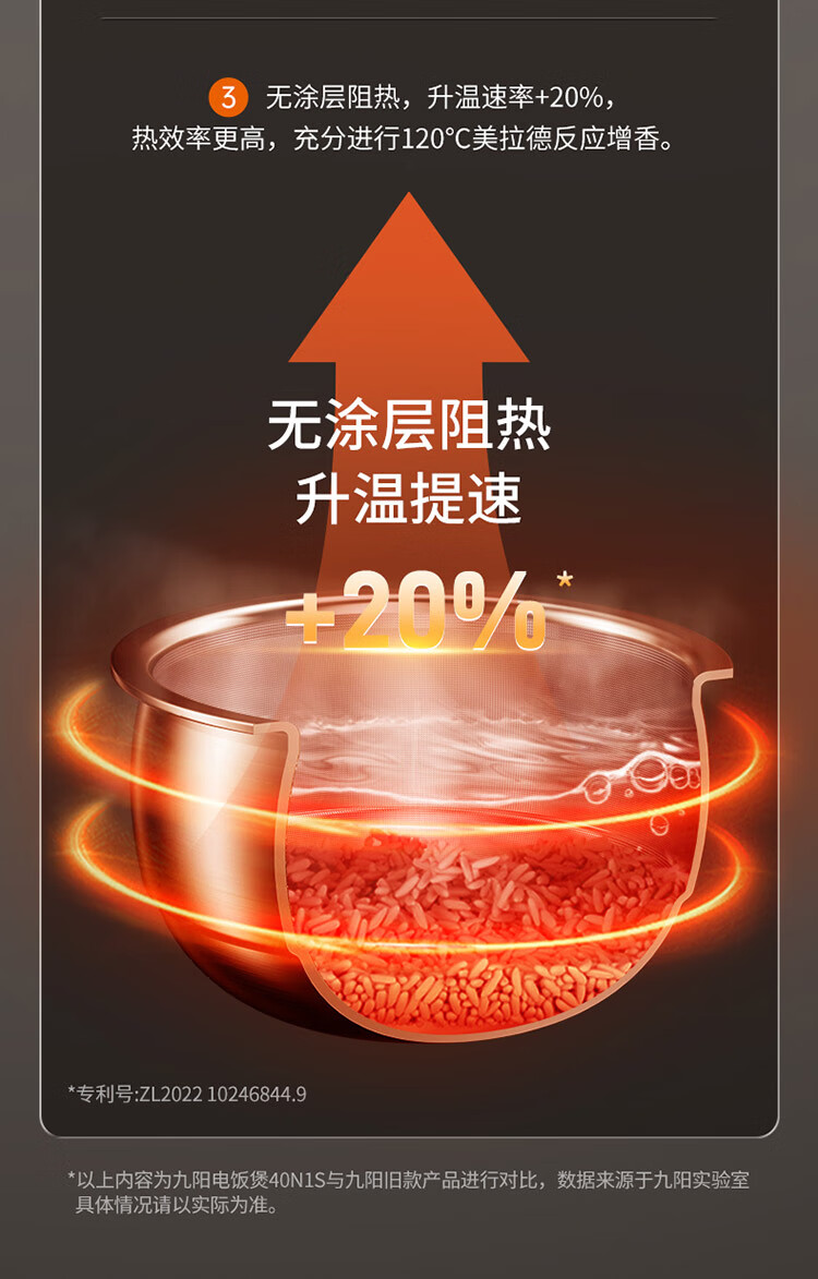 (特) 九阳(Joyoung)【2代0涂层】肖战同款4升3-8人无涂层不粘电饭煲电饭锅1200W电磁IH加热4L不锈钢内胆40N1S太空系列