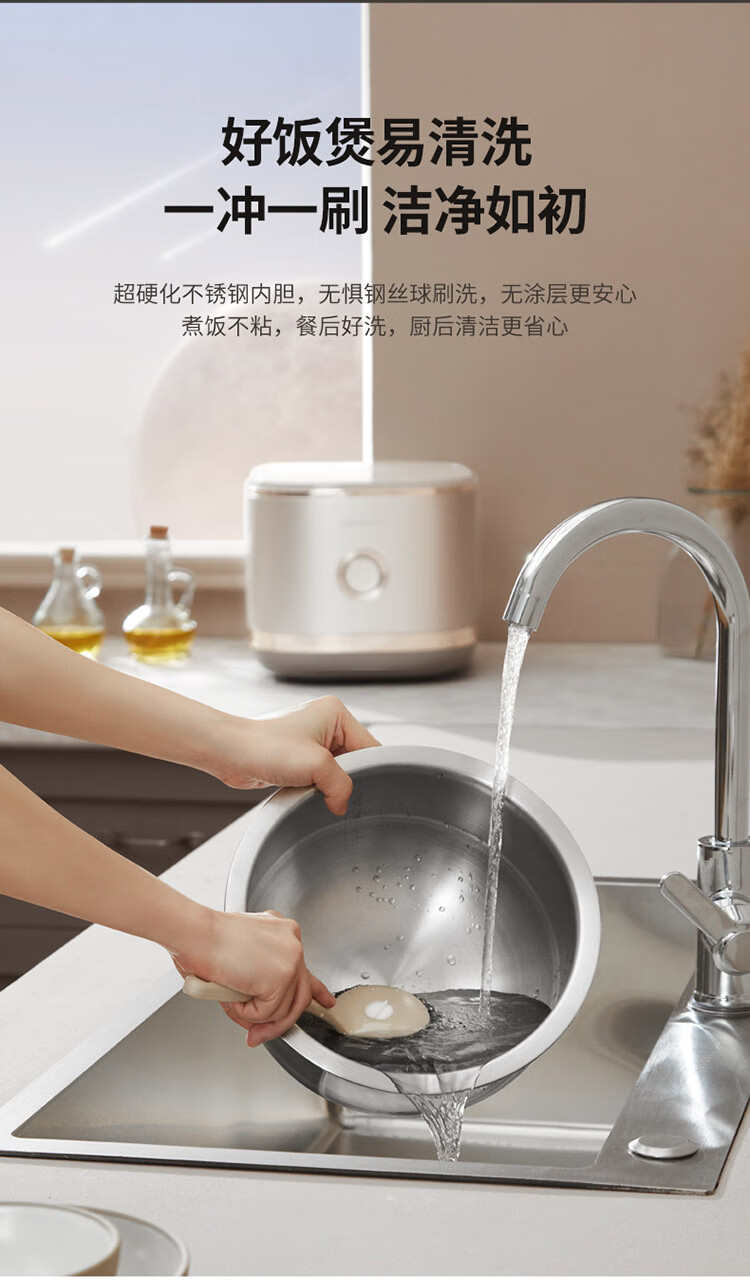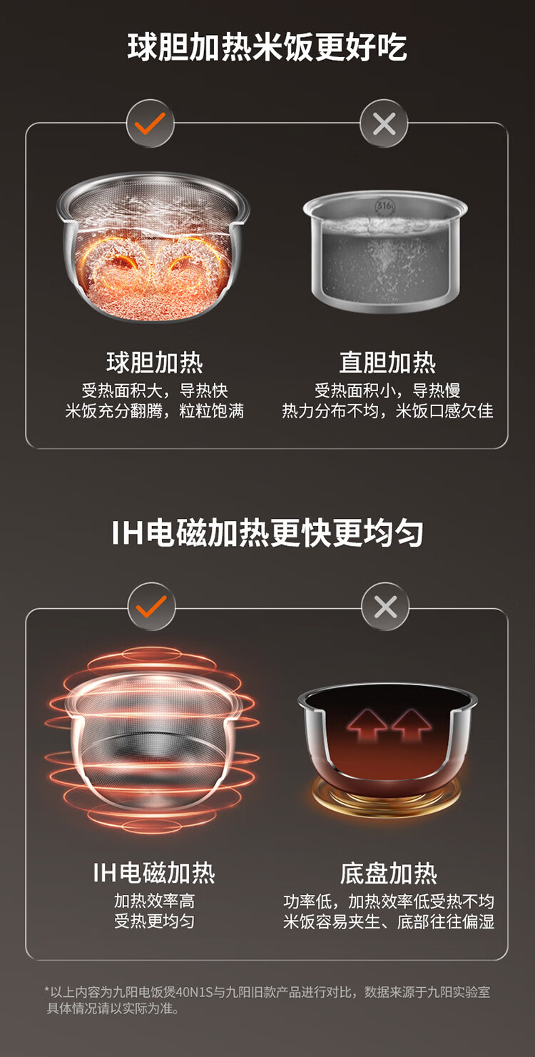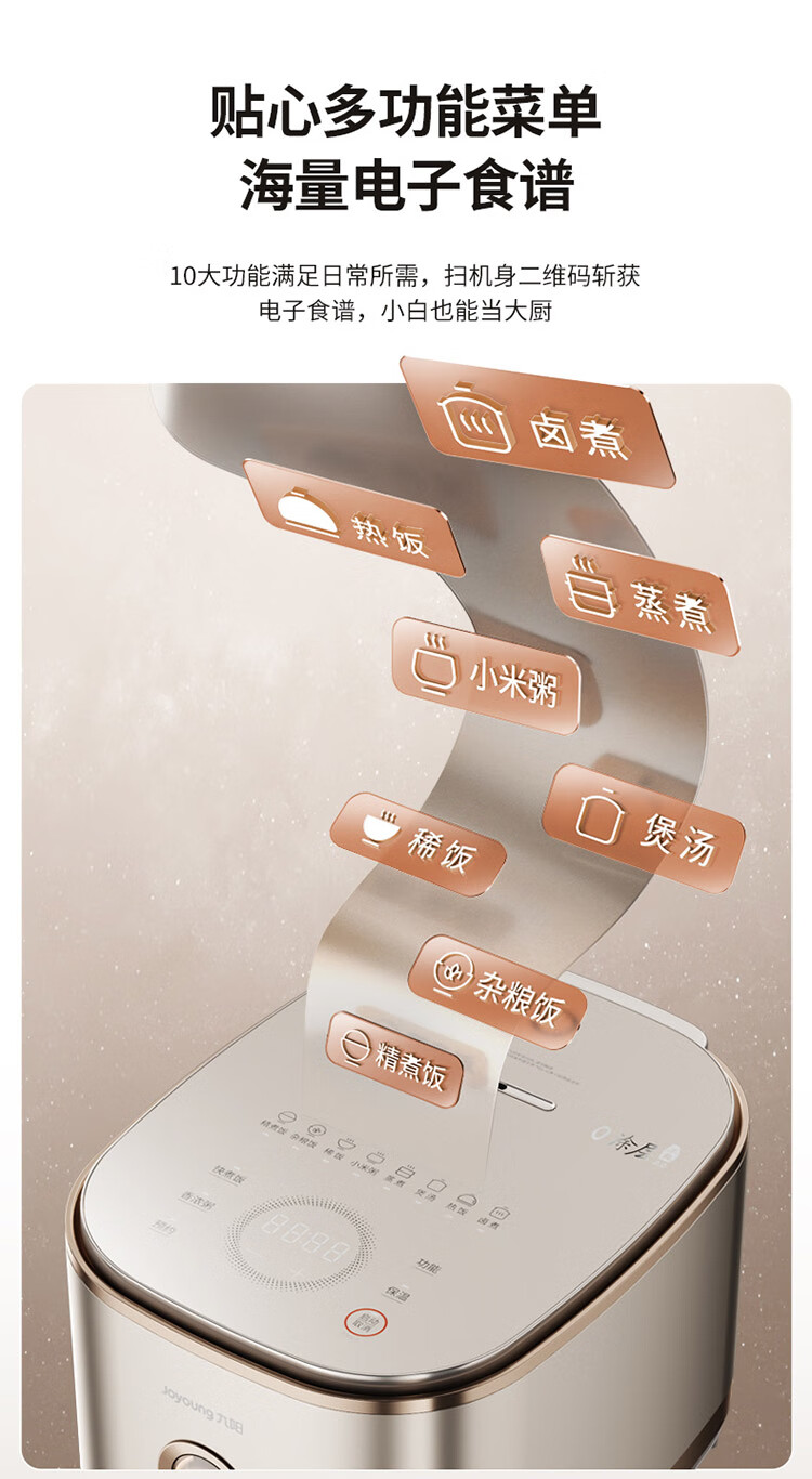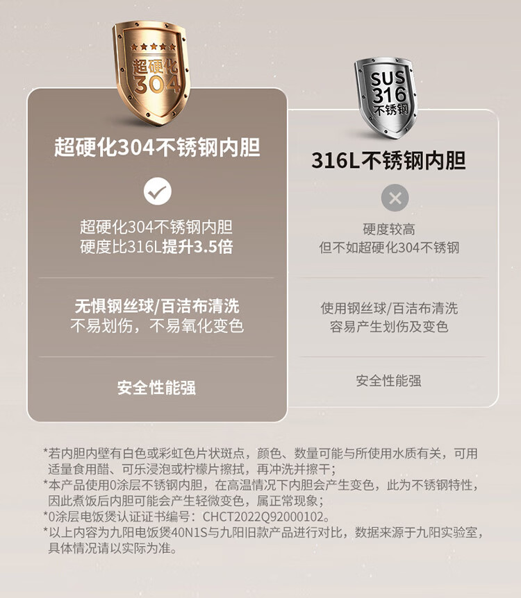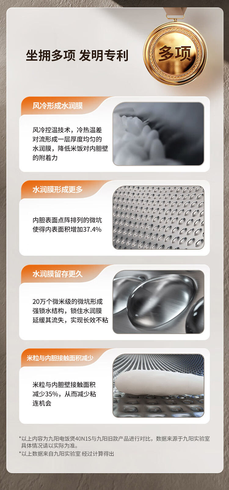 (特) 九阳(Joyoung)【2代0涂层】肖战同款4升3-8人无涂层不粘电饭煲电饭锅1200W电磁IH加热4L不锈钢内胆40N1S太空系列