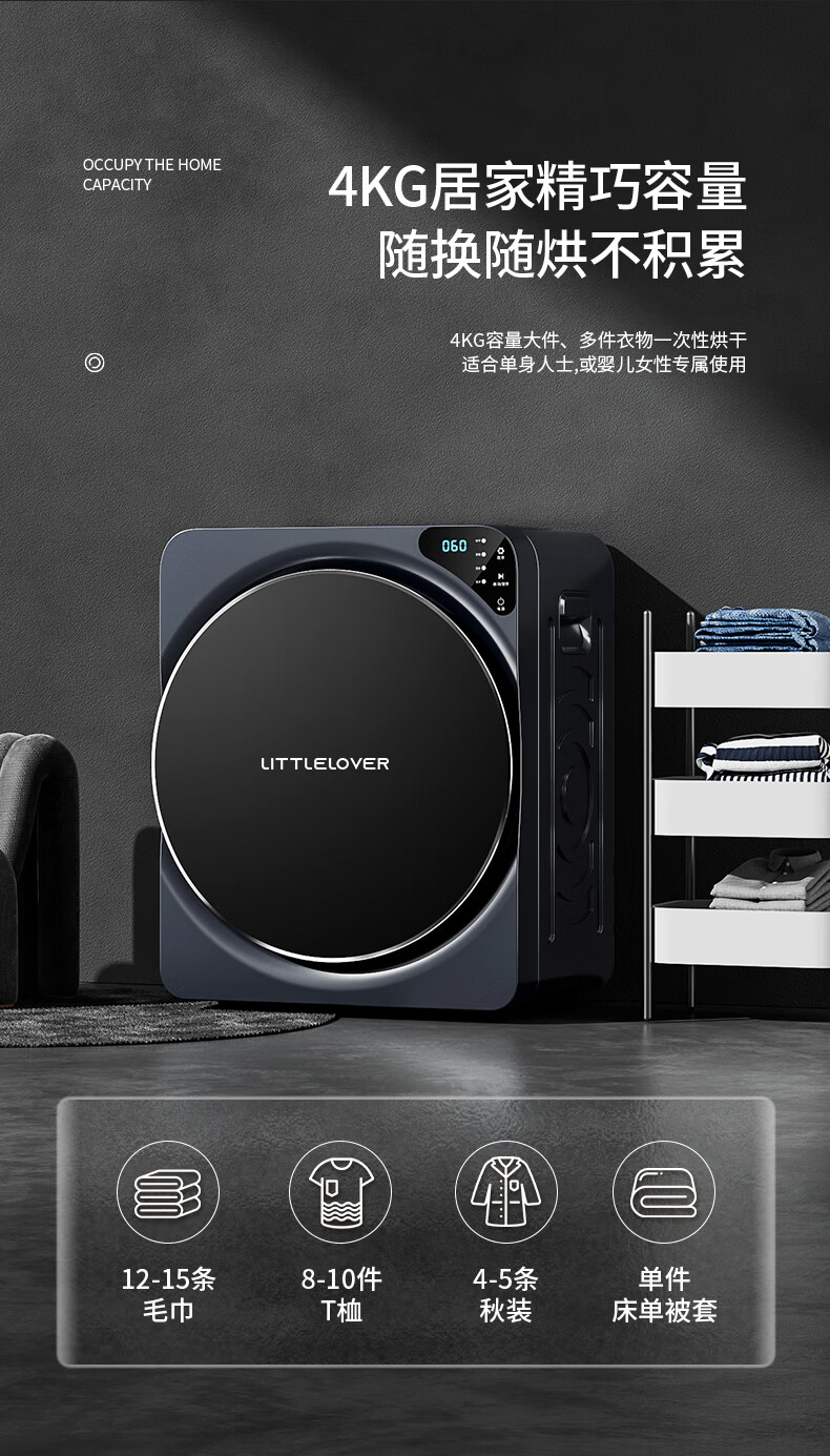 (特)LITTLELOVER德国滚筒式烘干机全自动家用小型4KG干衣机紫外消毒杀菌除螨【指定产品,拍前请联系客服】