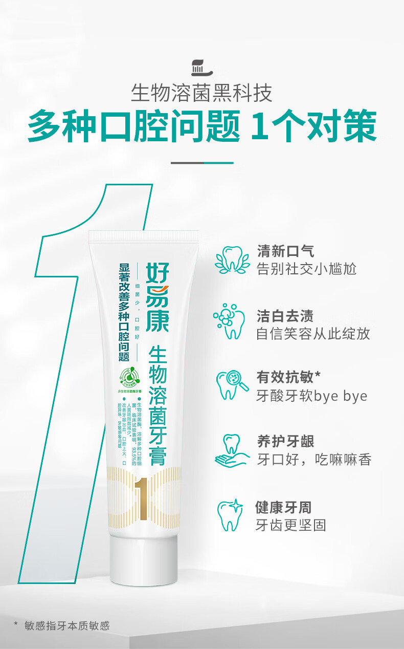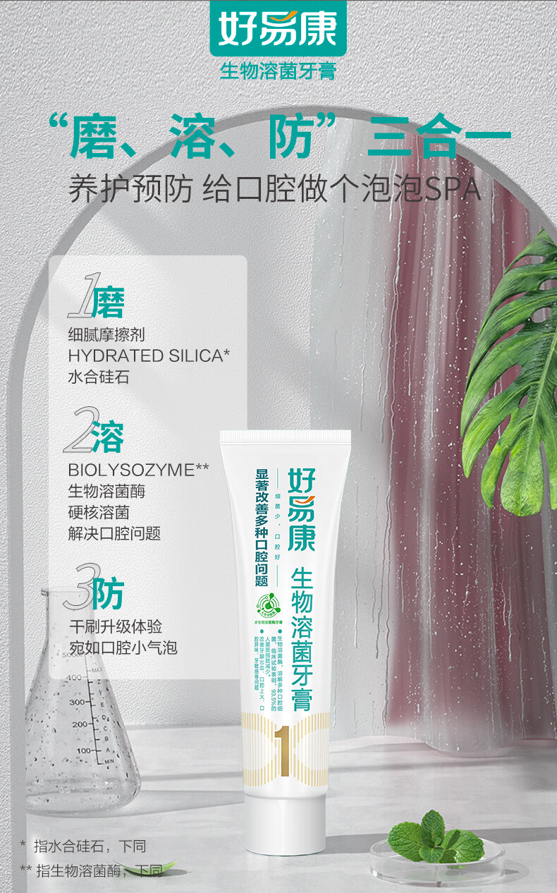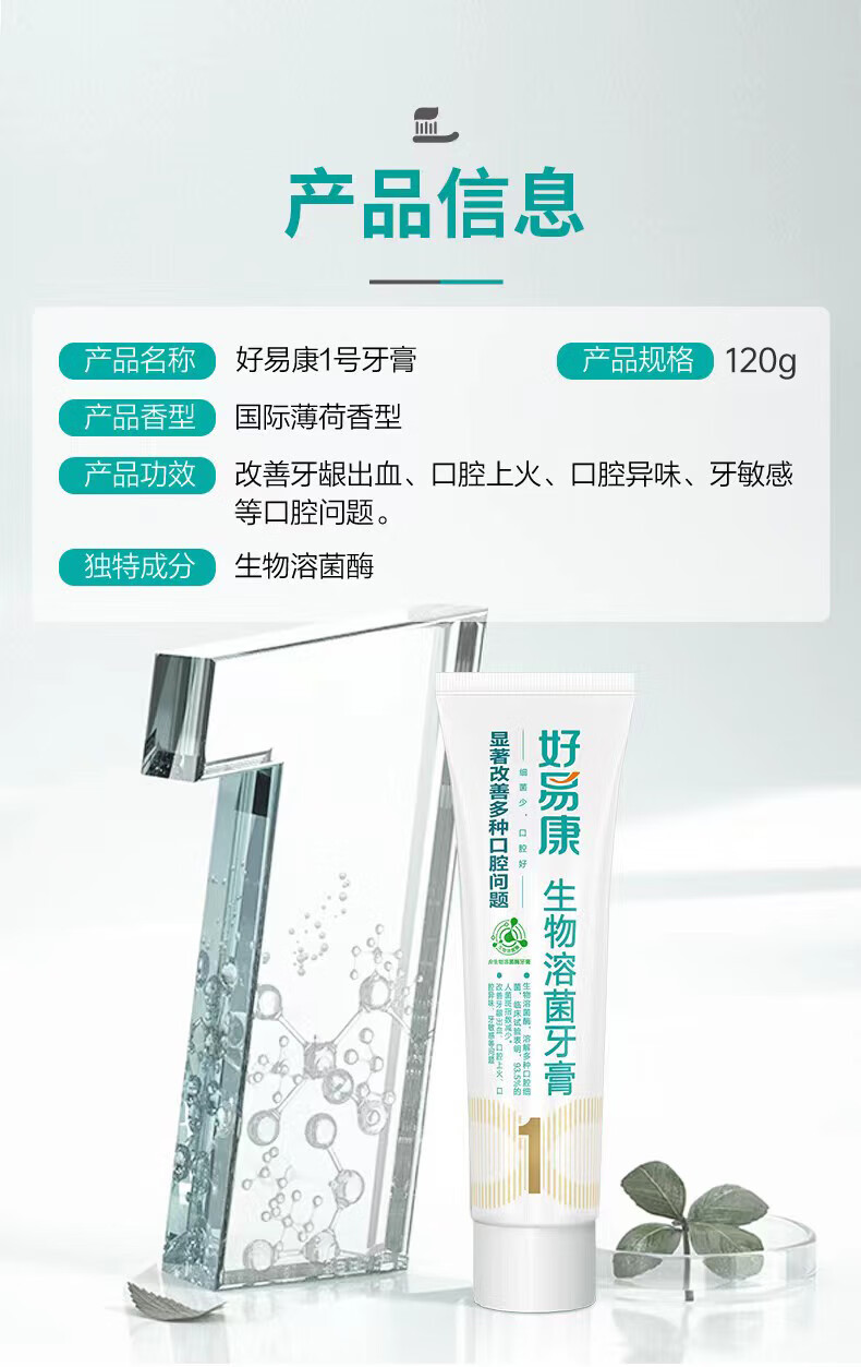 (特)好易康(HAOYIKANG)生物溶菌酶 1号牙膏 多效护理口腔问题 清新口气多效护龈