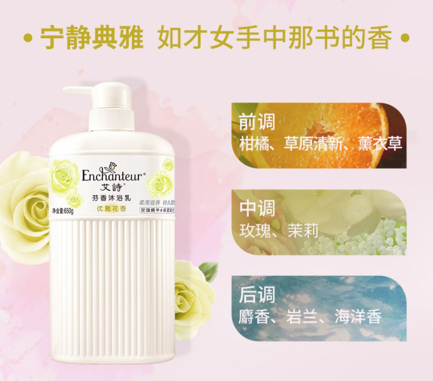 (特)艾诗(Enchanteur)沐浴露家庭装保湿香味持久沐浴液香水沐浴乳