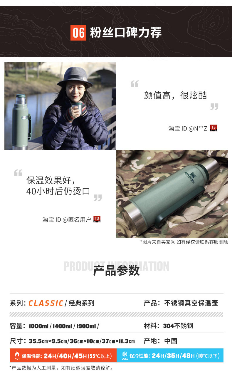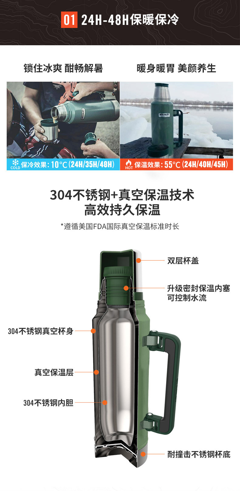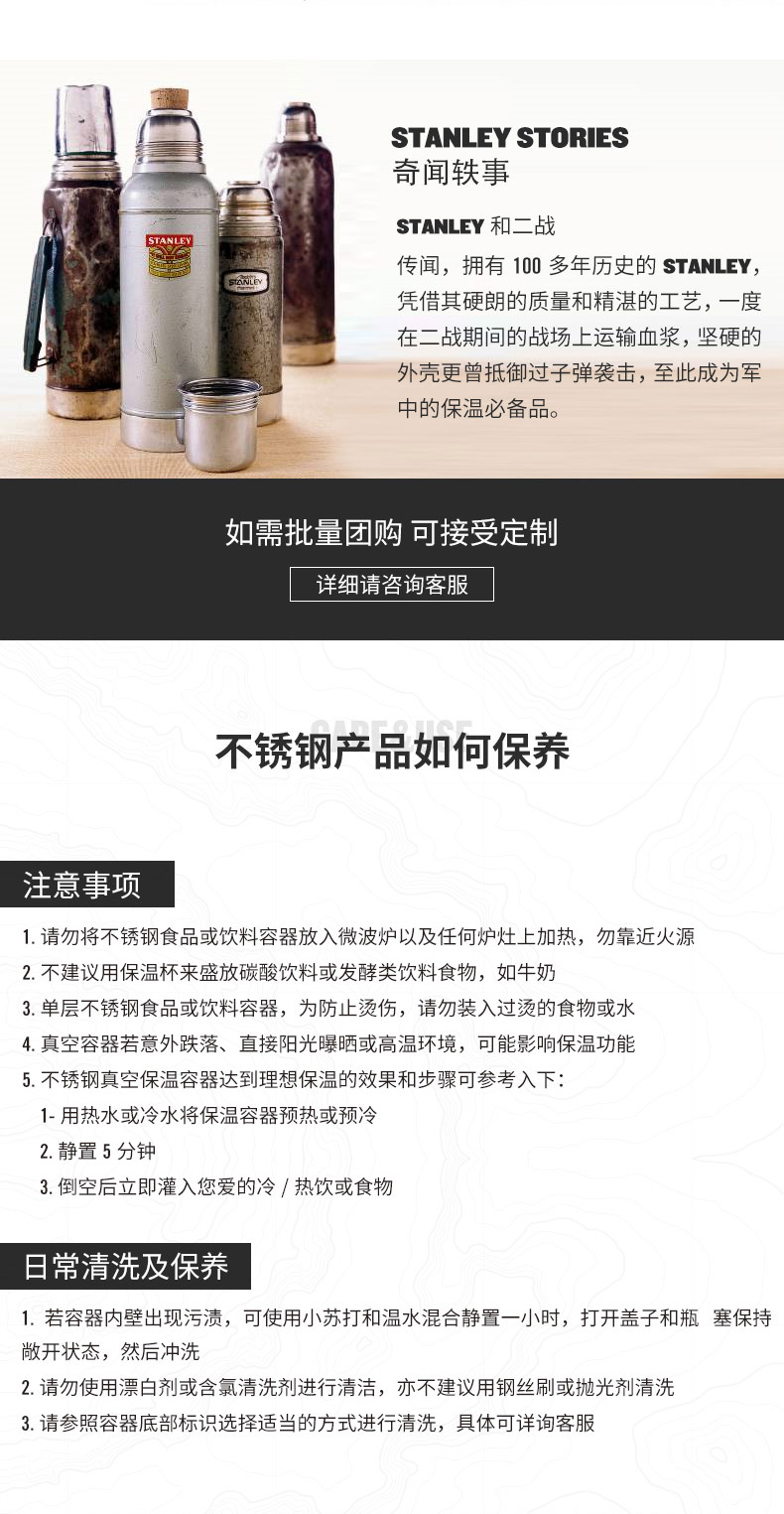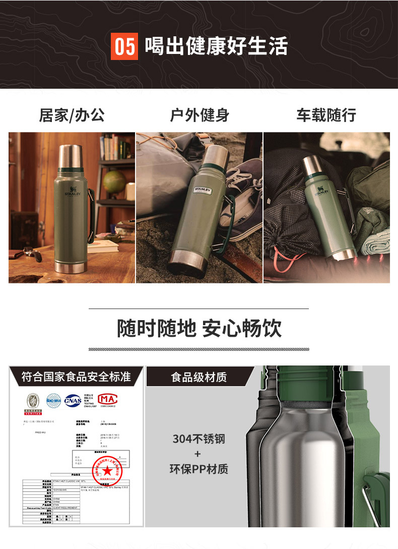 (特)美国stanley保温壶家用不锈钢水杯大容量保暖水壶户外旅行