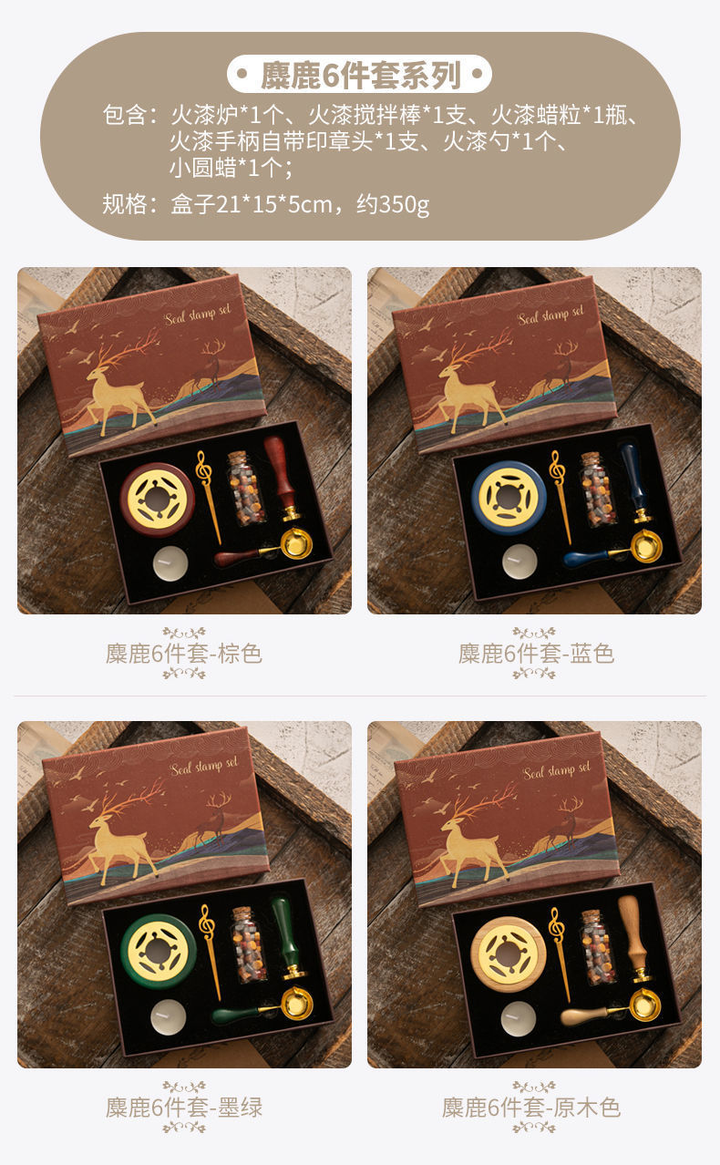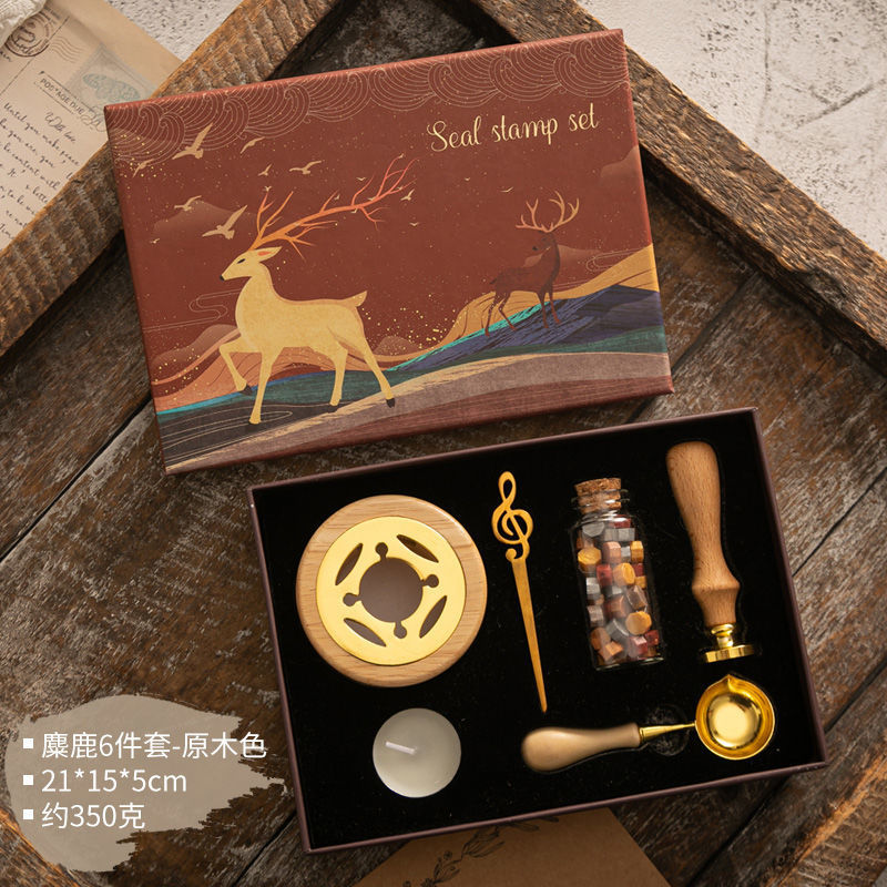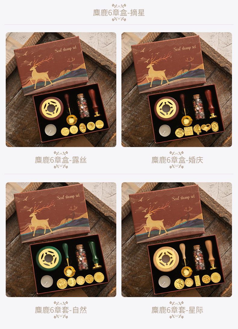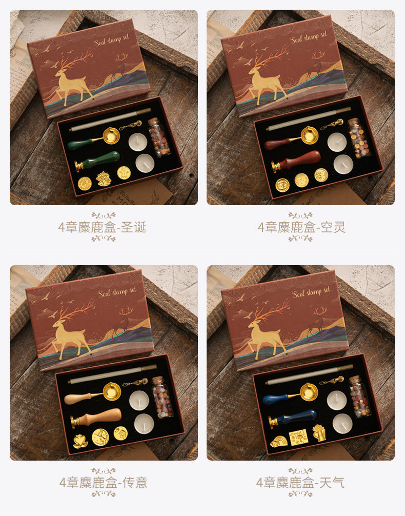 信封封口火漆印章套装复古圣诞麋鹿章头蜡粒工具全套