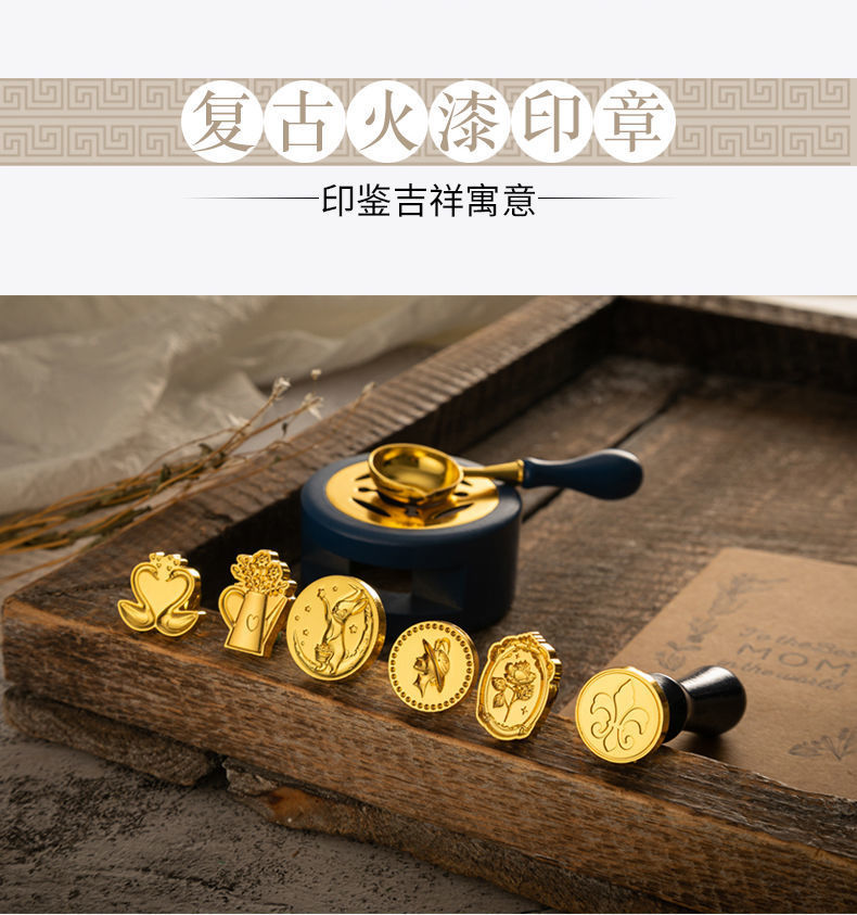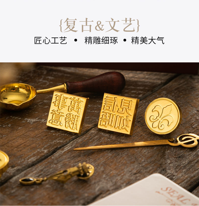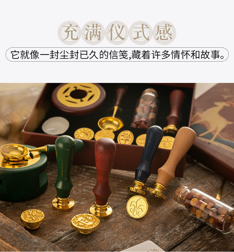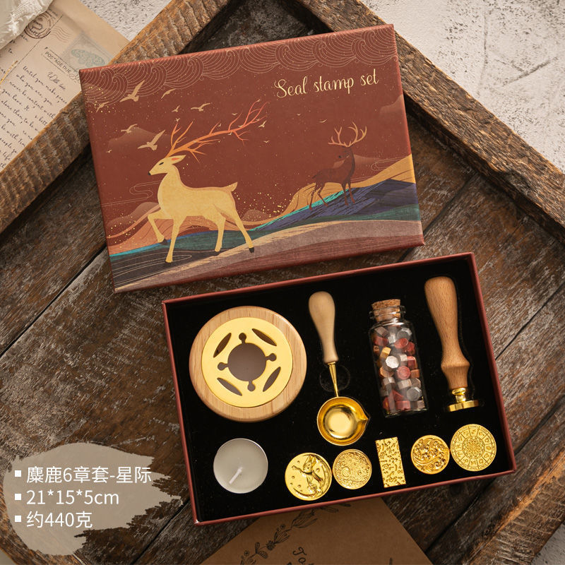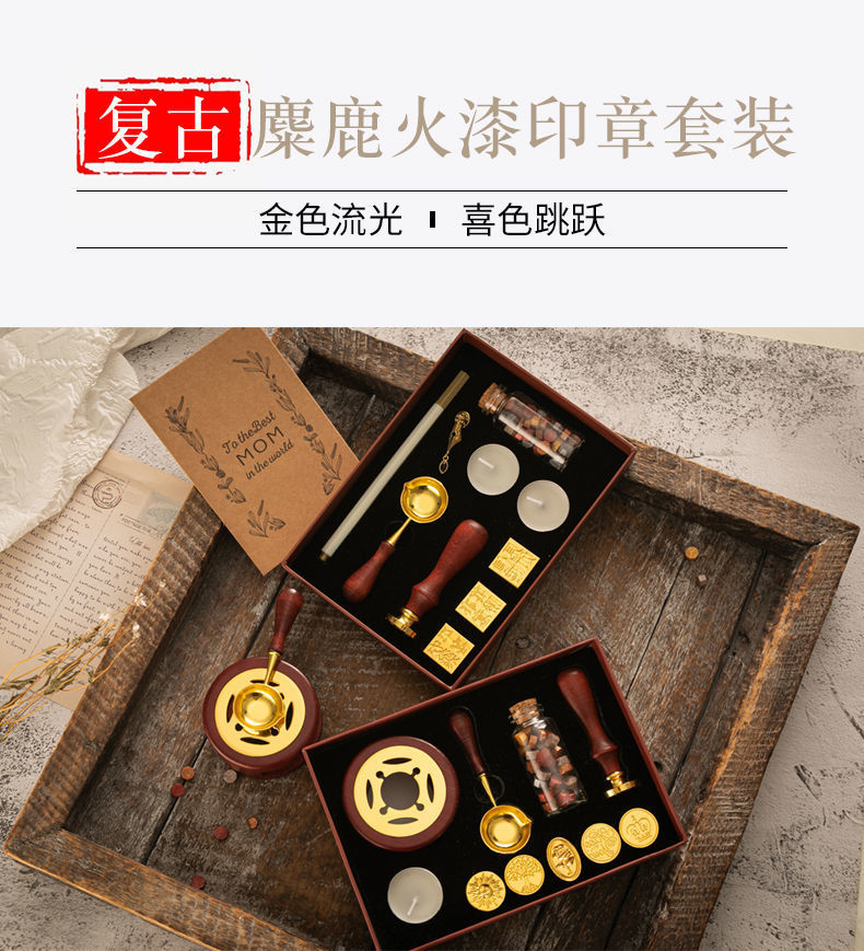 信封封口火漆印章套装复古圣诞麋鹿章头蜡粒工具全套