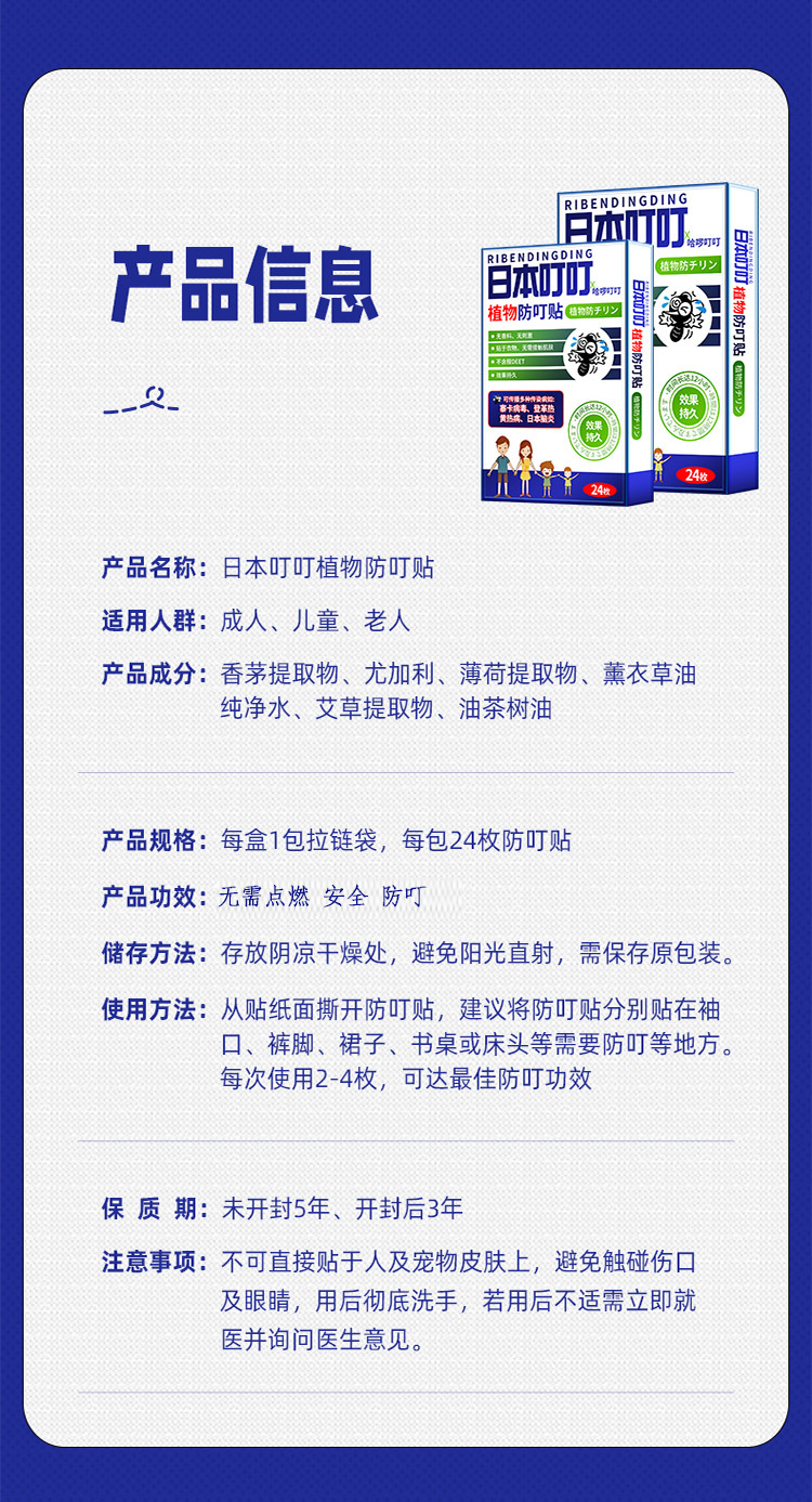 日本叮叮防叮贴卡通植物香茅精油婴儿儿童孕妇随身携带贴