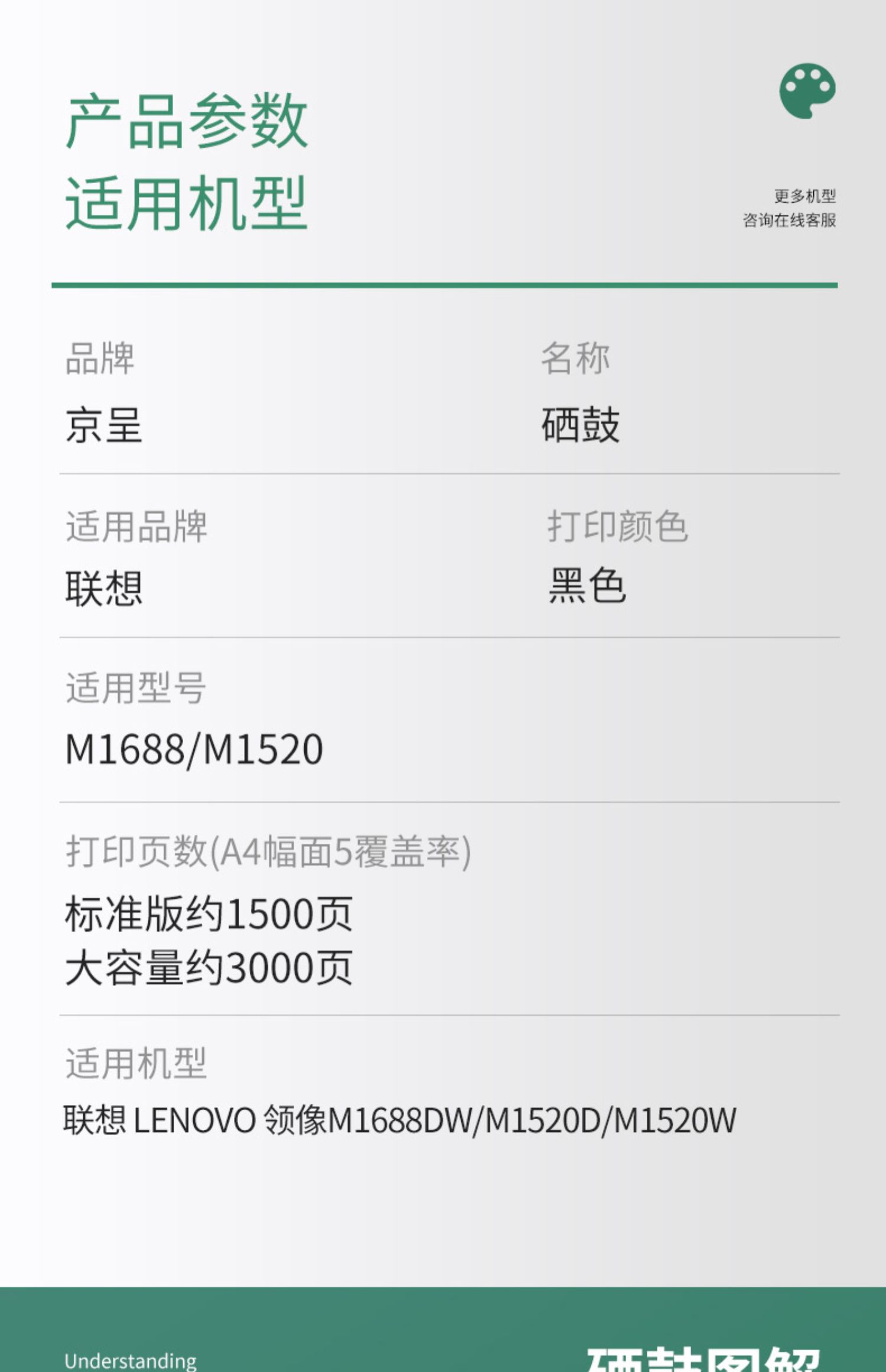 (特)京呈适用联想M1688DW粉盒领像M1520W硒鼓M1520D激光多功能一体机墨盒m1520打印机黑色碳粉1688鼓架