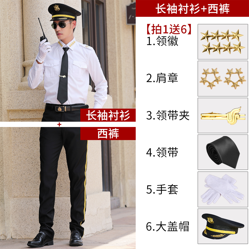 - 长袖衬衫+西裤+送6(大盖帽) 44码