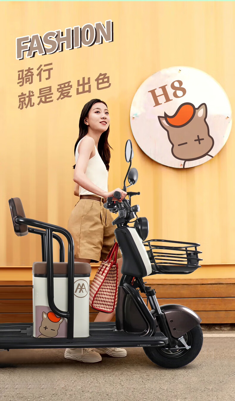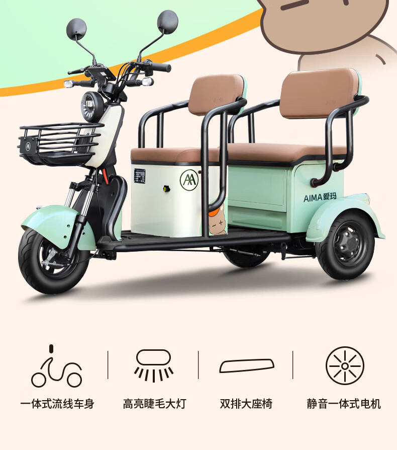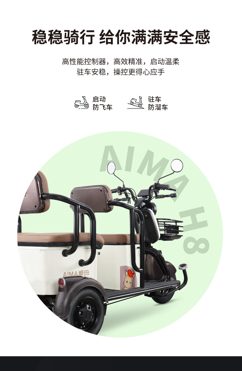 (特)爱玛(AIMA)电动三轮车全新老人家用小型三轮电动车接送孩子老年休闲车摩托车 H8-抹茶绿-60V20A铅酸电池