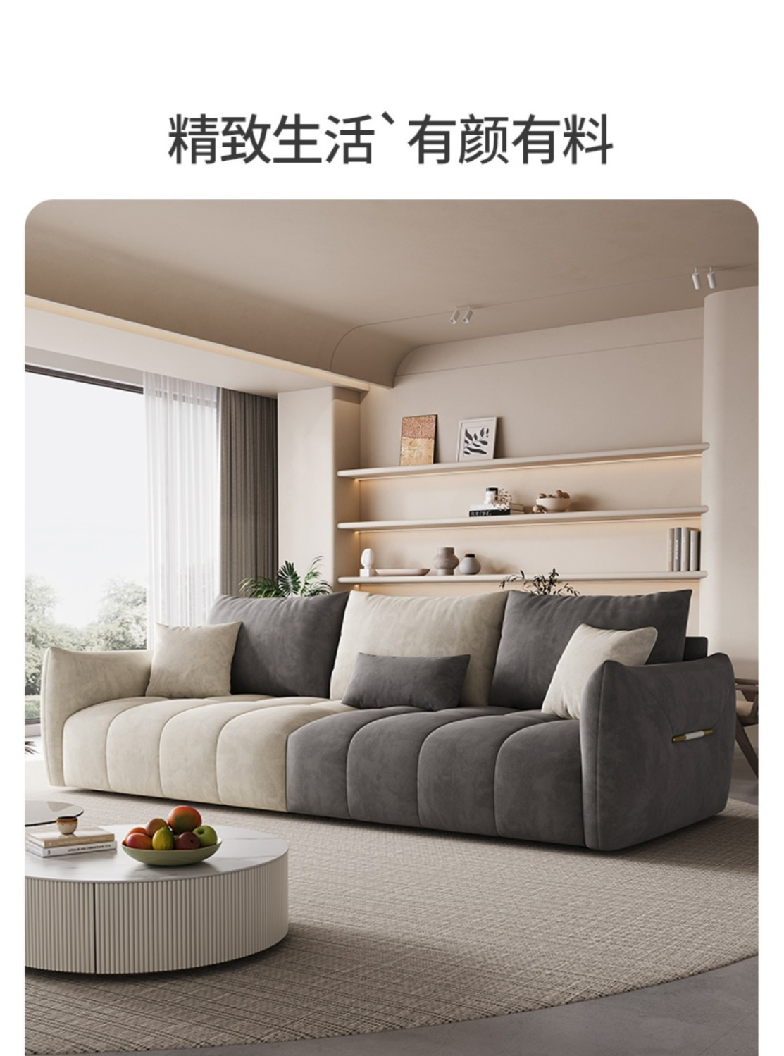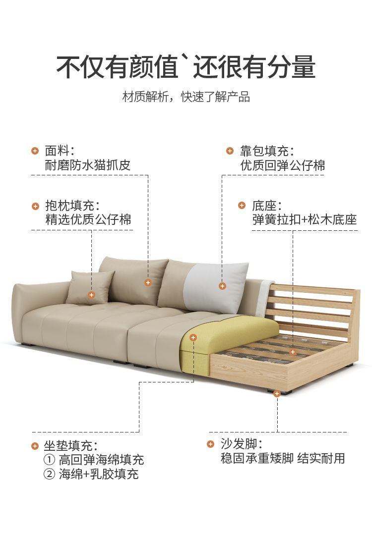 (特)意式奶油风科技猫抓皮婴儿绒艺客厅沙发科技布小户型三四人位贵妃