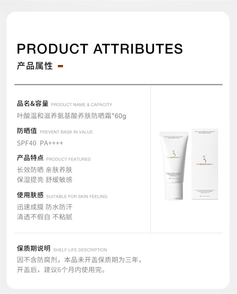 (特)嫩芙德国叶酸孕妇专用防晒霜水感隔离乳哺乳期可用SPF40【原装进口】 嫩芙氨基酸防晒60g