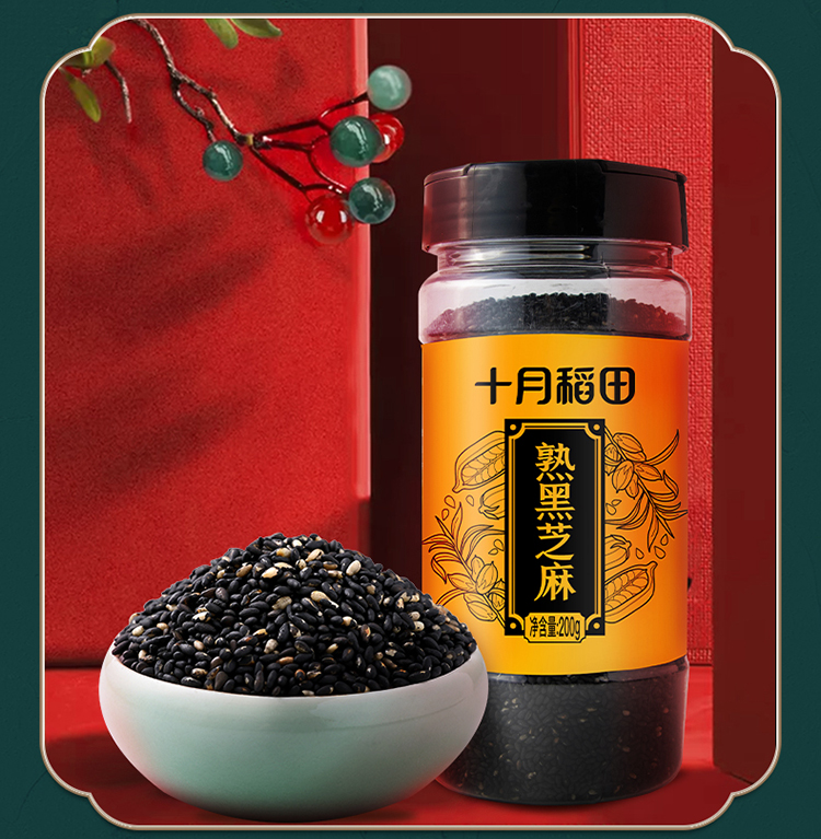 (特)十月稻田熟黑芝麻即食干吃零食五谷杂粮烘焙粗粮200g可磨粉炒熟