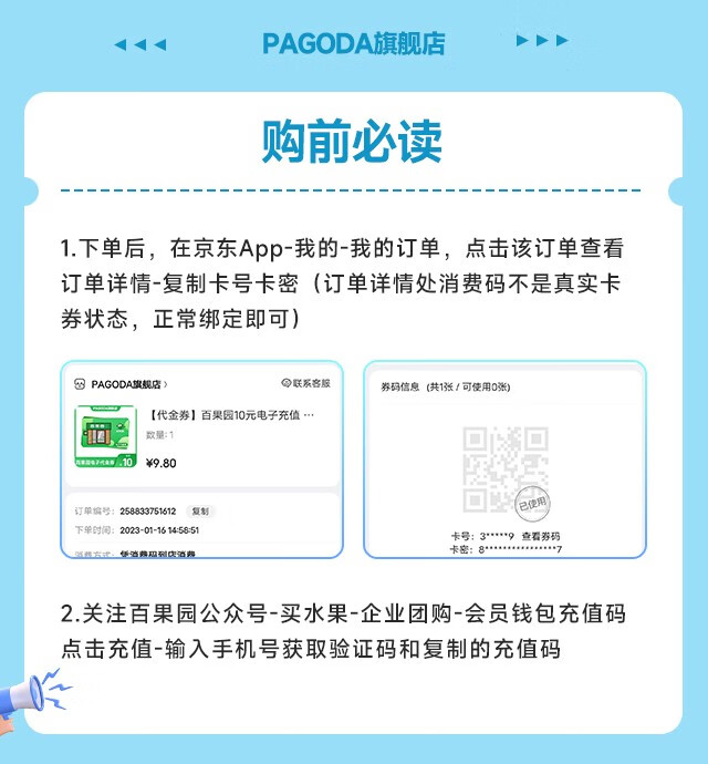 (特)百果园电子卡充值码 实体卡均可