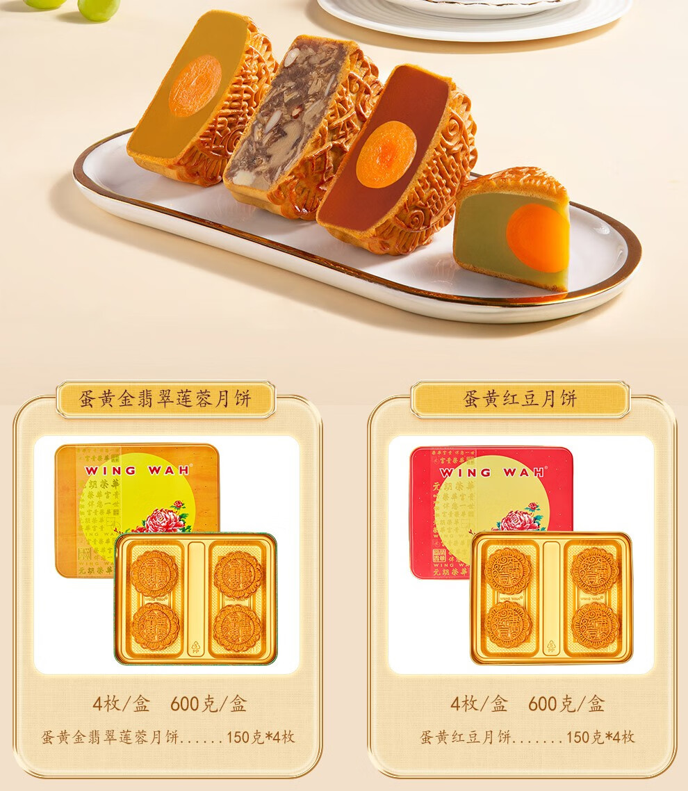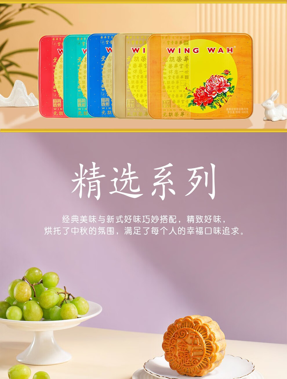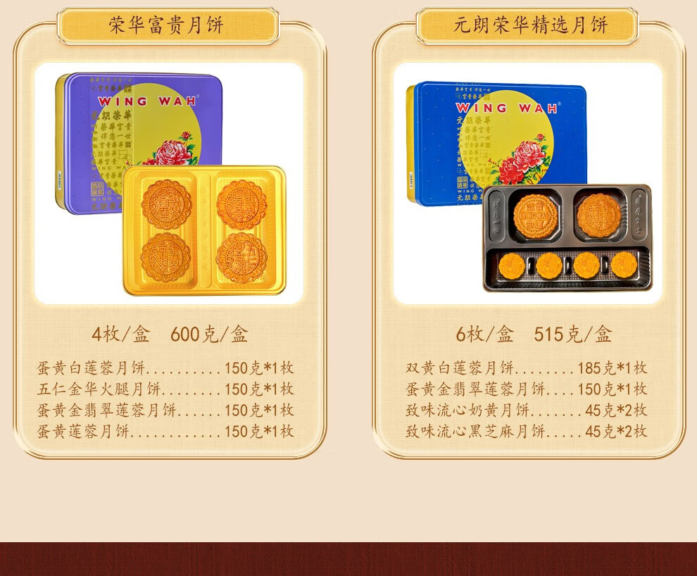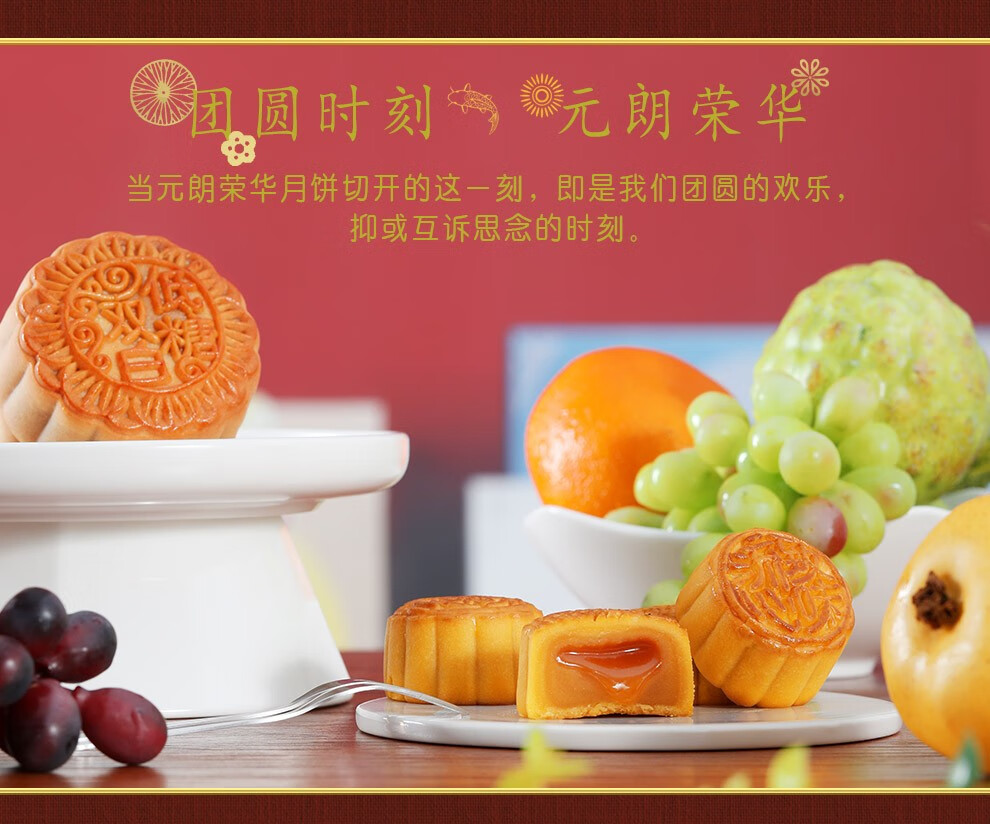 (特)元朗荣华元朗荣华精选系列蛋黄芝麻核桃红豆火腿月饼礼盒 荣华富贵月饼