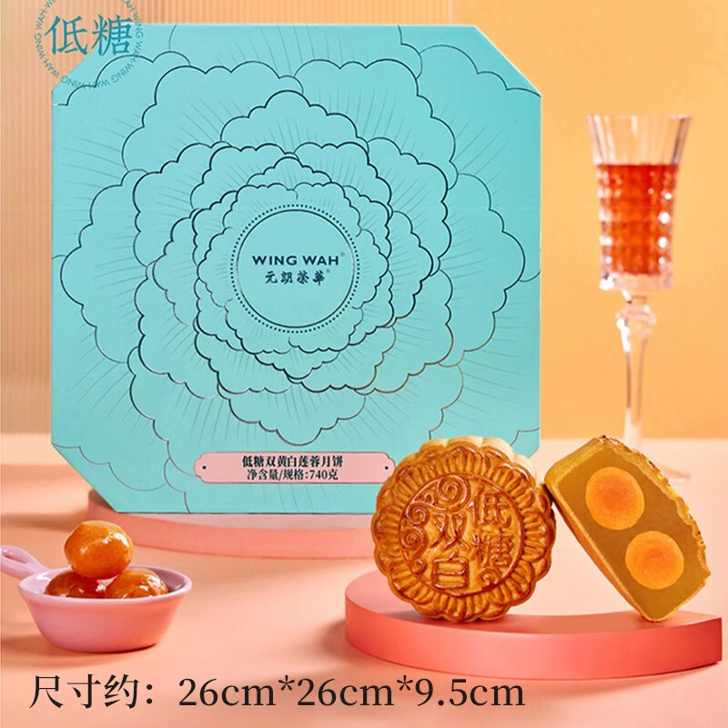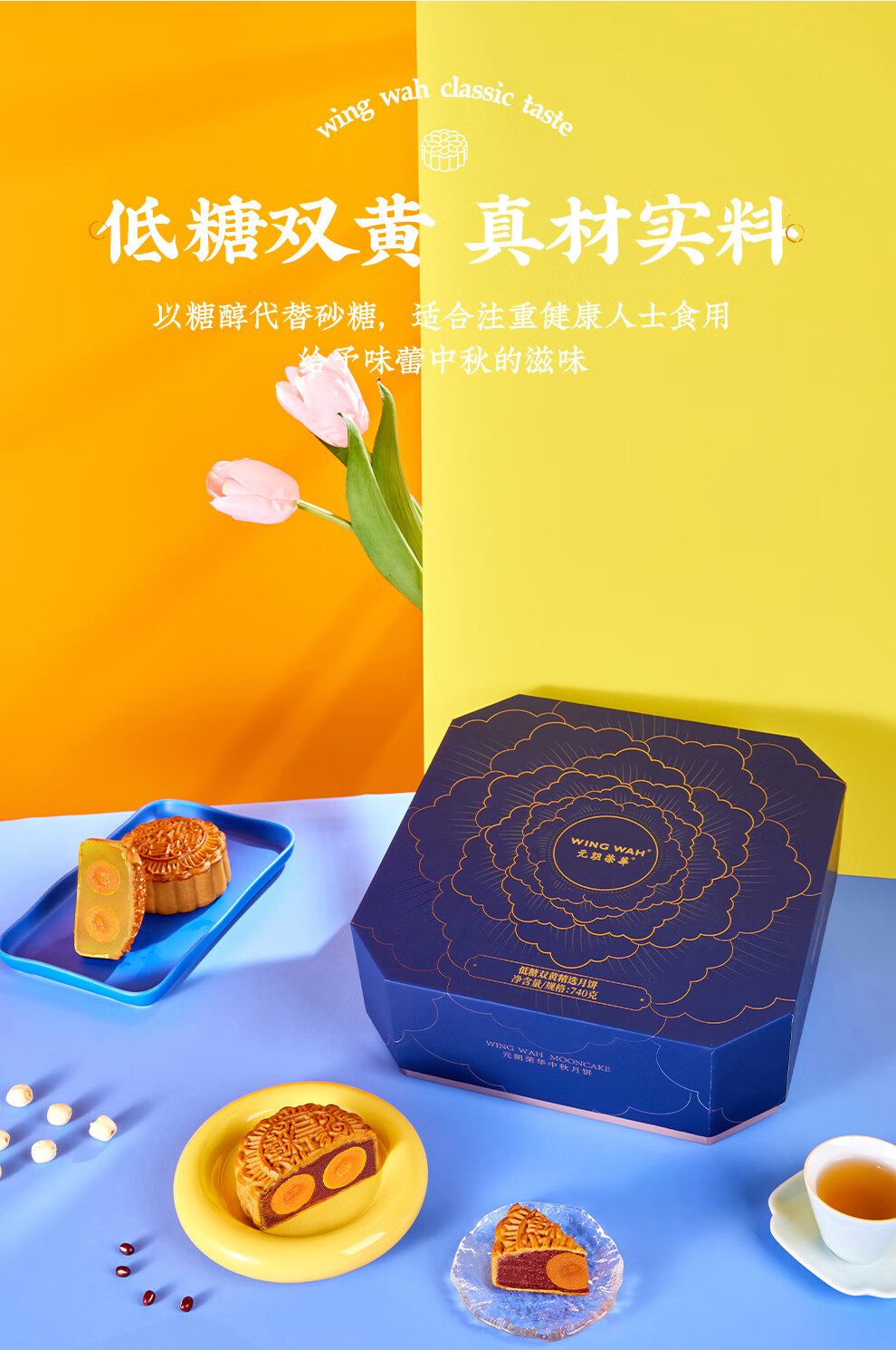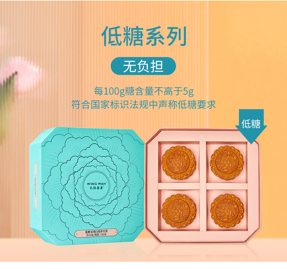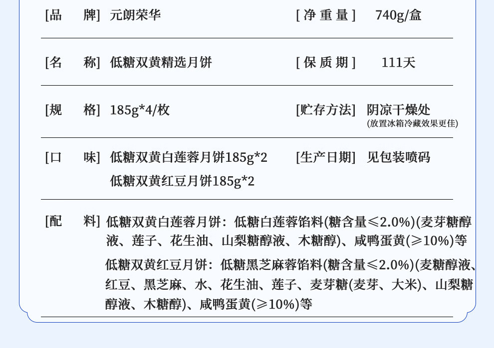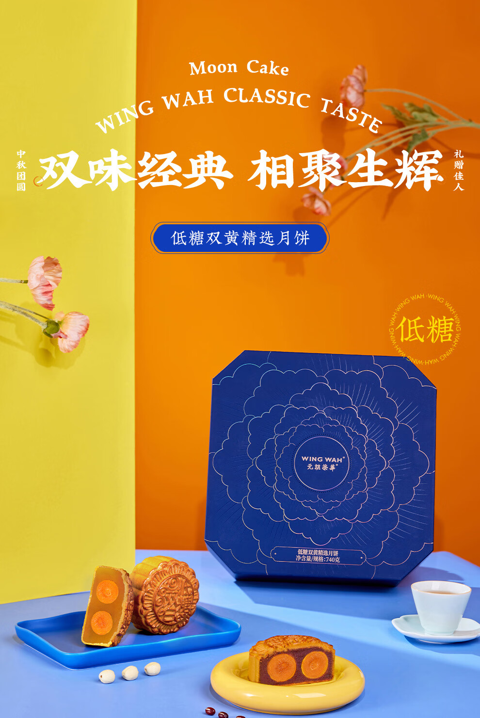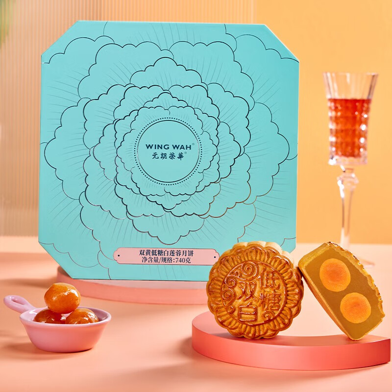 (特)元朗荣华低糖系列(蛋黄莲蓉、芝麻、双黄精选)740g月饼礼盒 广式月饼 中秋礼品企业团购