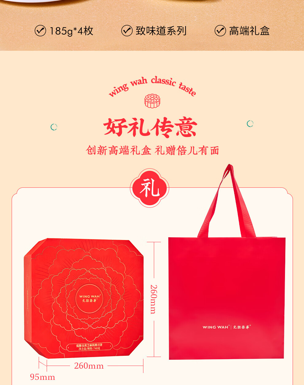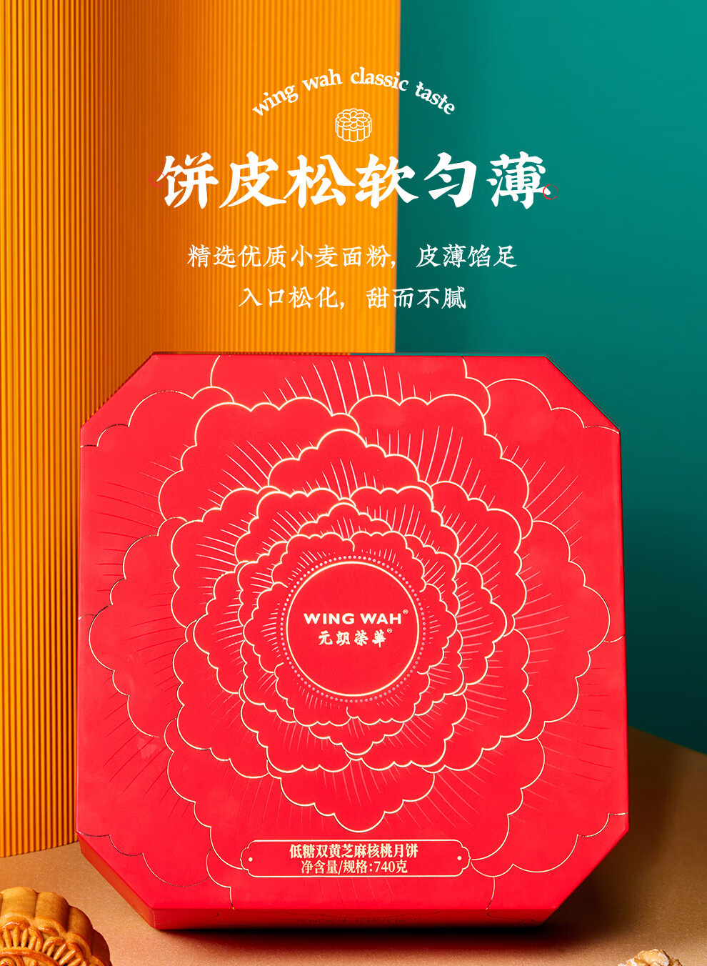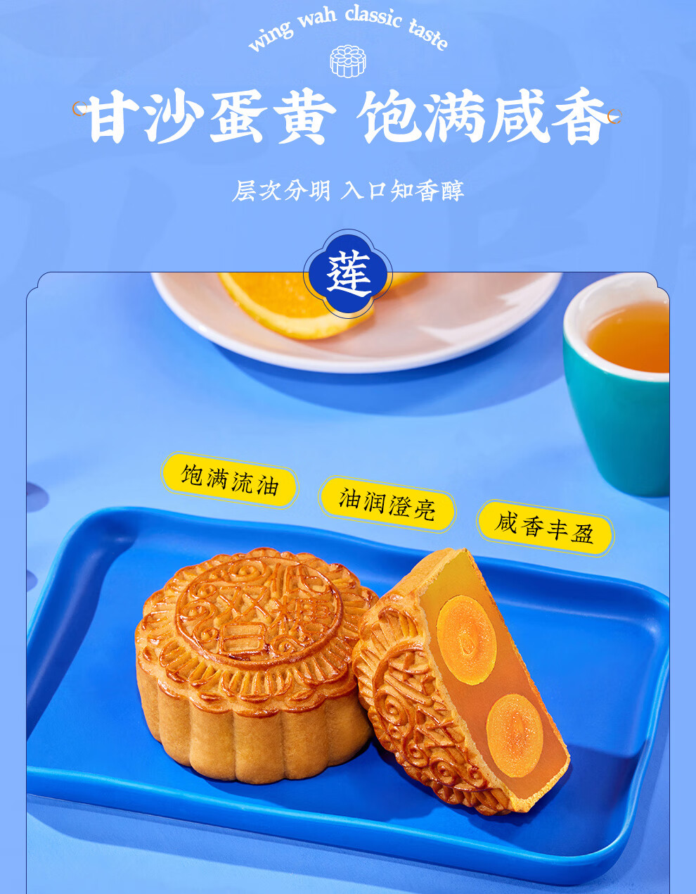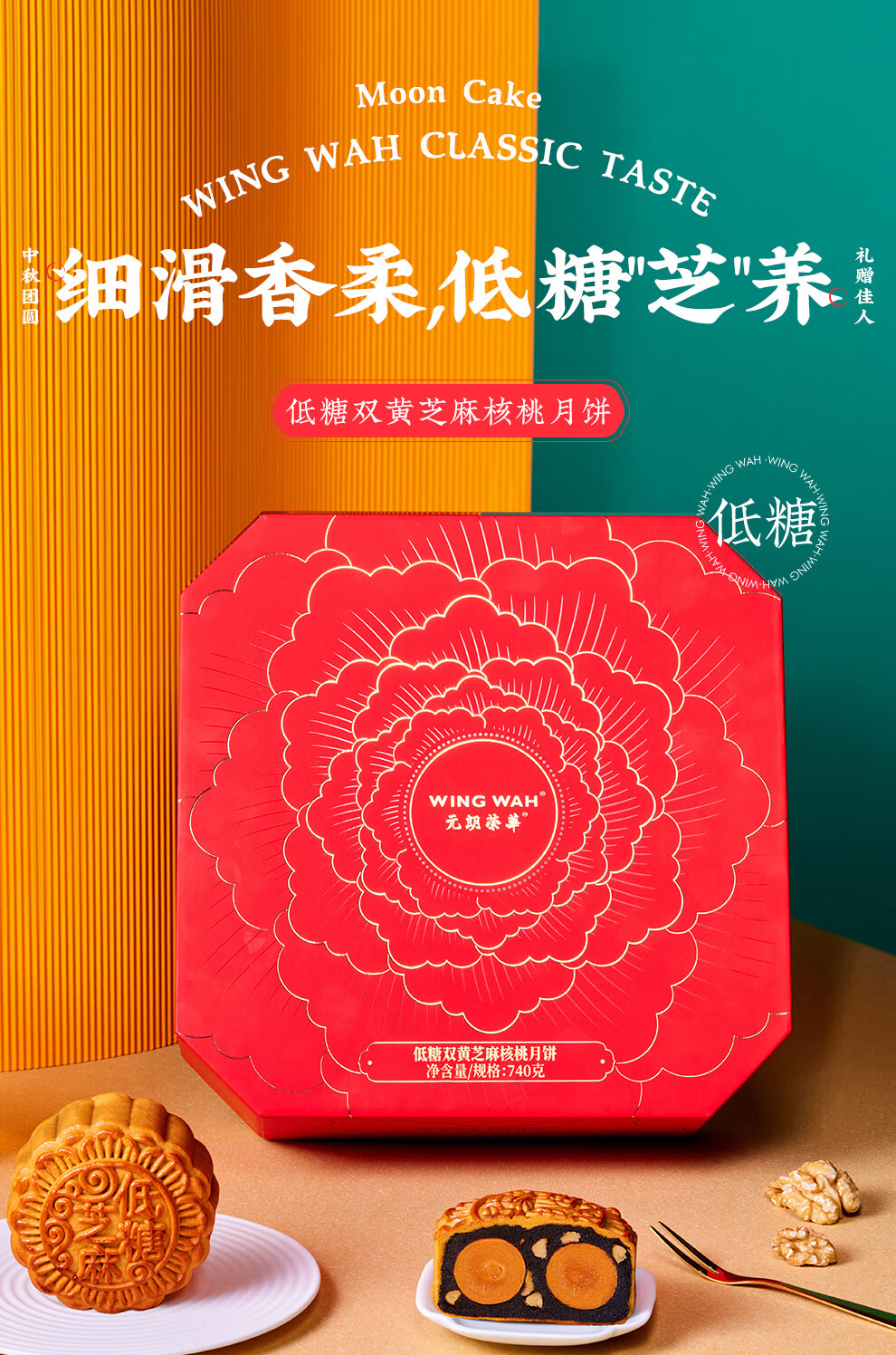 (特)元朗荣华低糖系列(蛋黄莲蓉、芝麻、双黄精选)740g月饼礼盒 广式月饼 中秋礼品企业团购