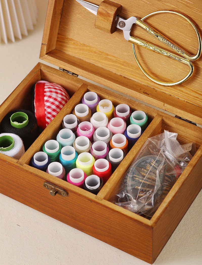 木质针线盒套装 家居针线包 复古整理箱家用多功能实木针线收纳盒