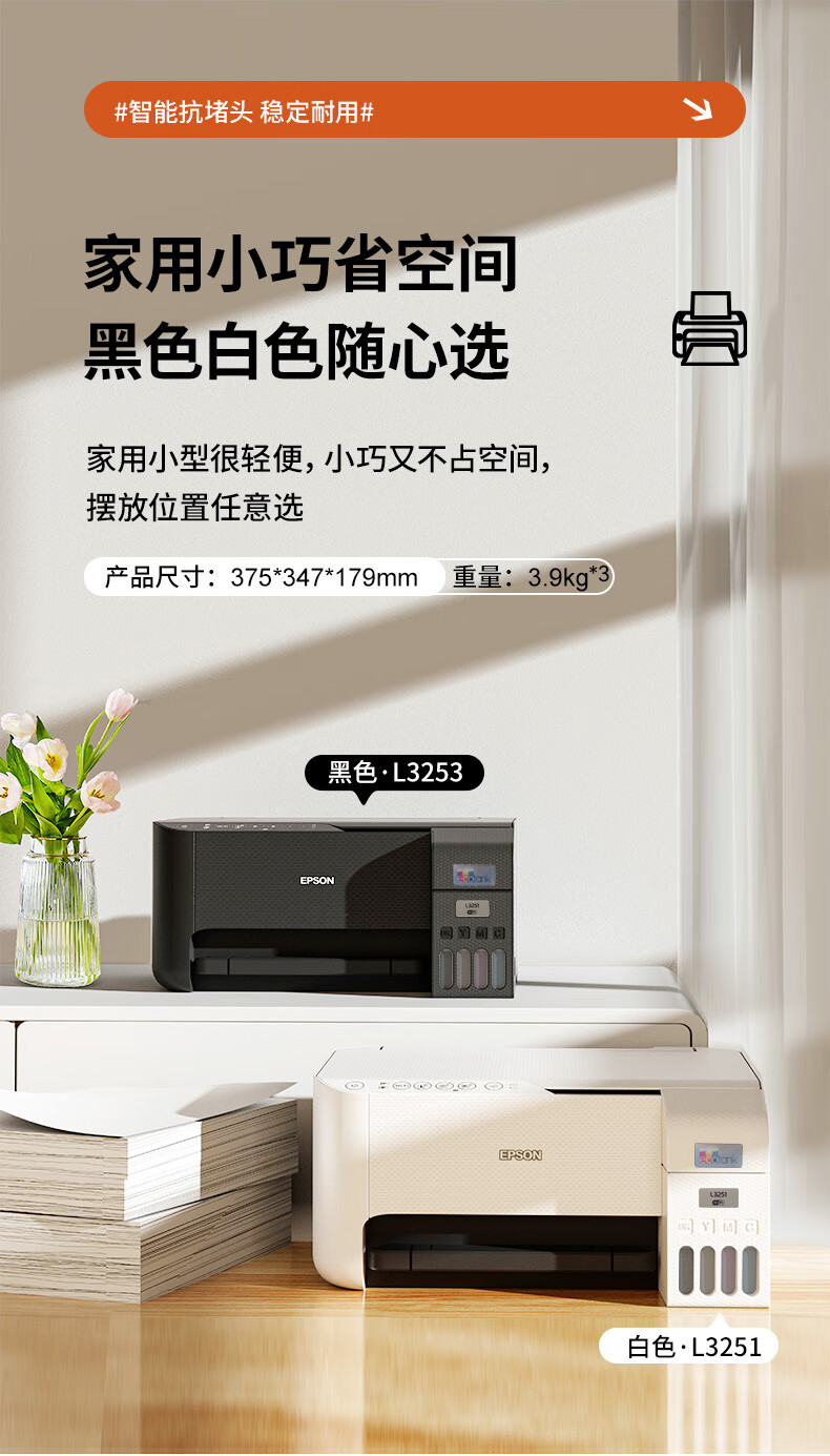 (特)爱普生(EPSON) 彩色家用无线办公喷墨照片打印复印扫描多功能打印机 L1259黑色【单打印彩色打印 不支持自动双面 】