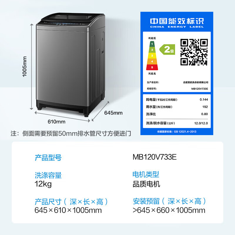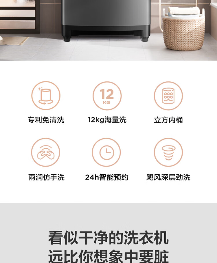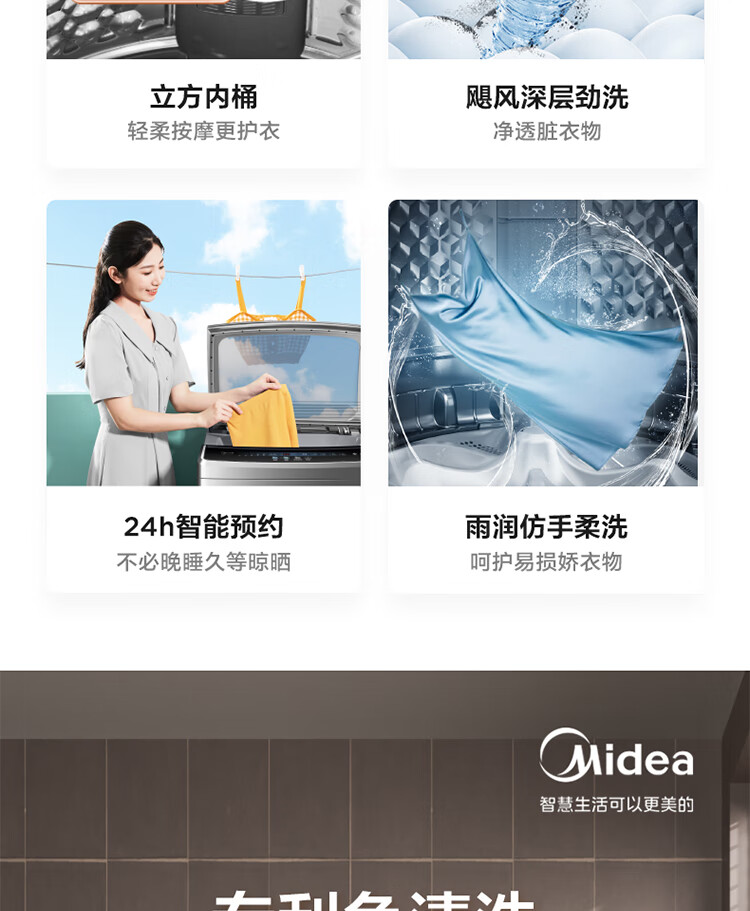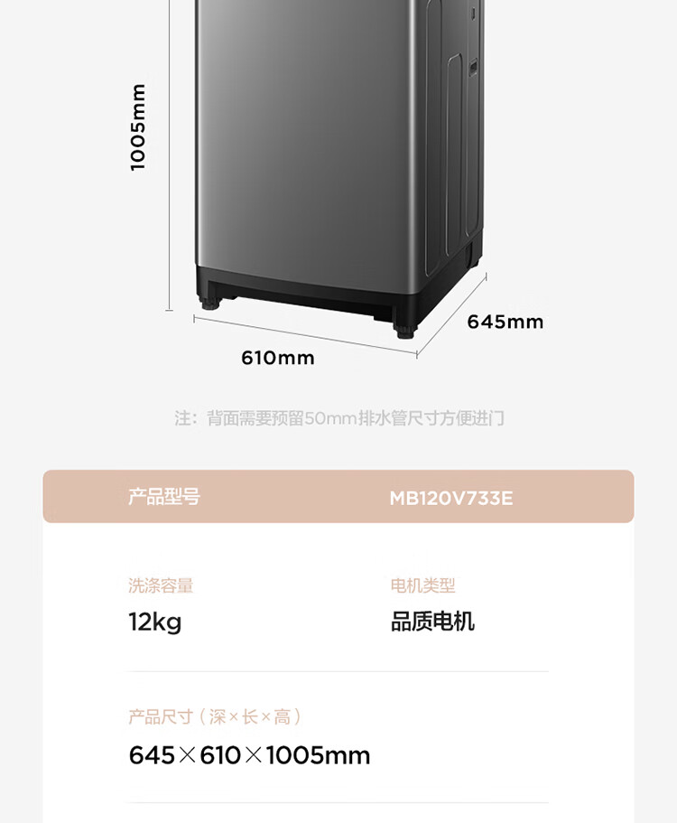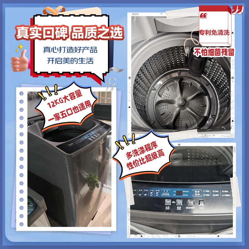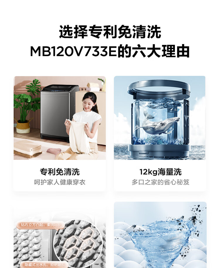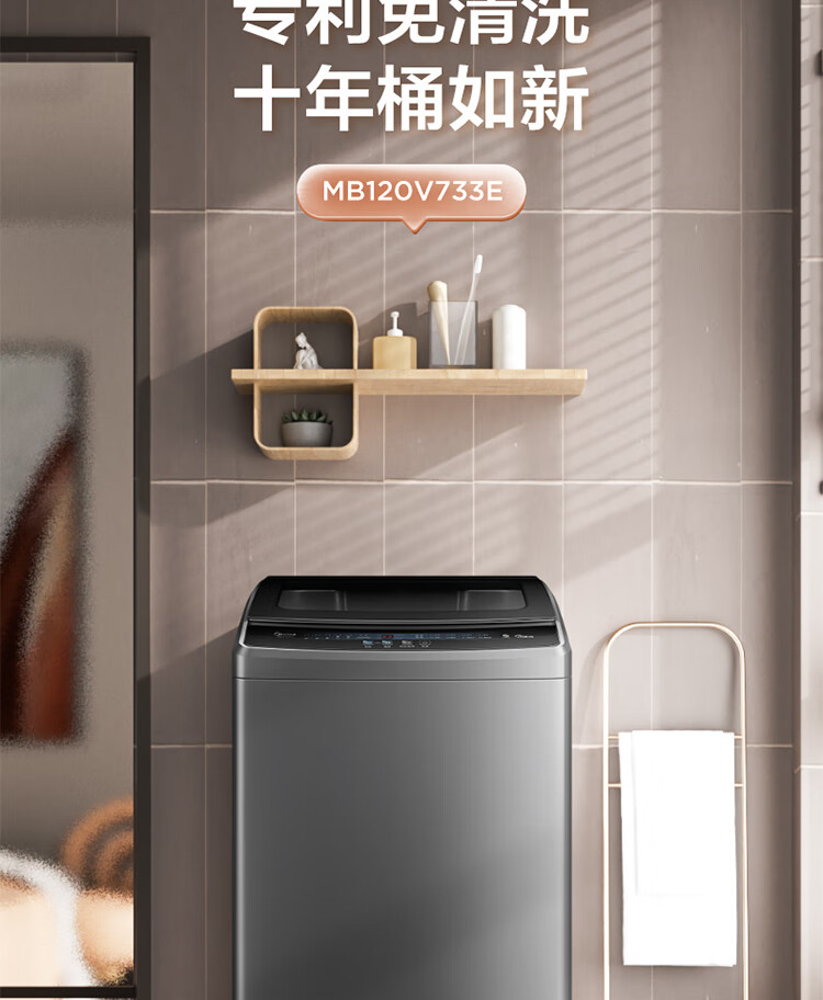 (特)美的(Midea)波轮洗衣机全自动 12公斤 立方内桶 专利免清洗 十年桶如新 深层劲洗 大容量海量洗 MB120V733E