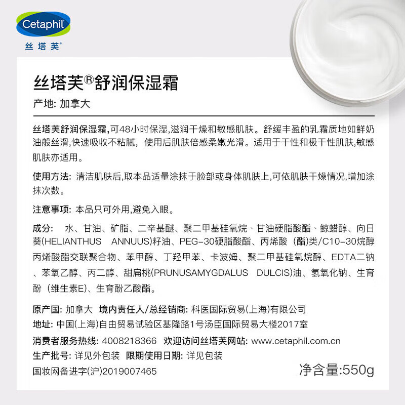 (特)丝塔芙保湿大白罐550g两只装滋润面霜
