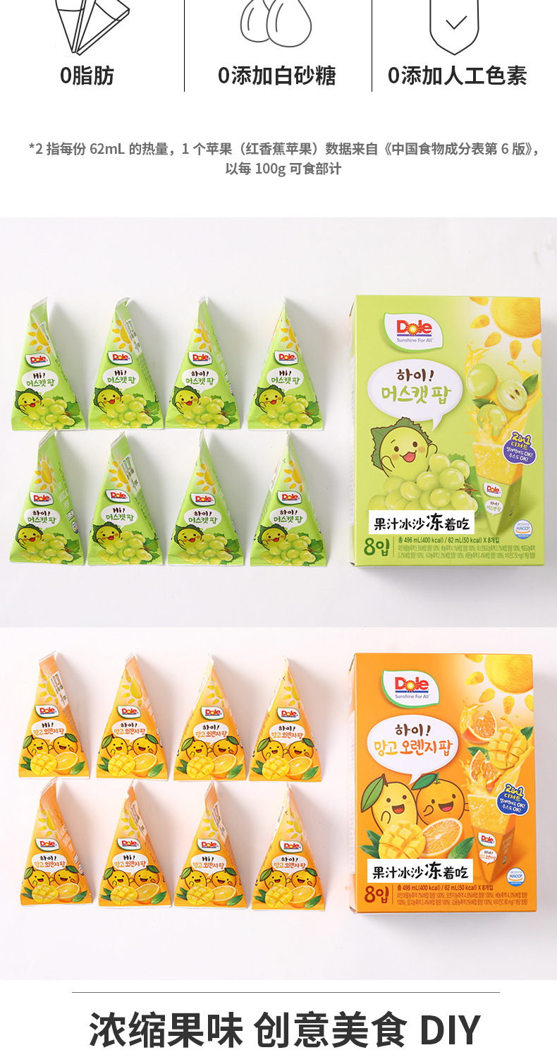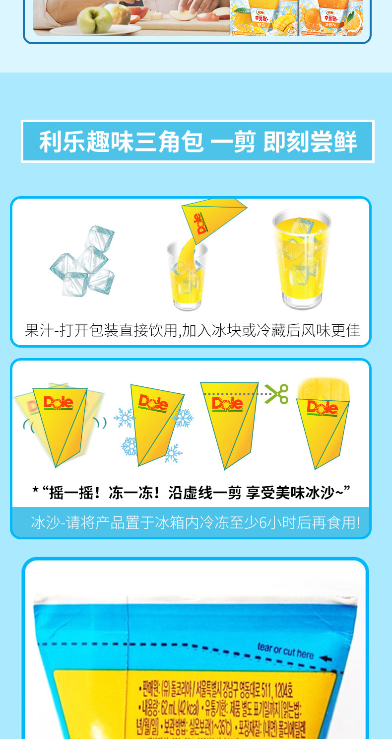 (特)韩国进口dole/都乐冰沙苹果芒果菠萝橙子味果汁饮料冰沙复合果汁