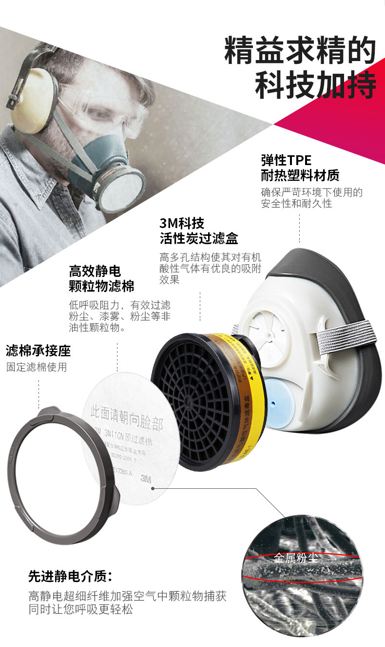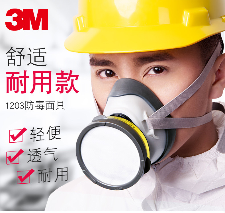 3M1203防毒面具实验室酸性气体有机蒸气二氧化硫化工氯气防护面罩