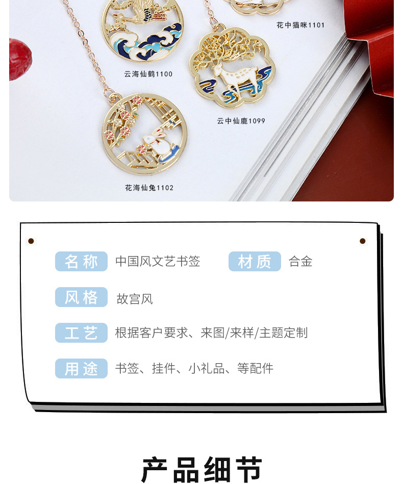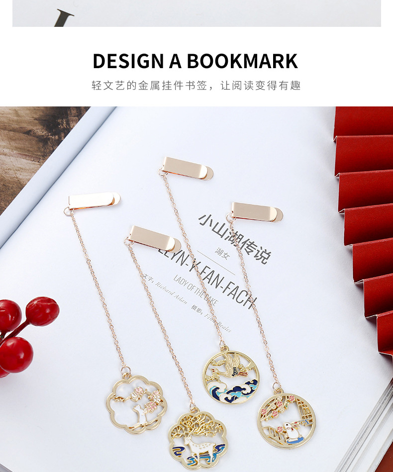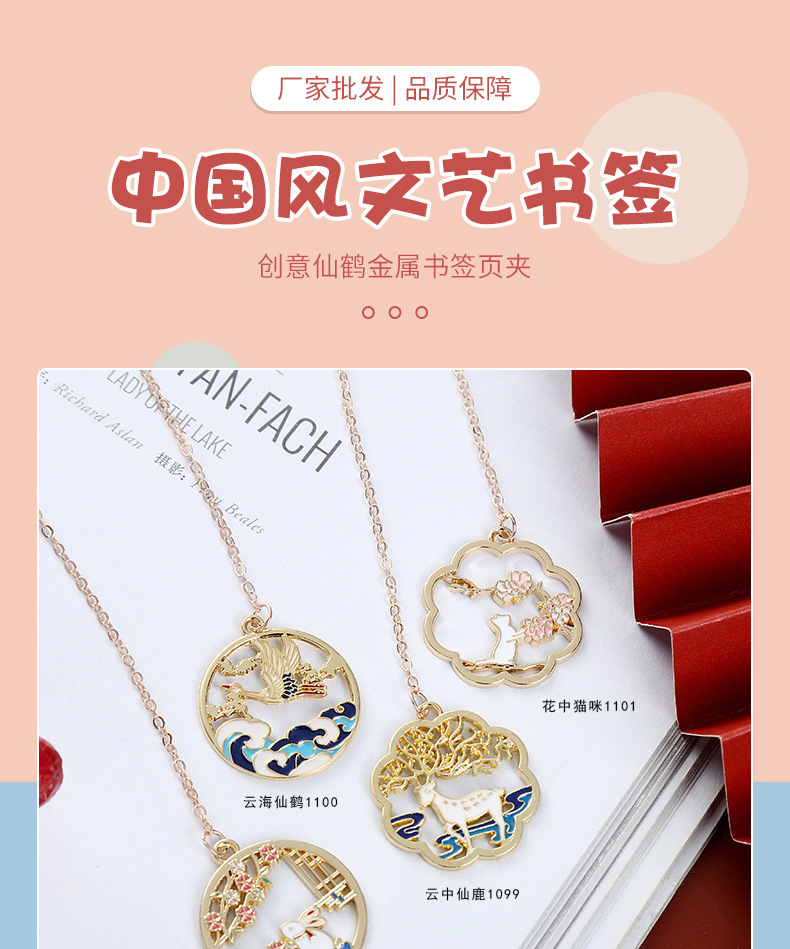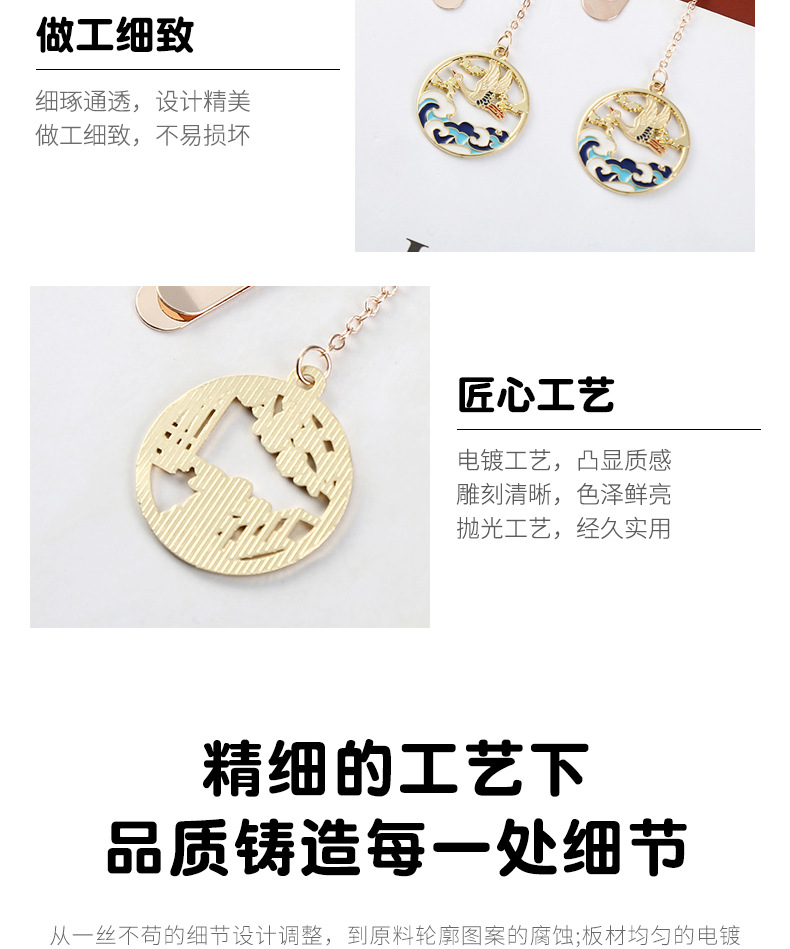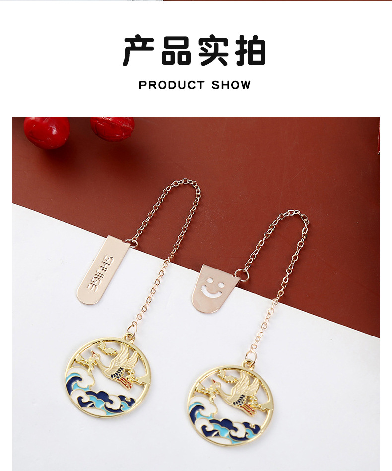 中国风文艺书签 创意仙鹤金属书签页夹纪念礼品古风文创产品