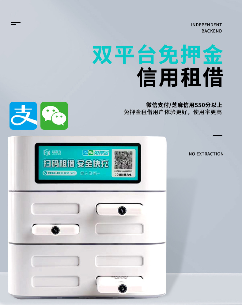 利客充共享充电宝商用租借免押金移动电源设备酒吧餐厅扫码机柜