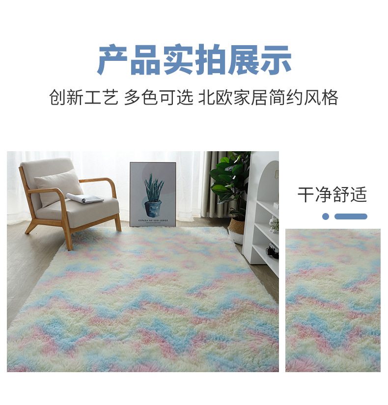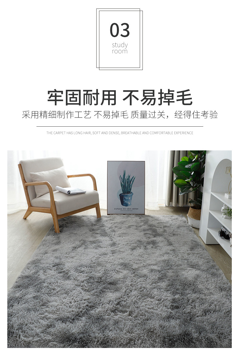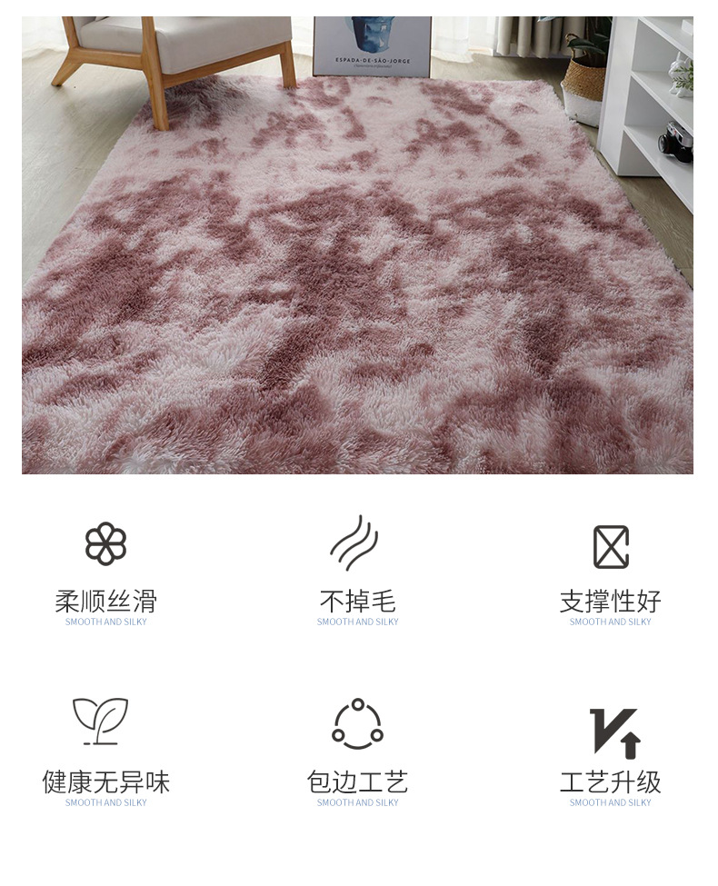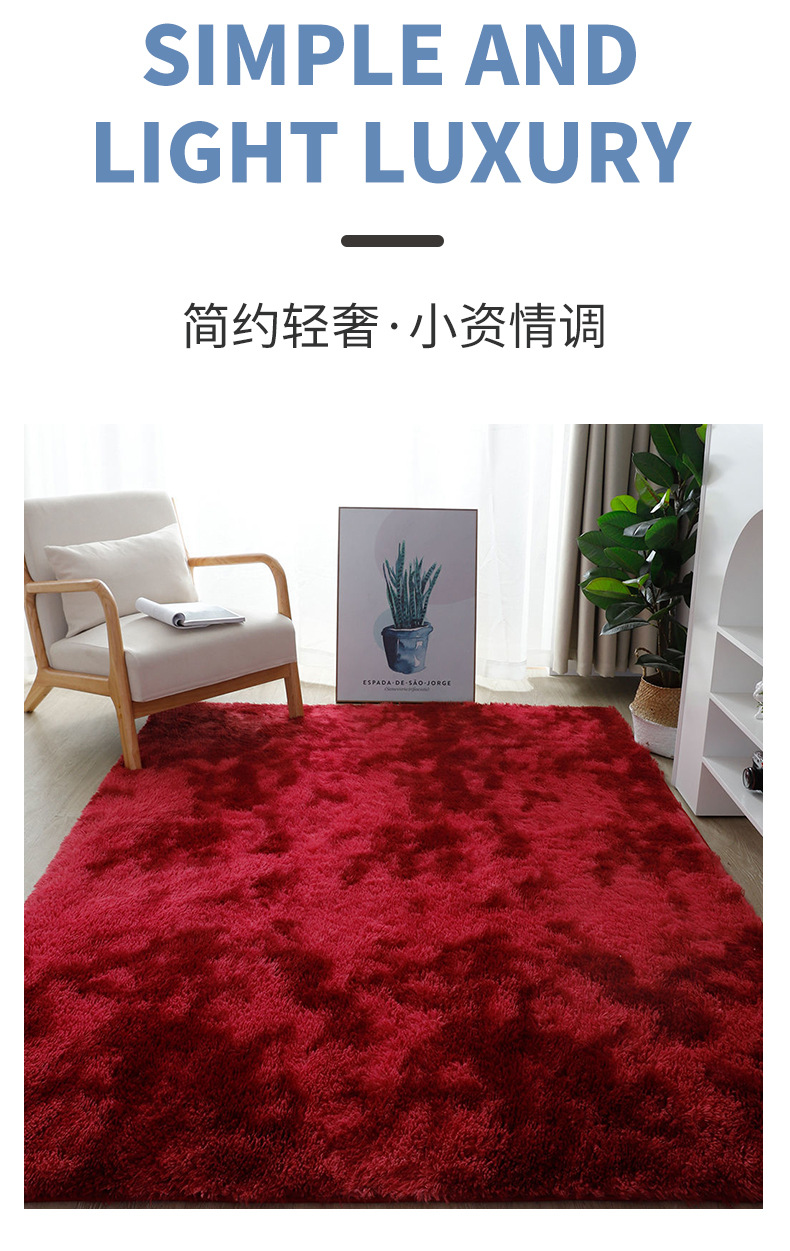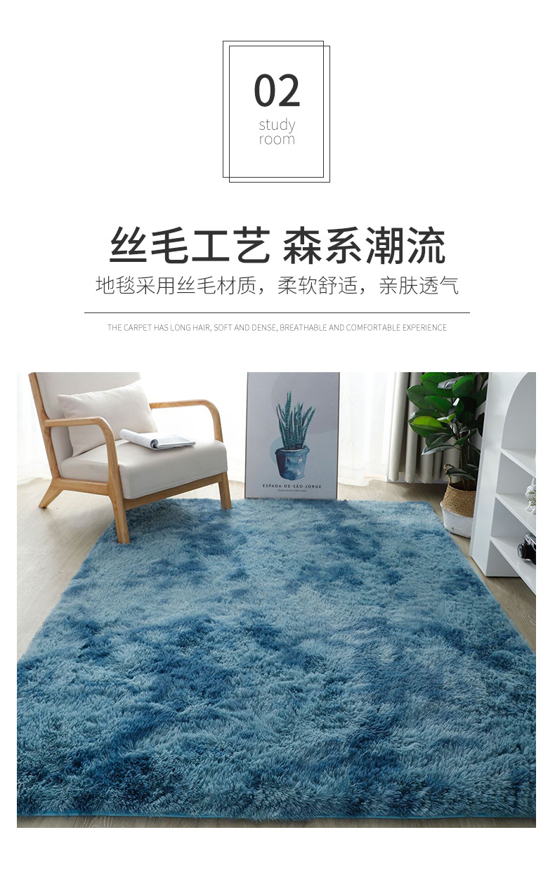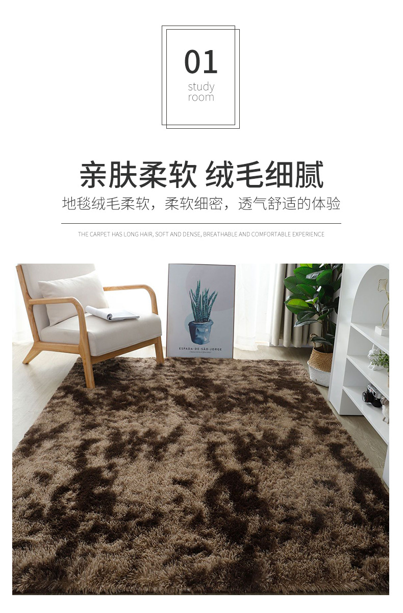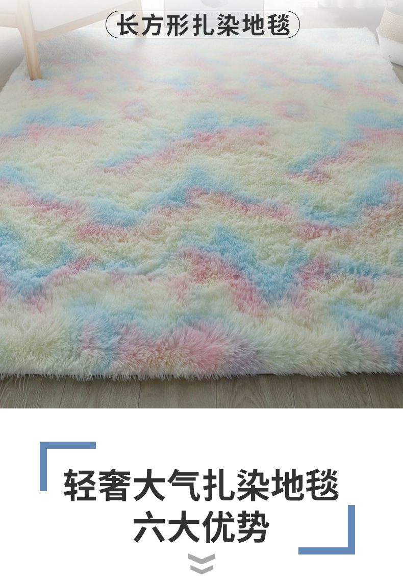 北欧风丝毛地毯客厅沙发全铺地垫家用卧室防滑脚垫简约毛绒垫子扎染