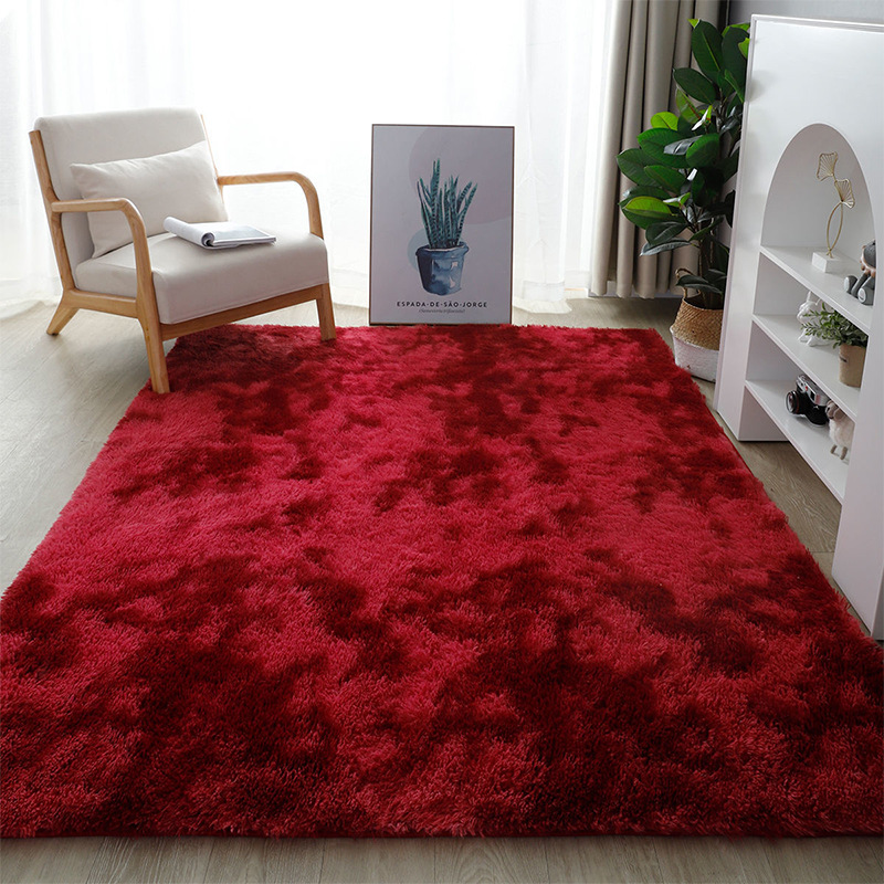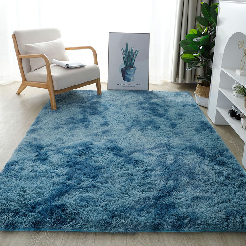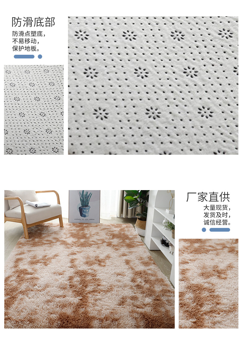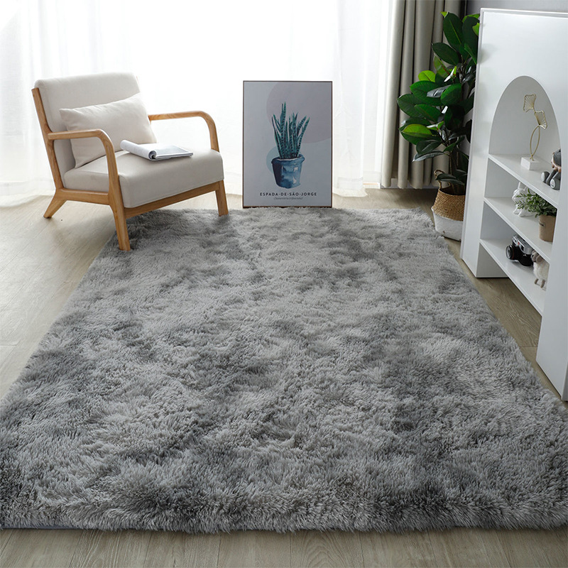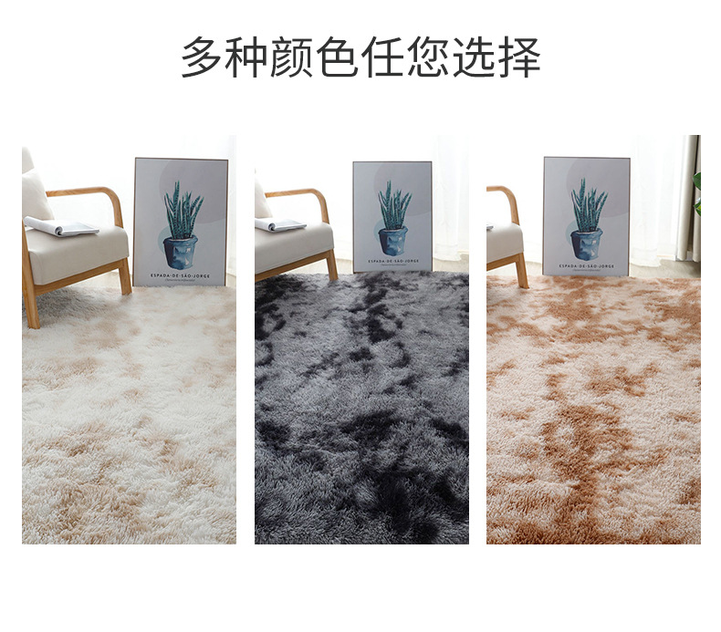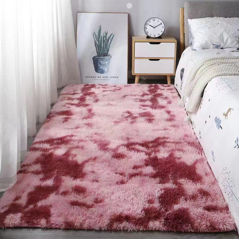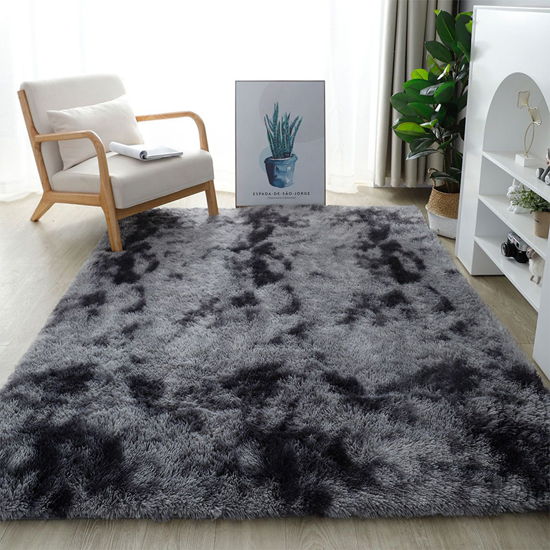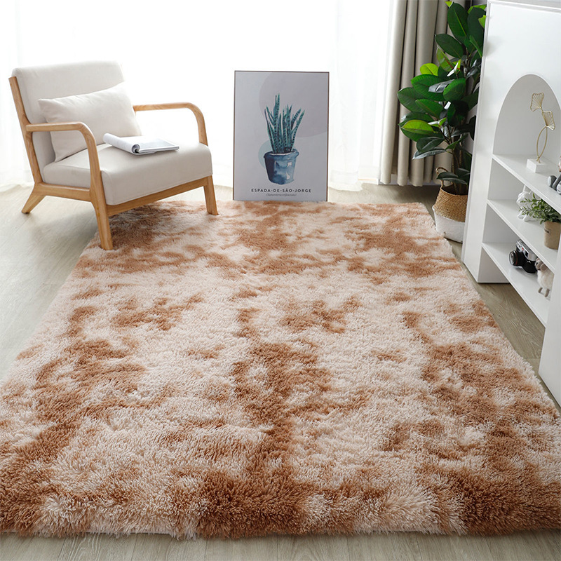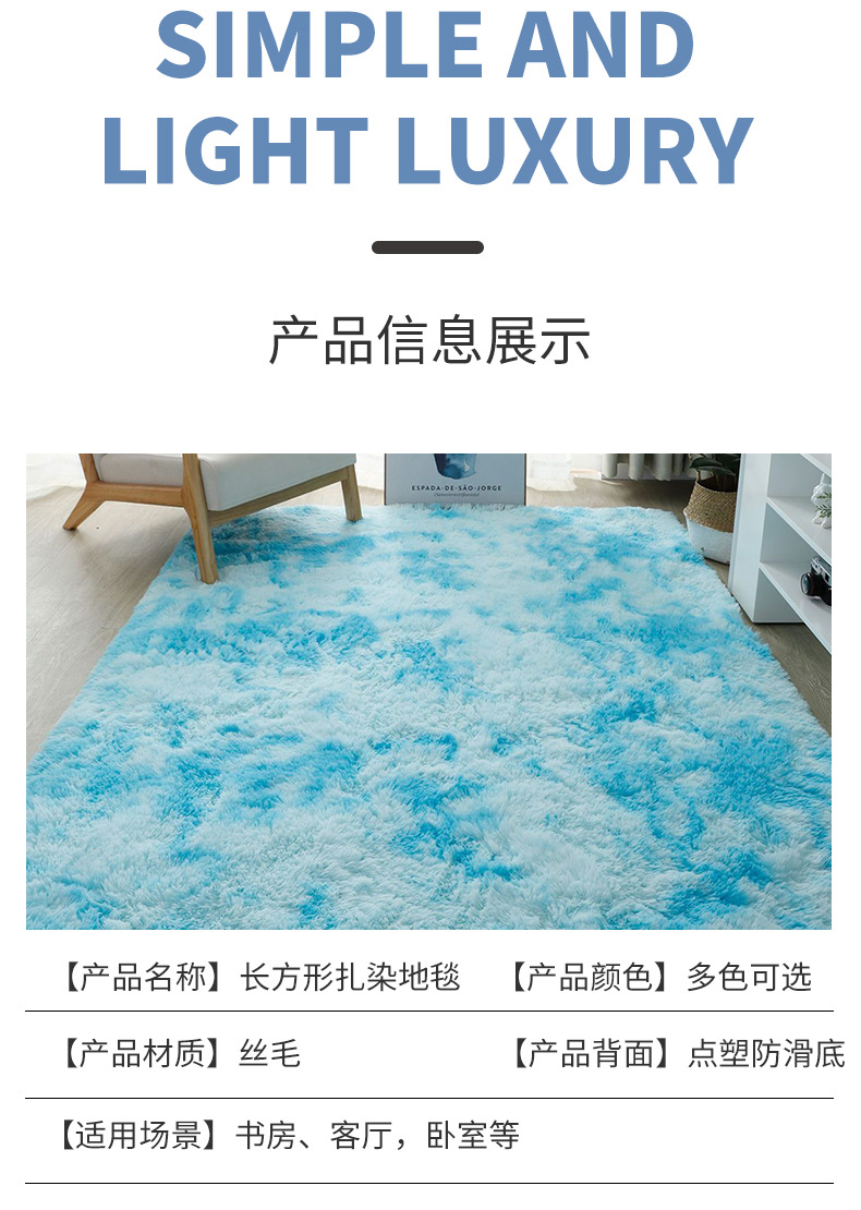 北欧风丝毛地毯客厅沙发全铺地垫家用卧室防滑脚垫简约毛绒垫子扎染