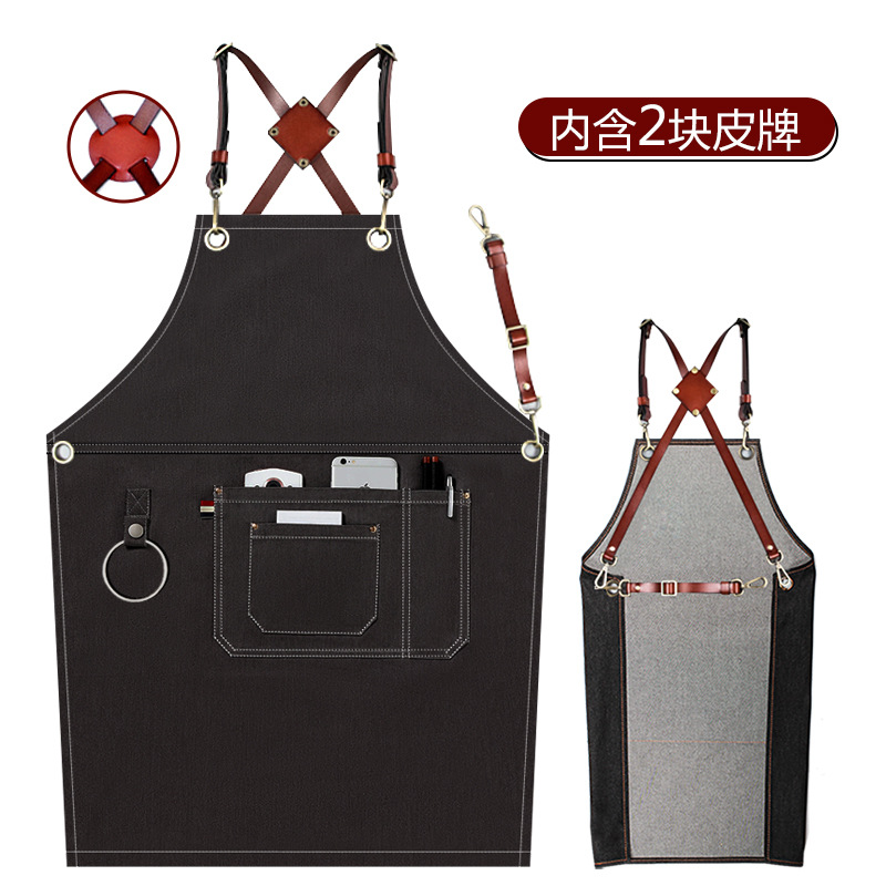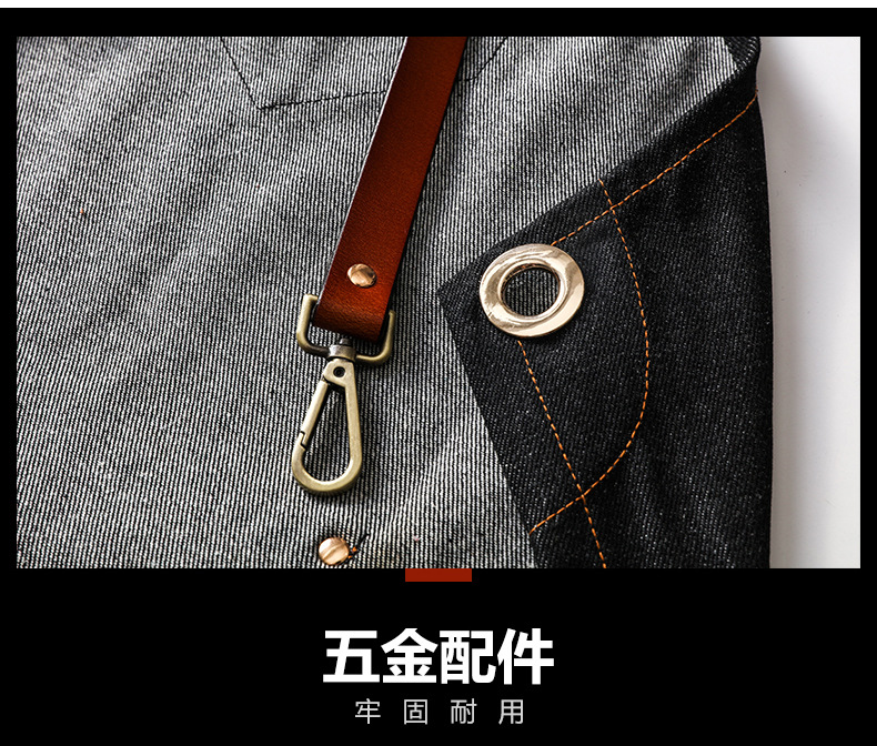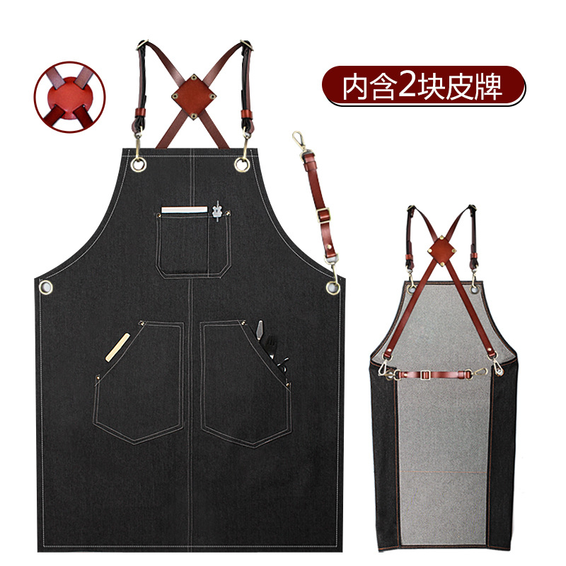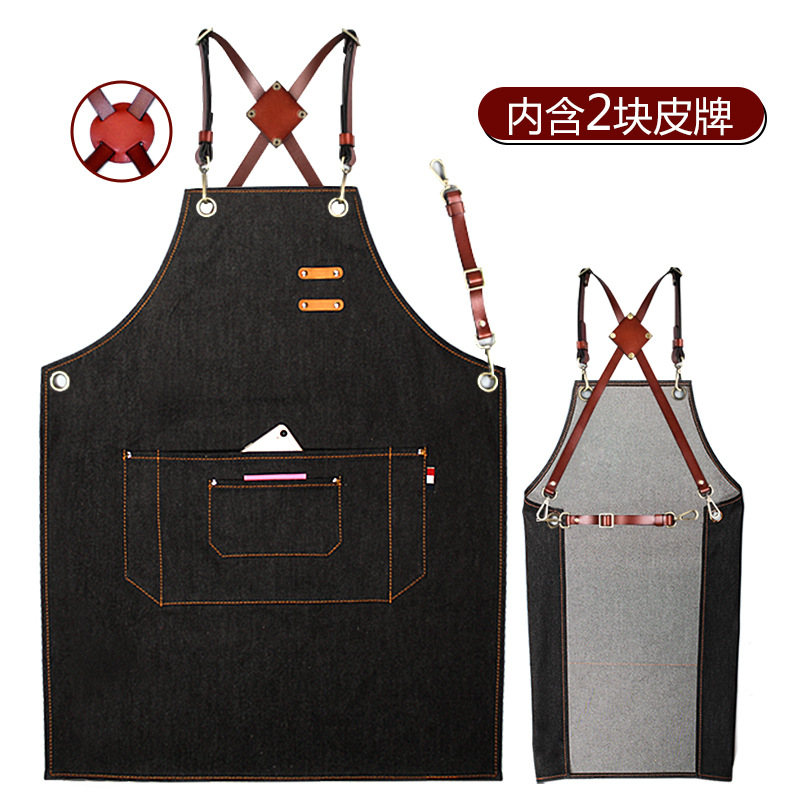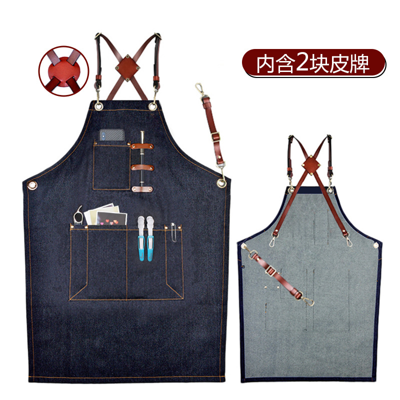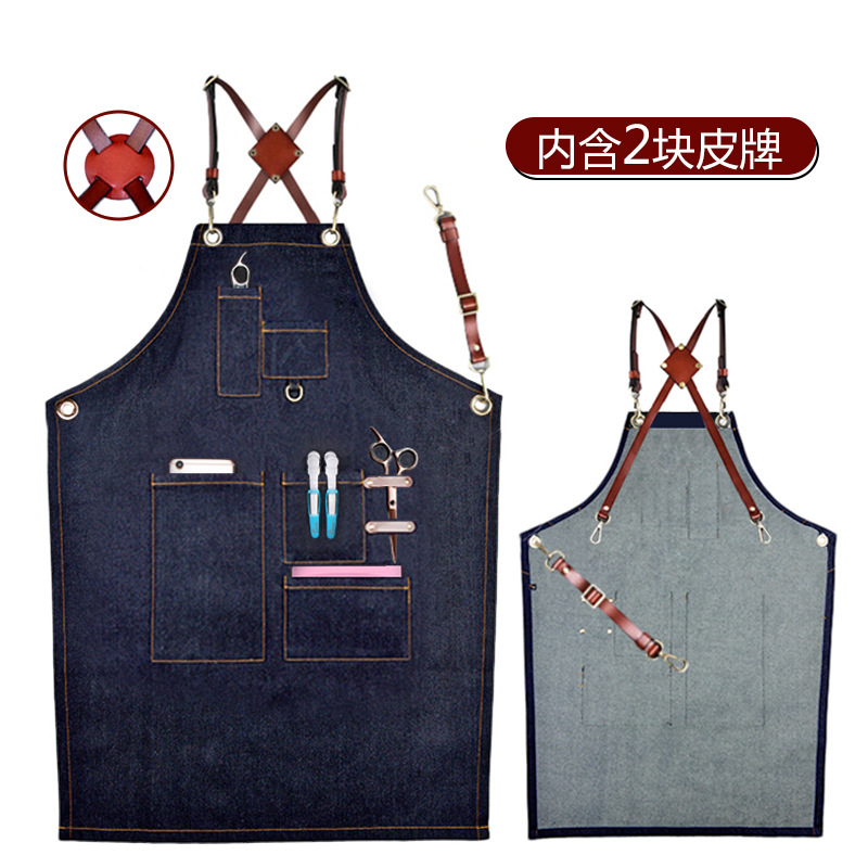 (特)森悦牛仔围裙 印字奶茶店咖啡师理发花艺师男女工作服
