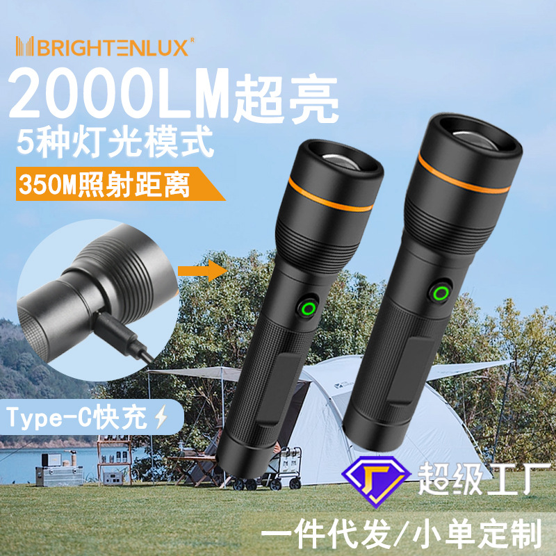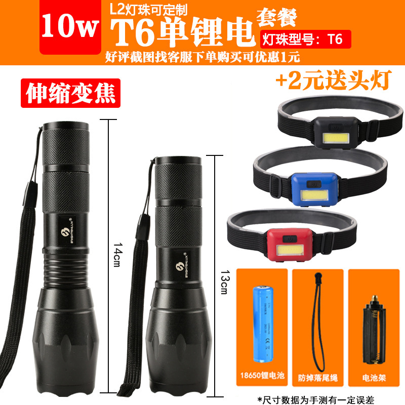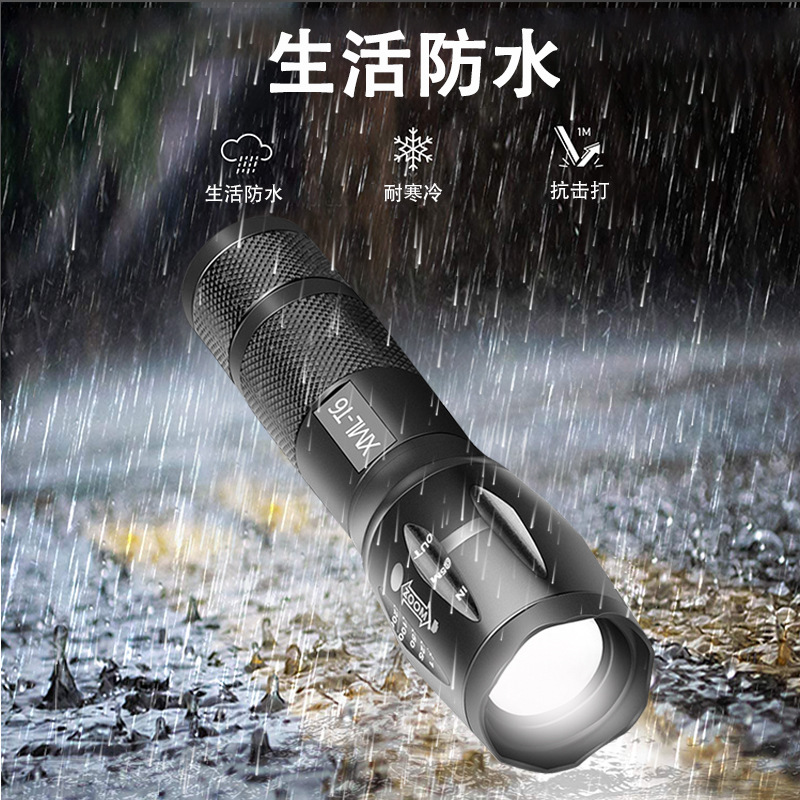 新款多功能迷你便携LED变焦手电筒超亮强光照明户外应急干电手电
