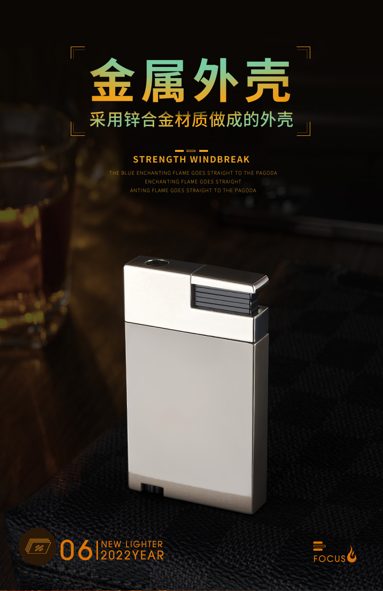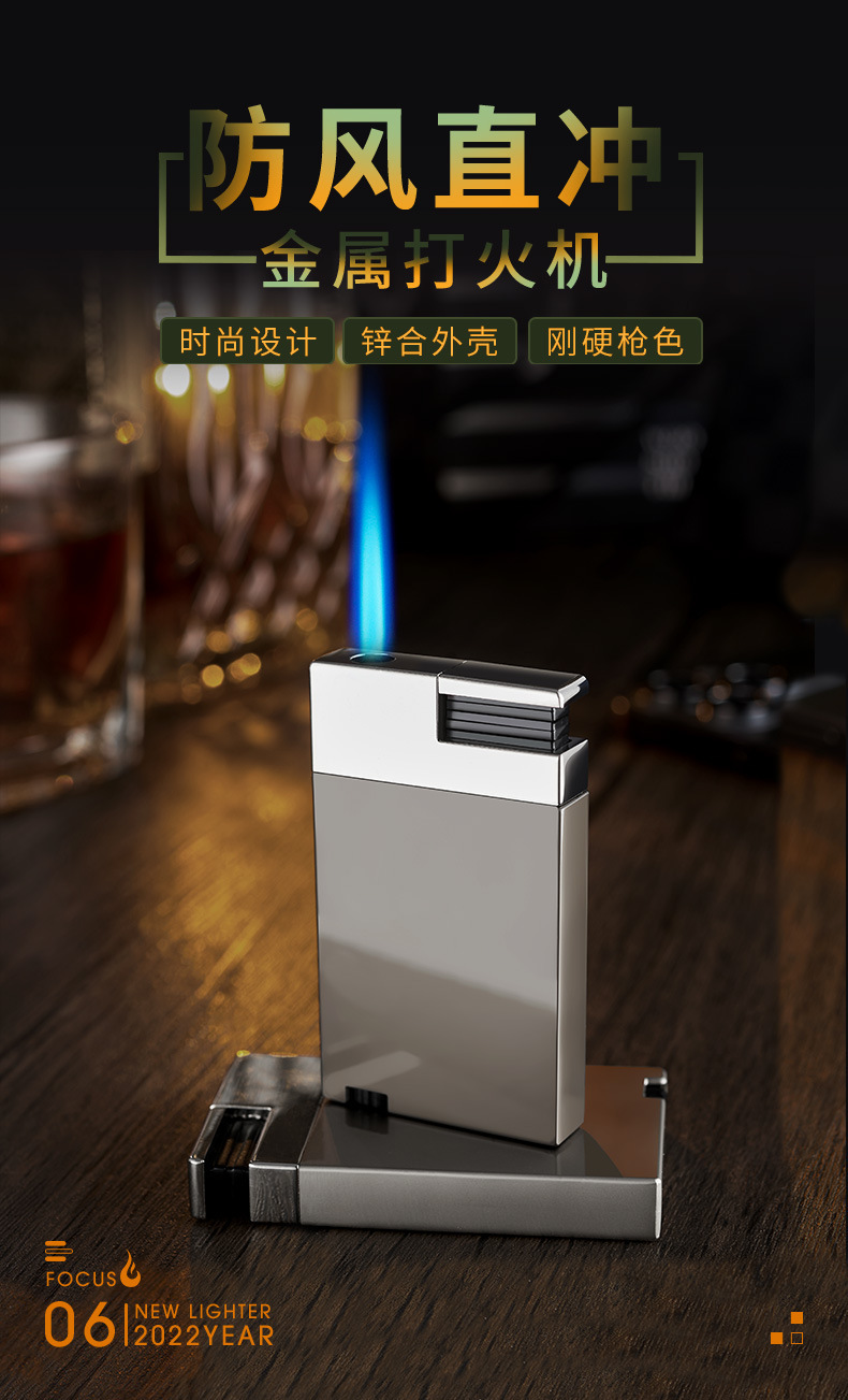 超薄按压式直冲防风打火机 创意金属打火机