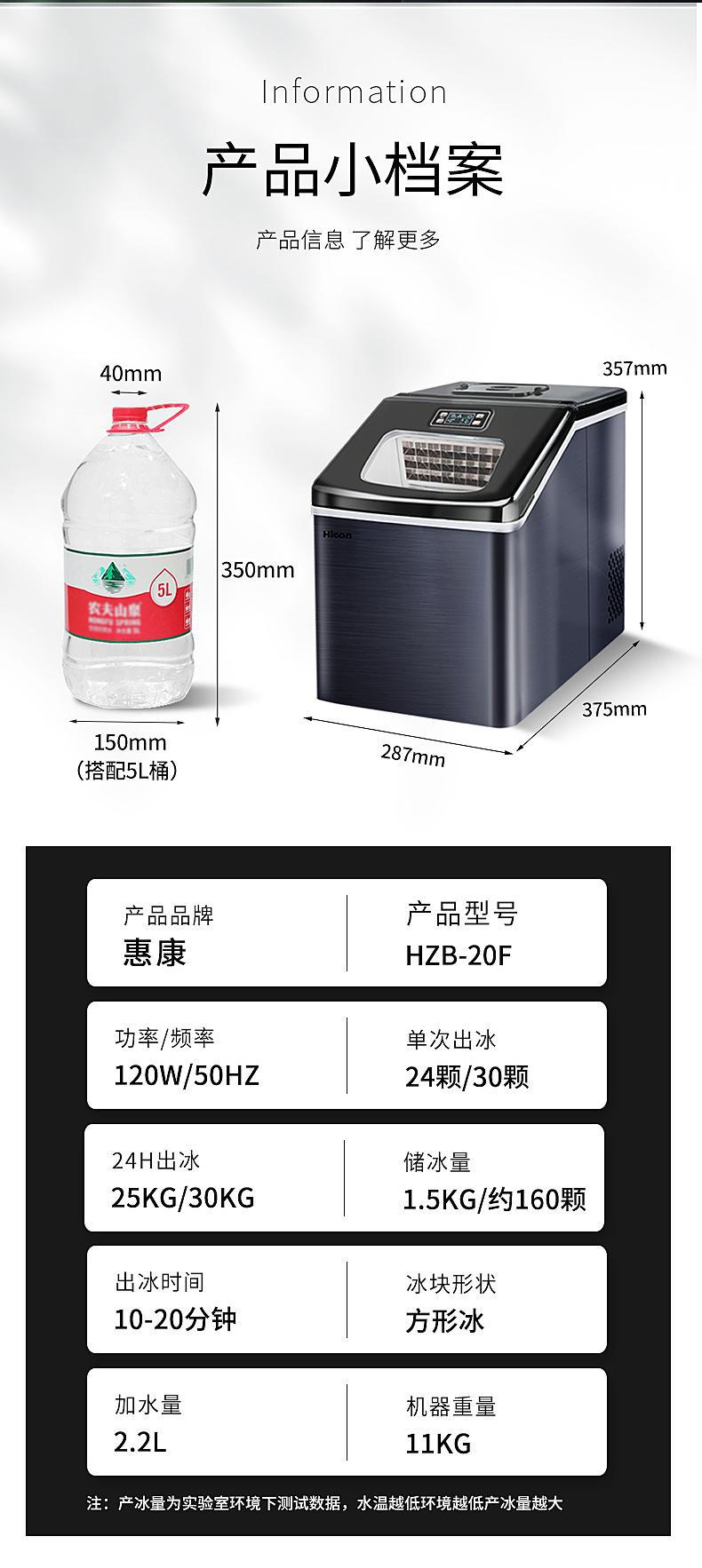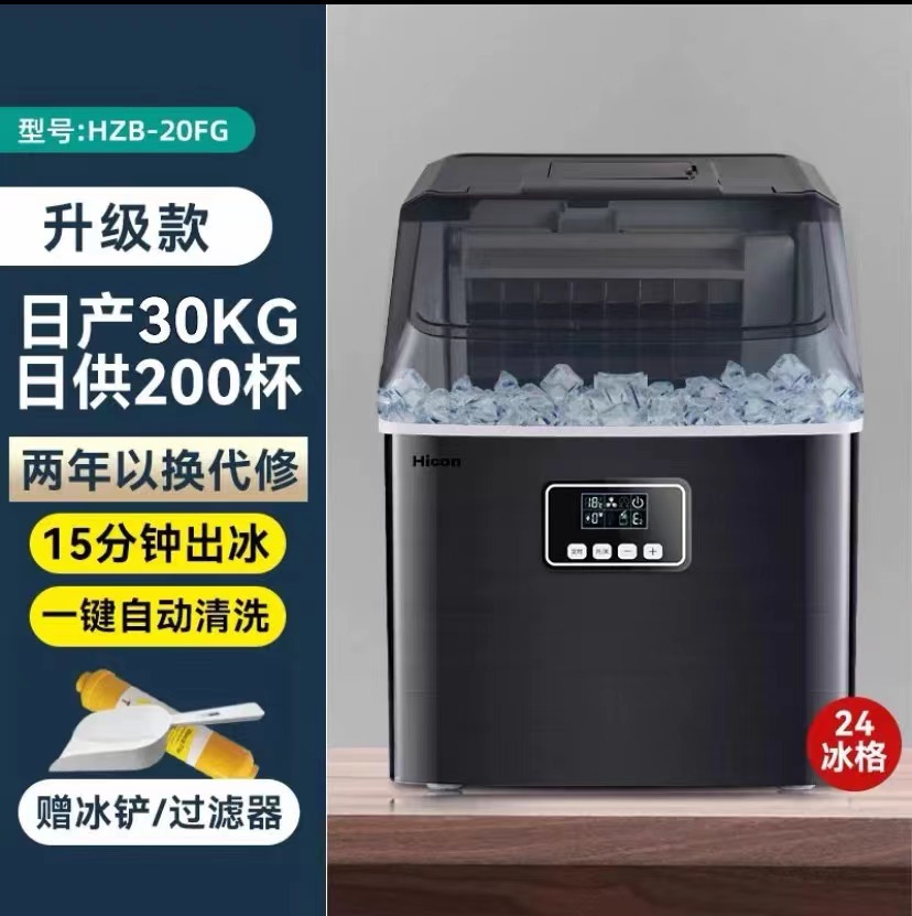 惠康(HICON)制冰机商用小型奶茶店小型台式家用迷你30公斤全自动方冰块制作机器 【升级版】日产30KG-手动加水