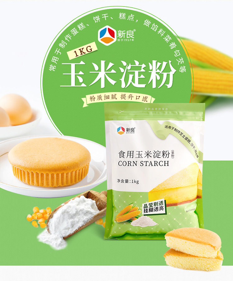 新良玉米淀粉1kg 烘焙蛋糕食用淀粉家用勾芡生粉鹰粟粉烘焙原料