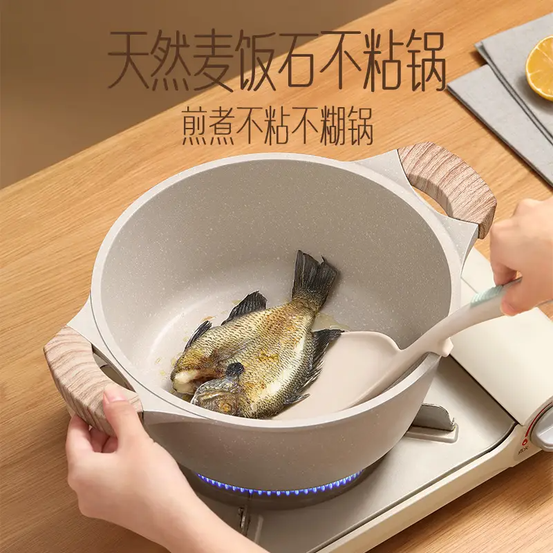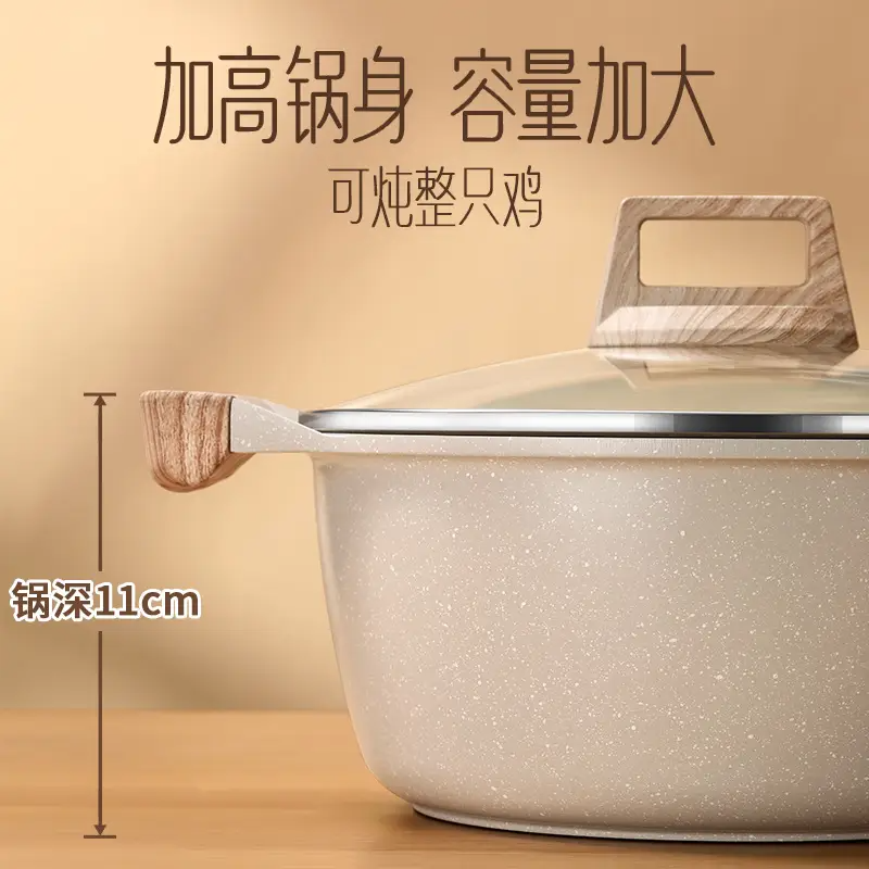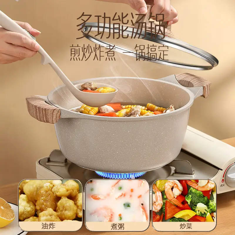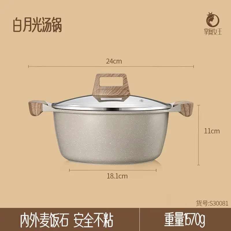 (特)掌厨女王麦饭石汤锅不粘锅家用双耳煮锅燃气灶电磁炉锅煲汤锅炖锅煮面条锅 24cm汤锅【麦饭石不粘】