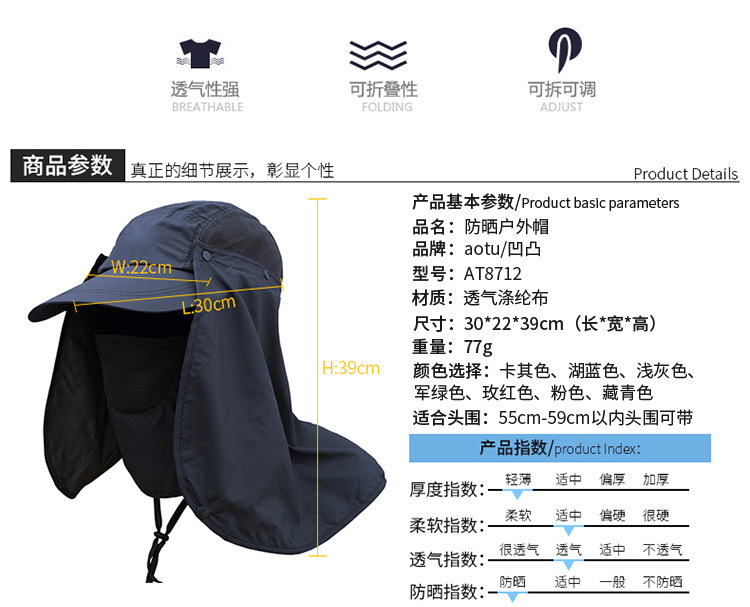 凹凸登山防风沙防晒帽 野营钓鱼帽渔夫帽 户外帽子