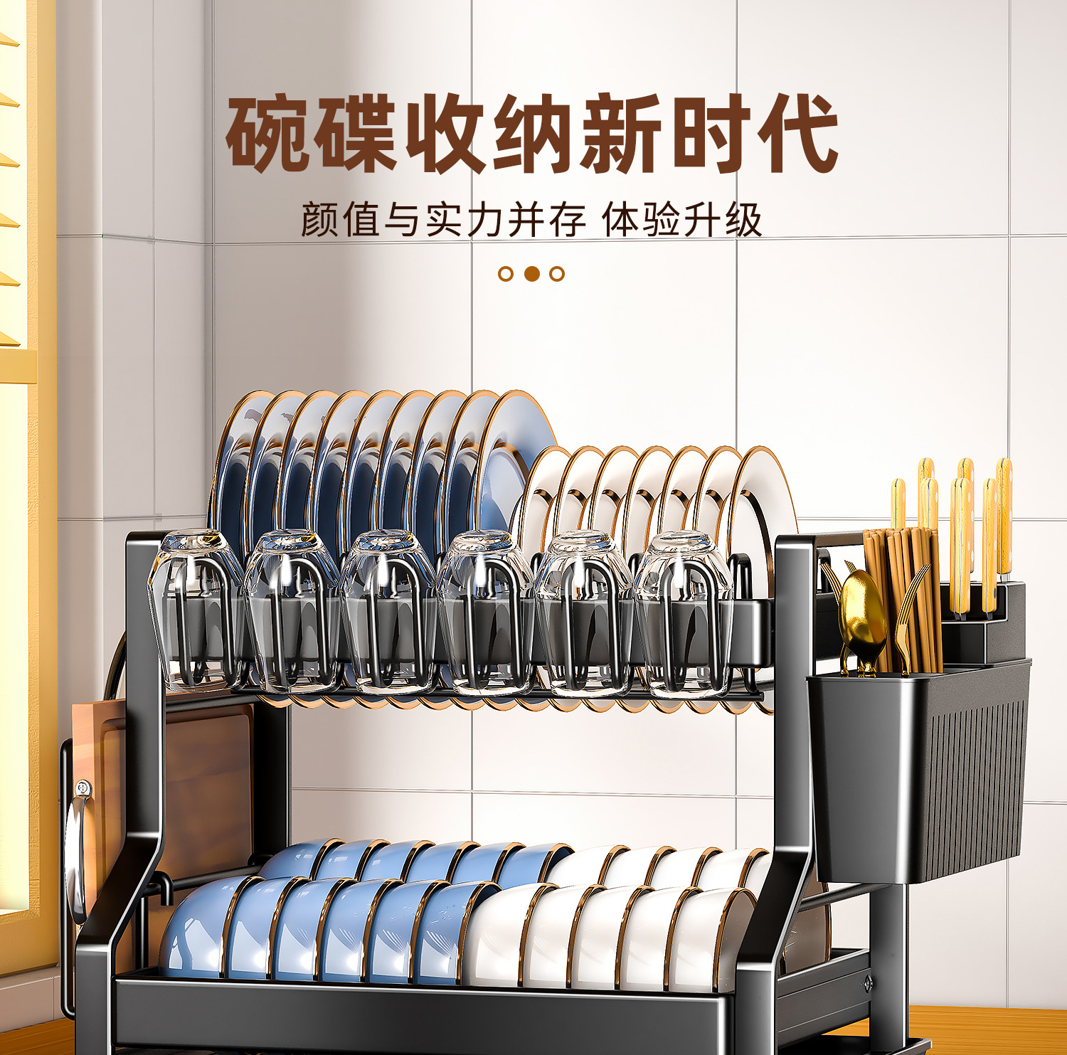 厨房置物架多功能杯架双层碗碟架收纳架子家用滤水碗盘碗架沥水架
