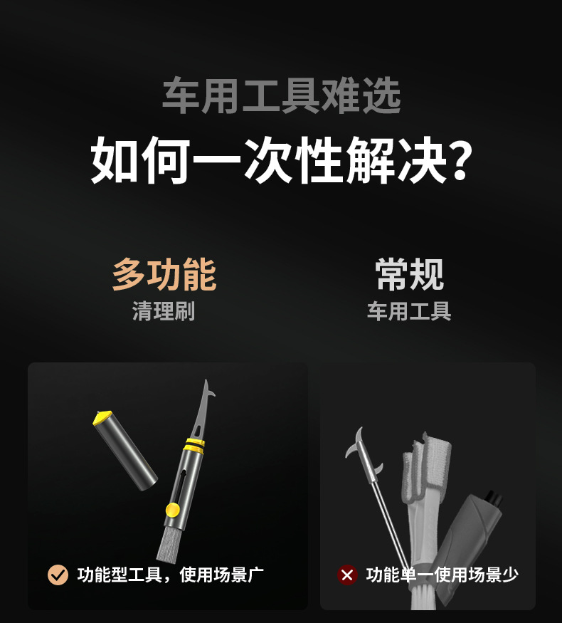 汽车清洁刷多功能出风口清洁用品合金安全锤轮胎清石工具