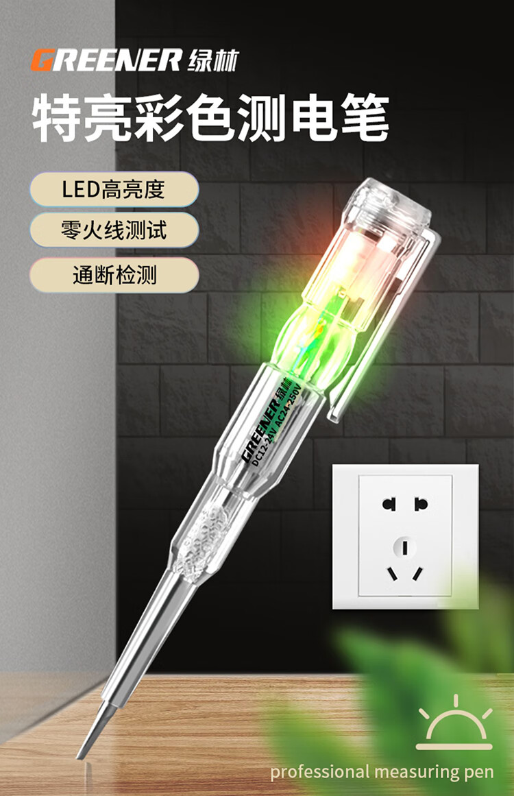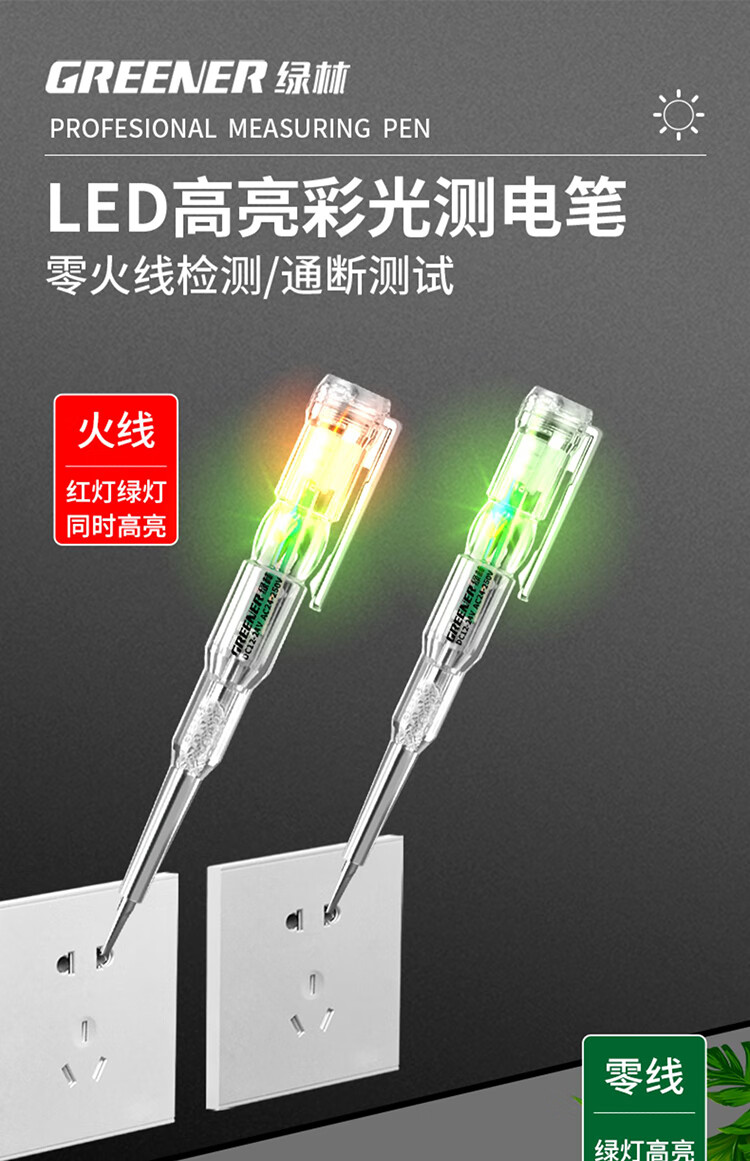 (特)绿林(GREENER)电笔电工专用测电笔断点检测试电笔感应验电笔智能Led超亮多功能