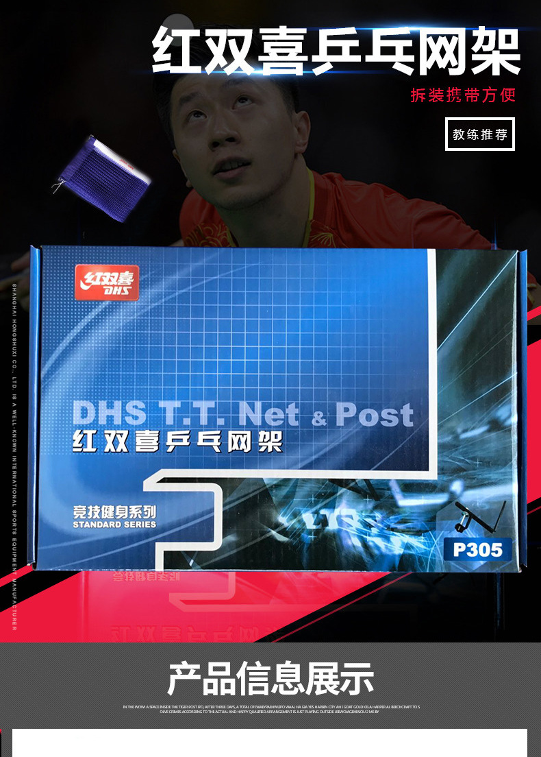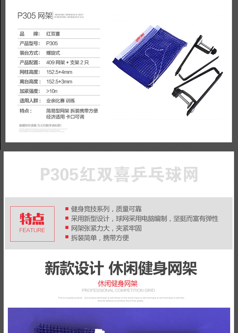 红双喜乒乓球网架含网伸缩便携式兵乓球拦网乒乓球桌球台网子